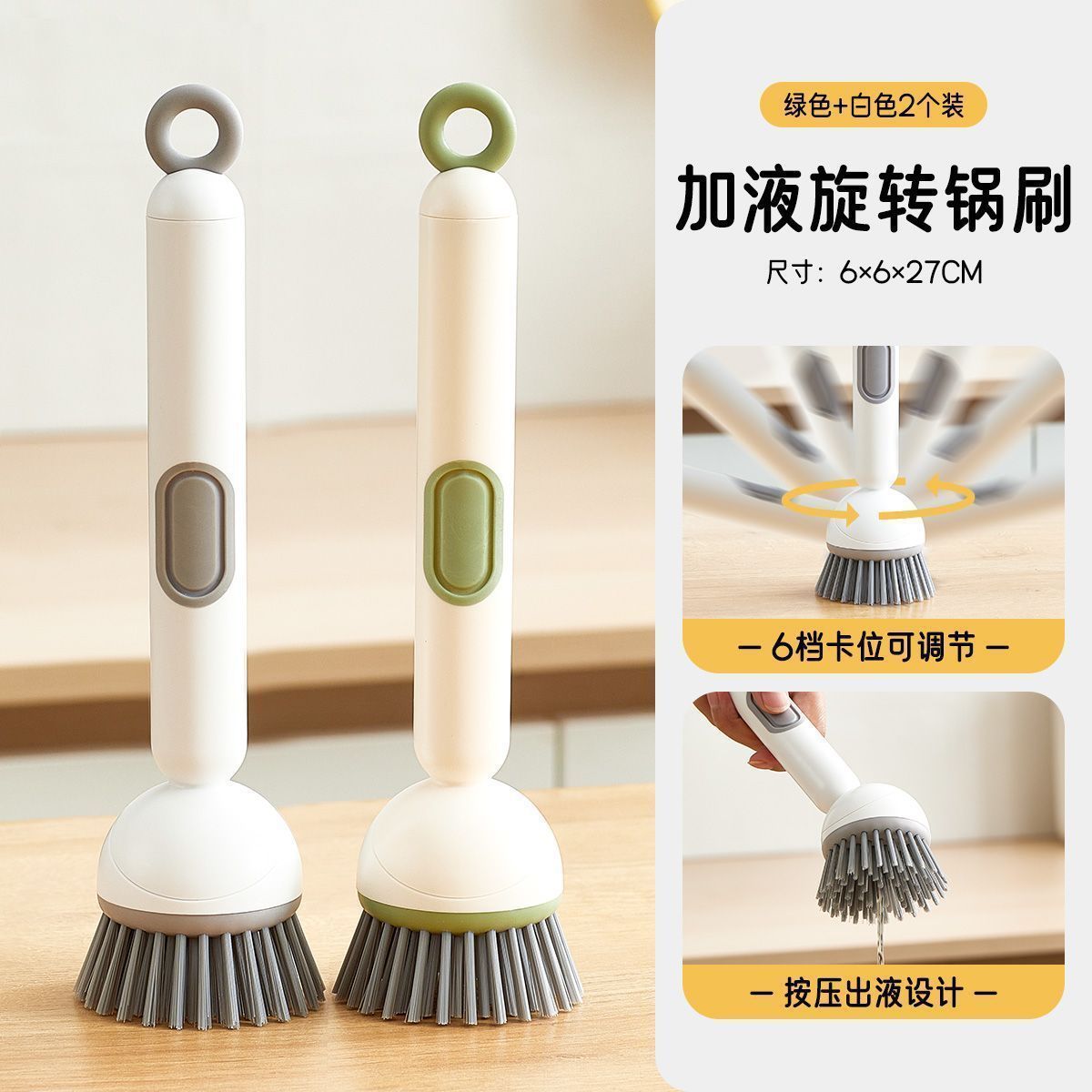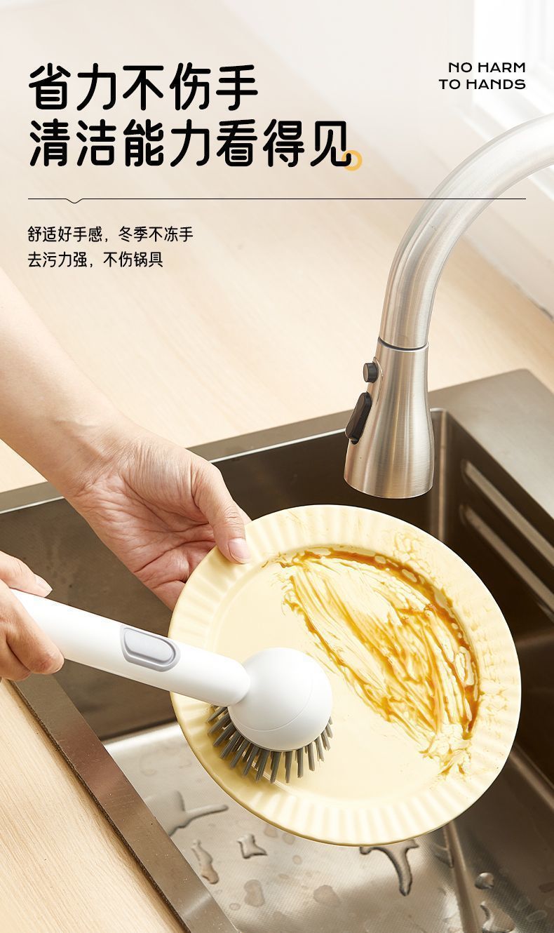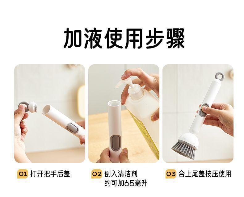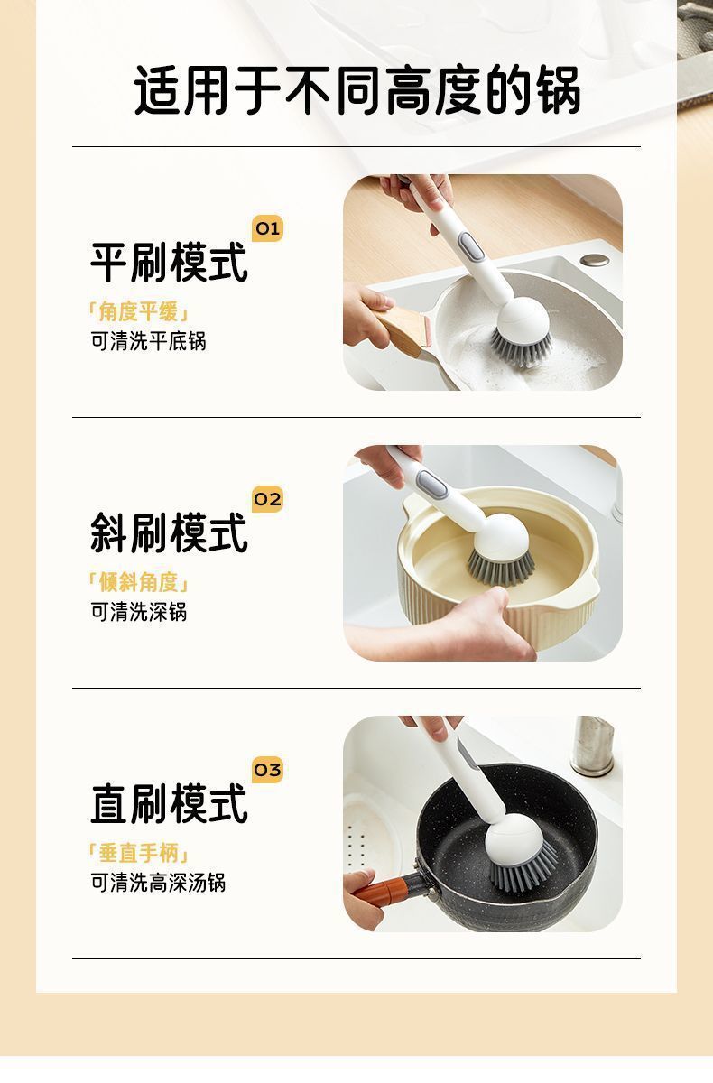 长柄加液多功能洗锅刷子家用可旋转锅刷按压出液洗碗不油手锅碗刷