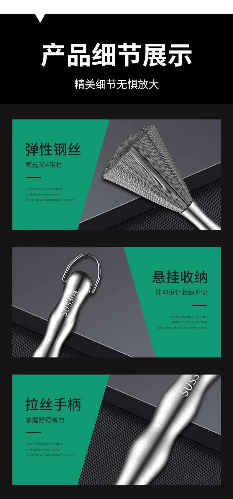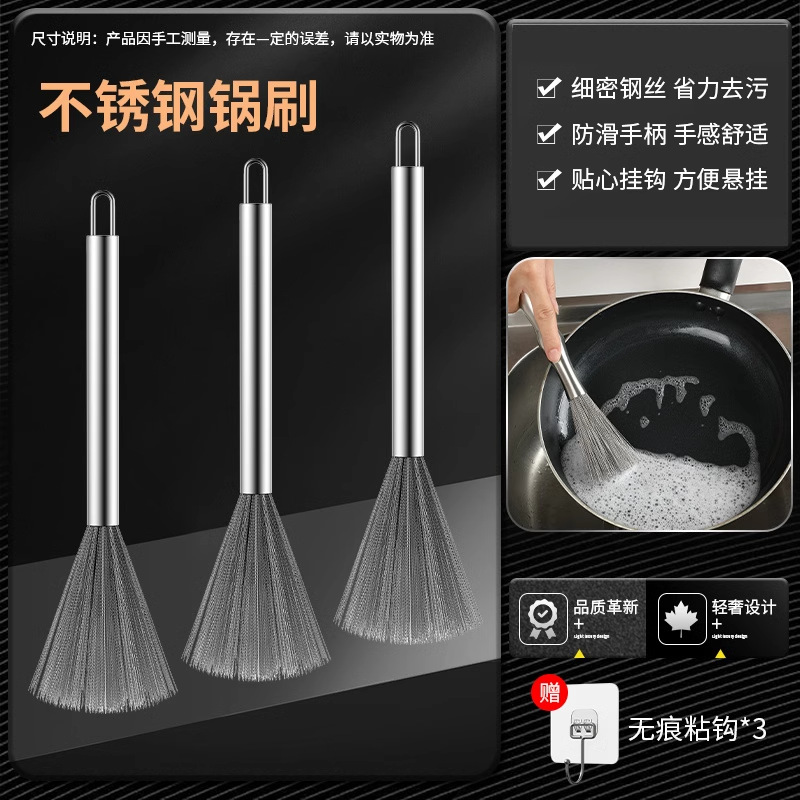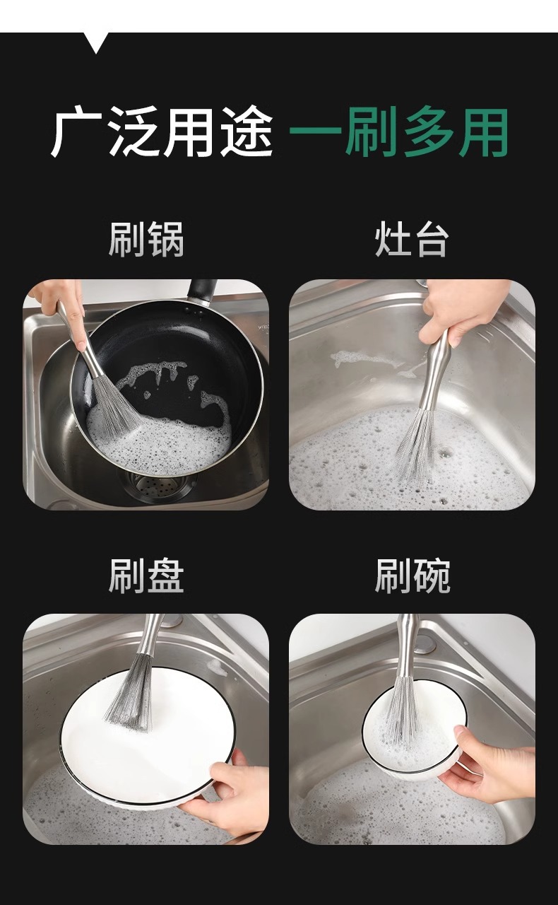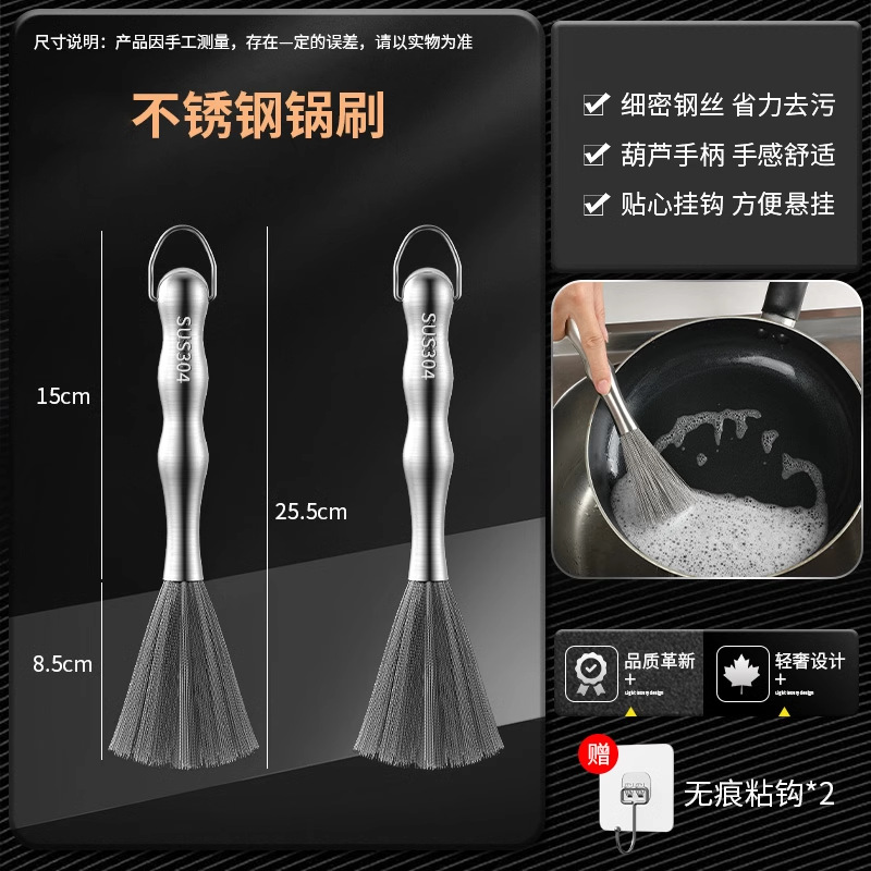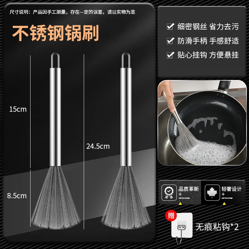 304不锈钢锅刷厨房专用长柄刷锅钢丝球洗碗锅清洁刷家用去污