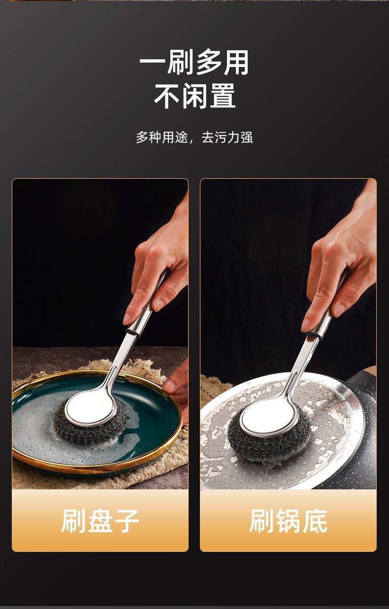 不锈钢刷拆卸替换刷头锅刷碗刷钢丝球刷子长柄钢丝刷可替换头
