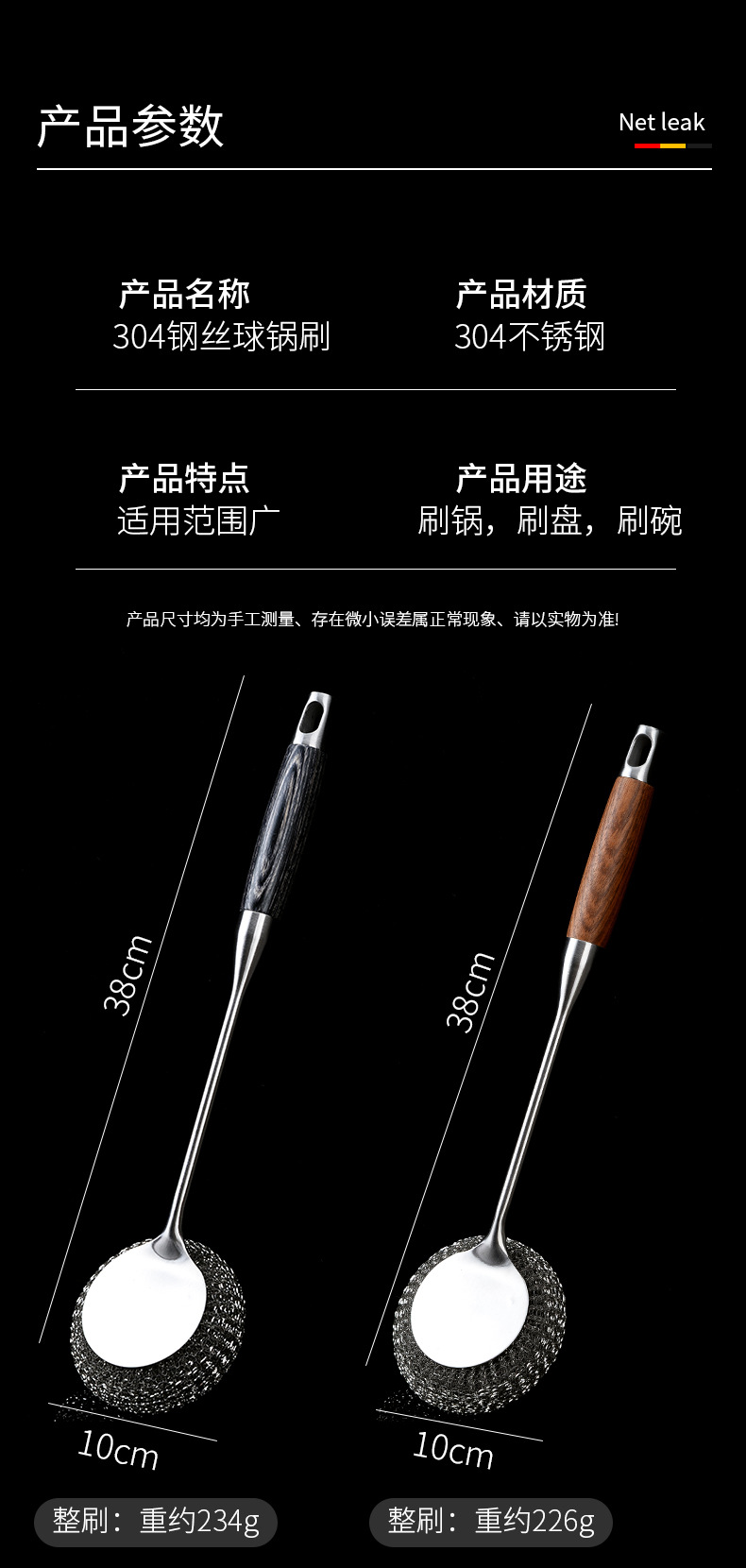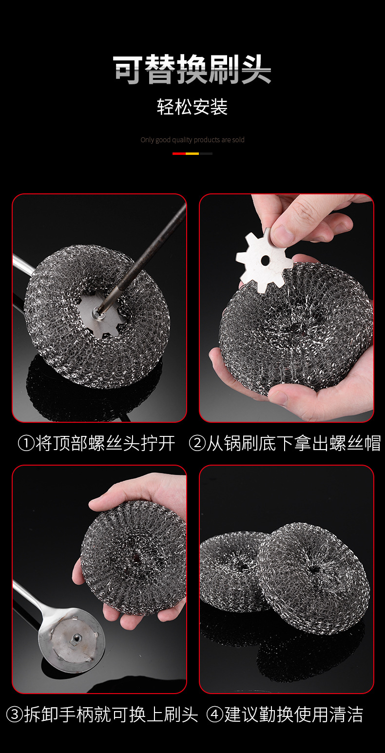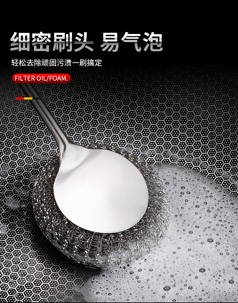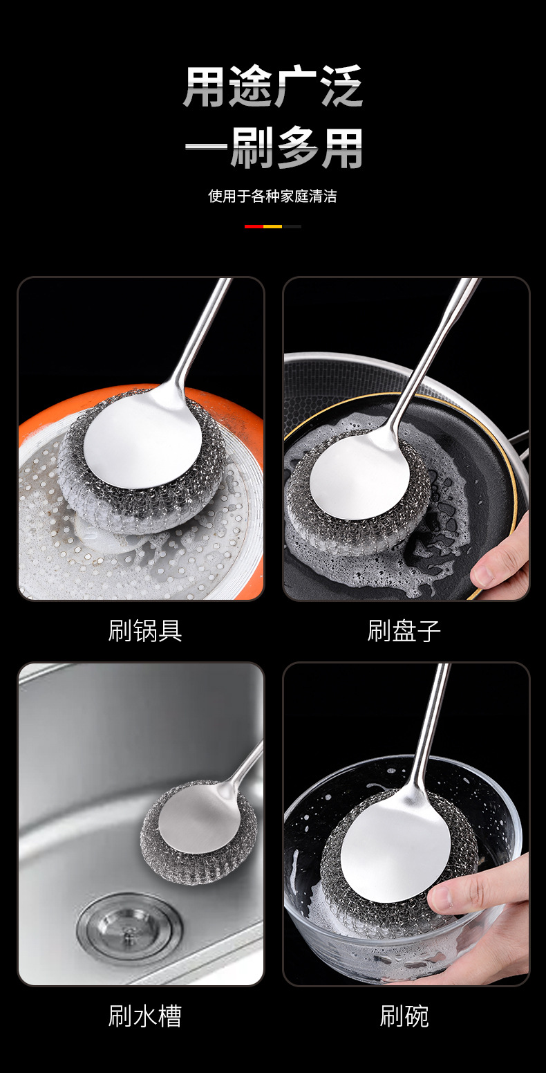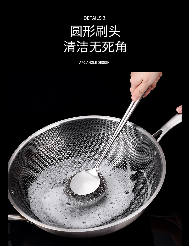 304不锈钢锅刷家用加厚长柄清洁刷子厨房专用洗锅钢丝刷不生锈