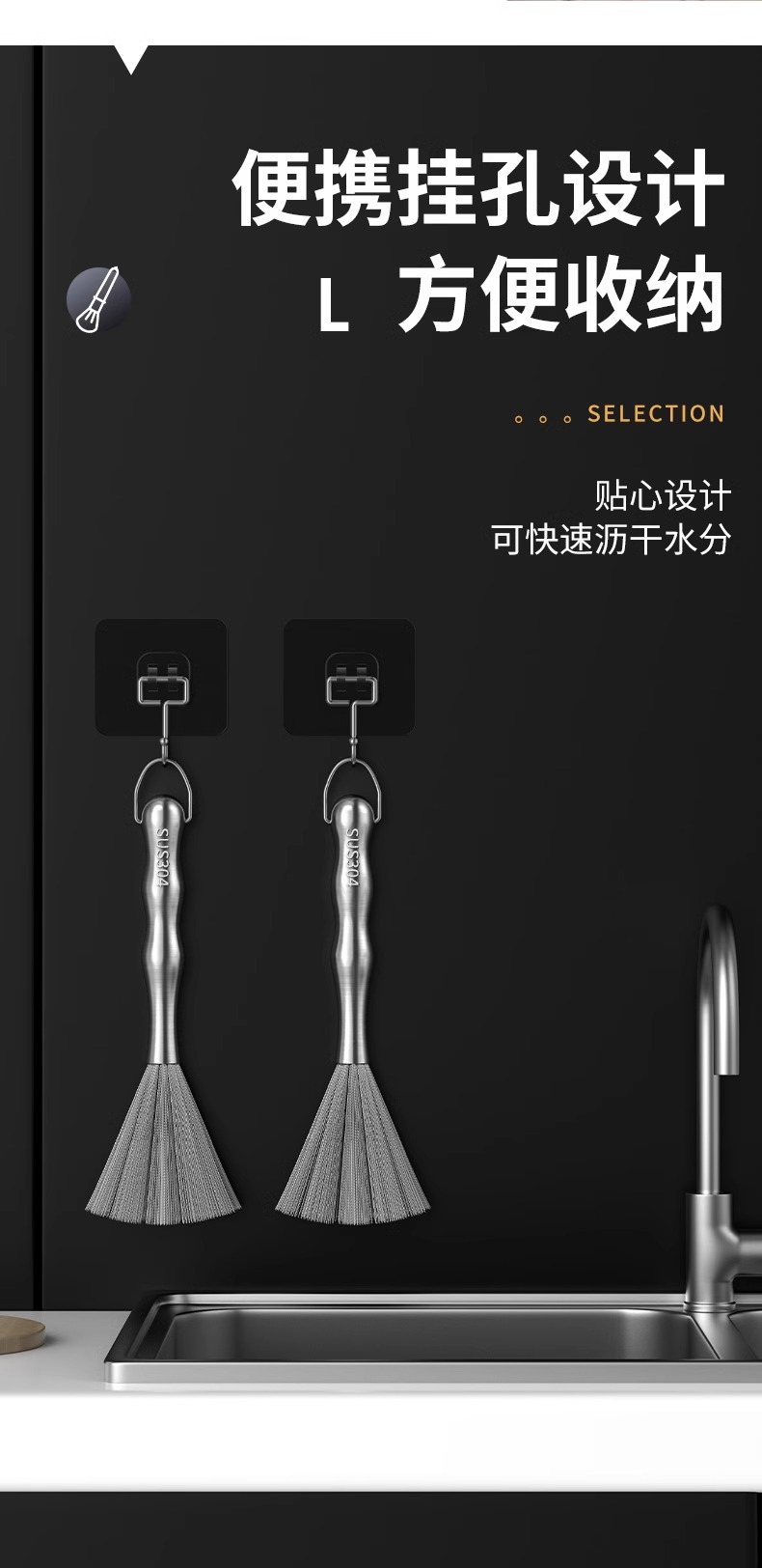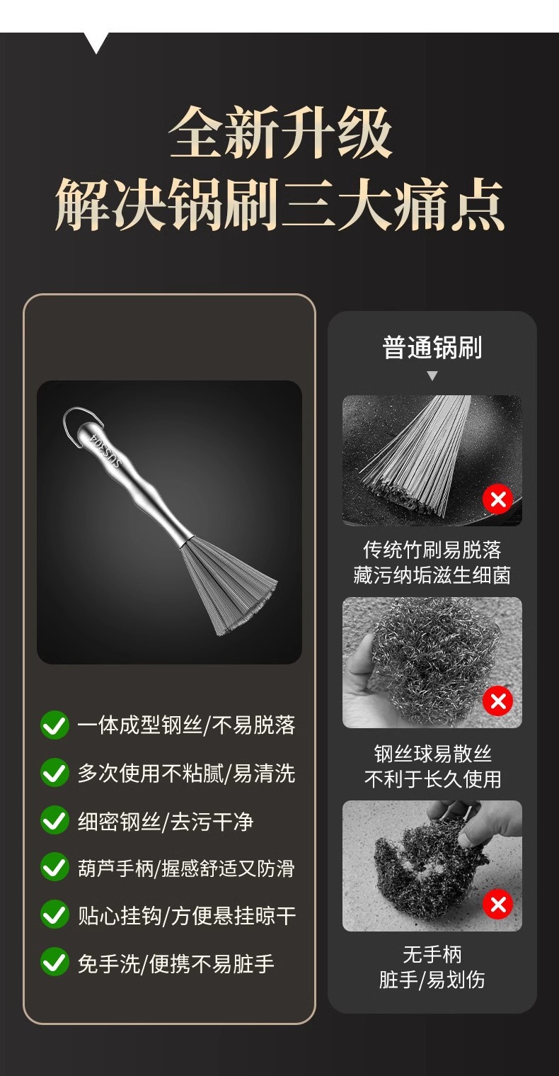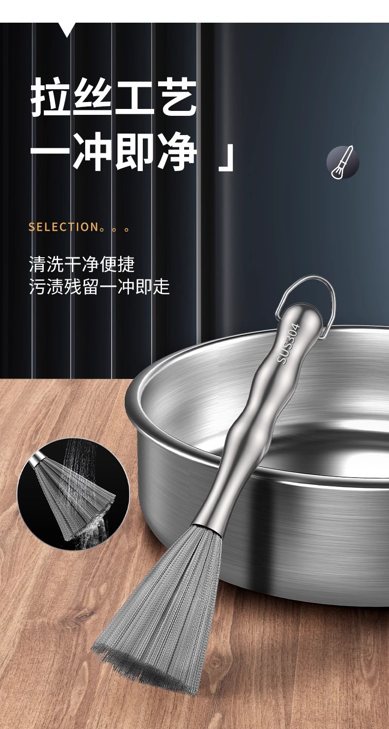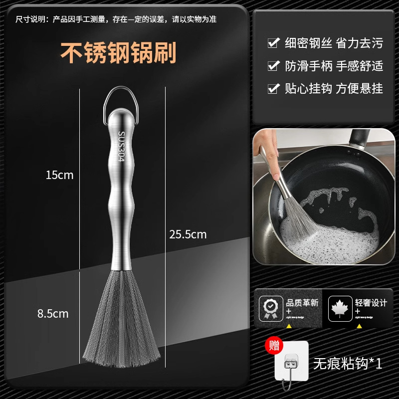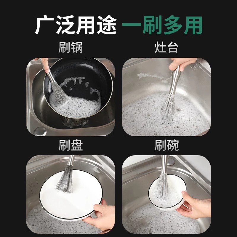 304不锈钢锅刷厨房专用长柄刷锅钢丝球洗碗锅清洁刷家用去污