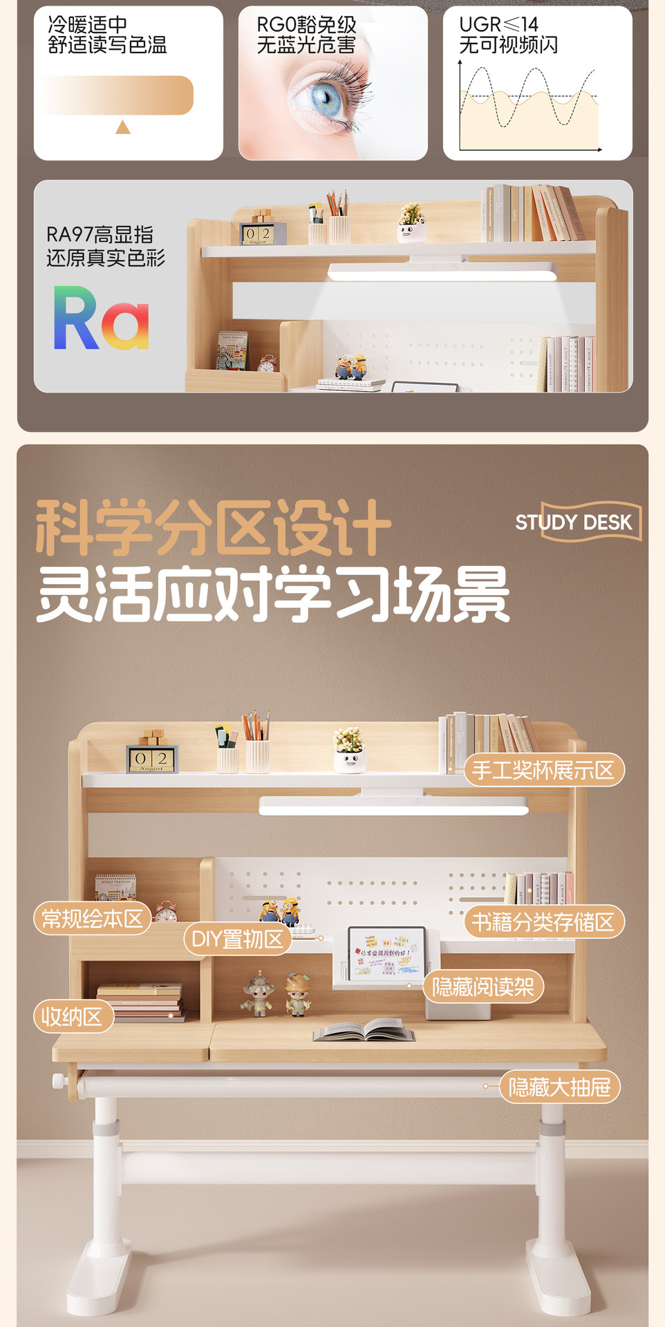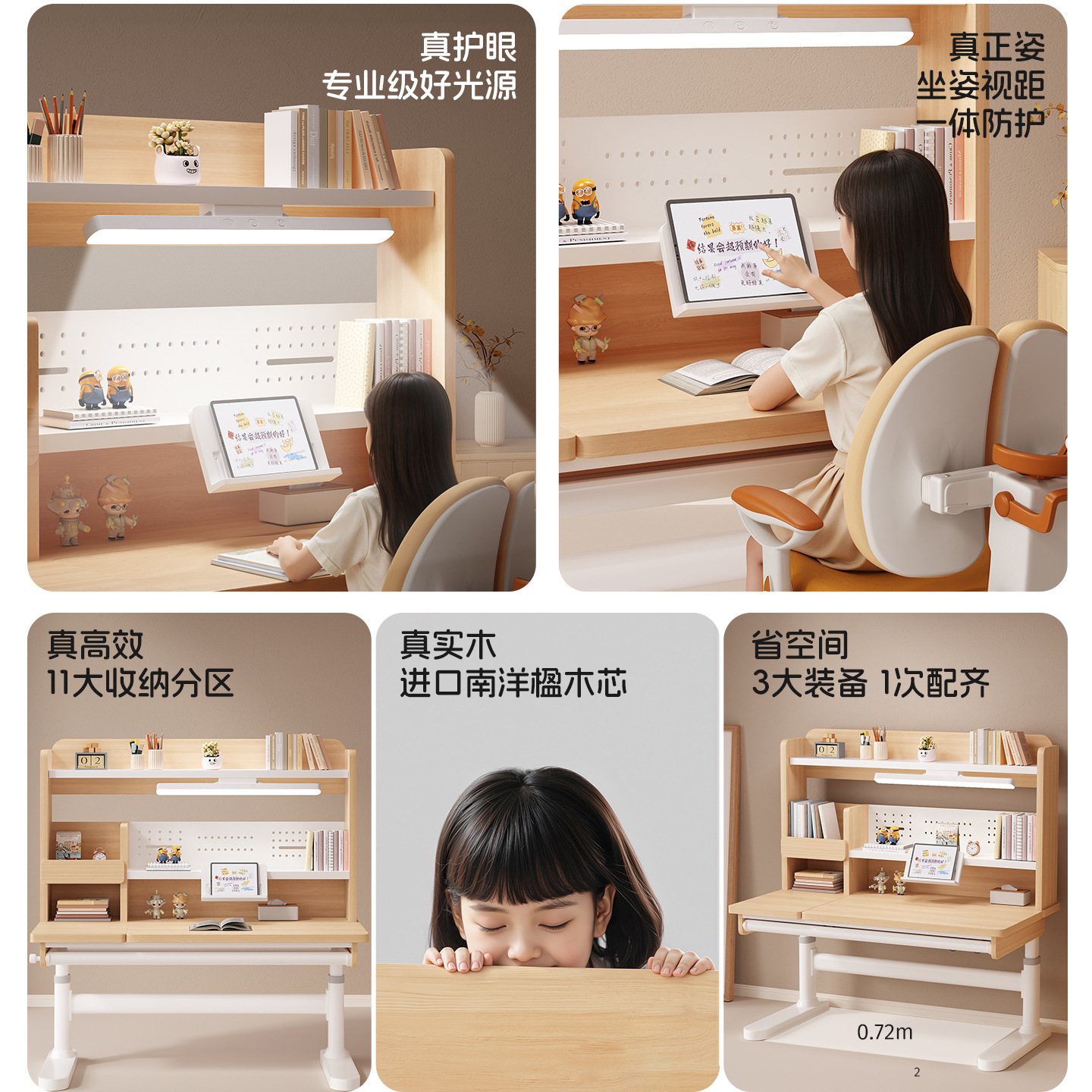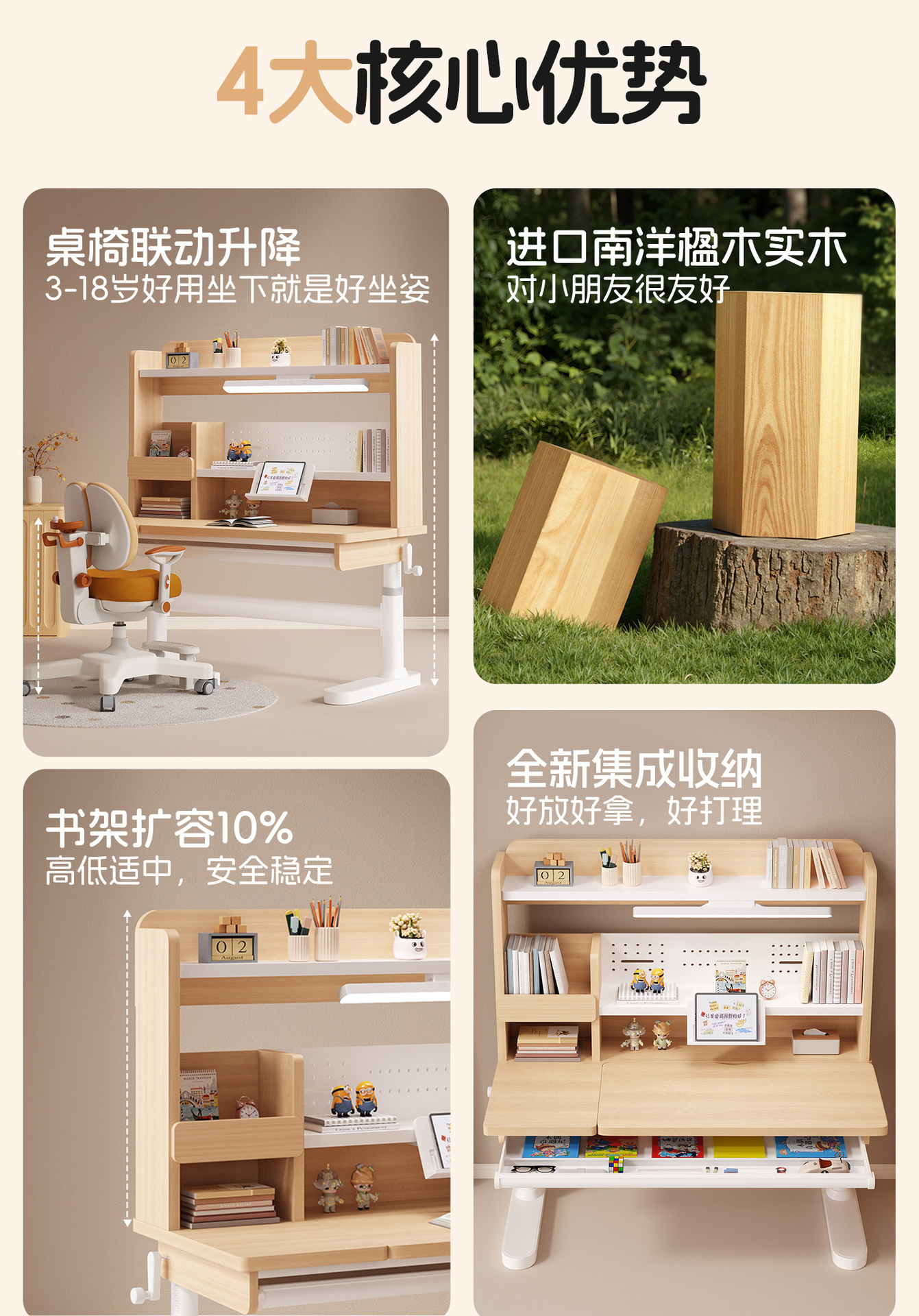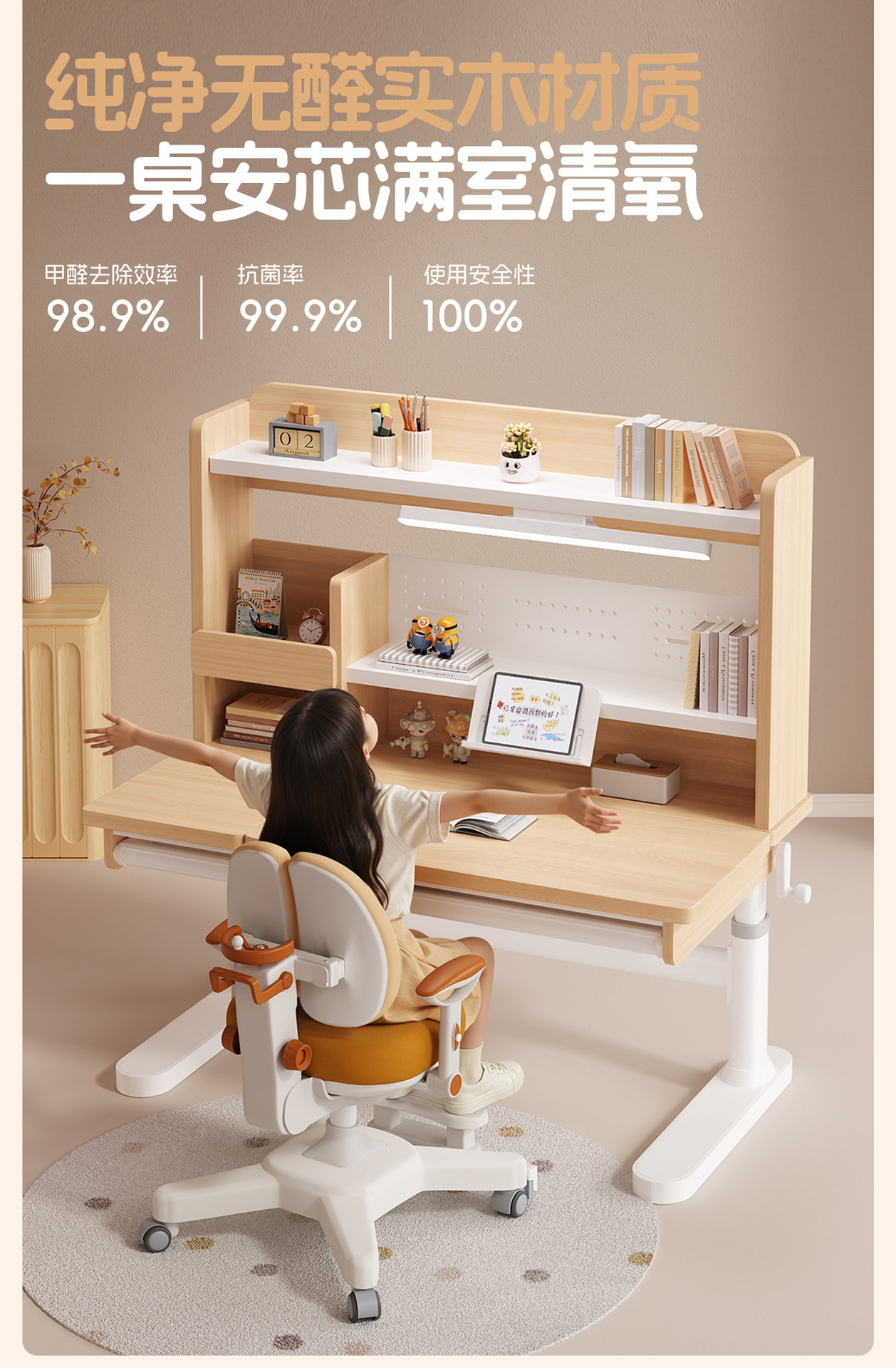 学习桌课桌椅可升降学生书桌作业桌写字课桌学习桌椅套装环保实木