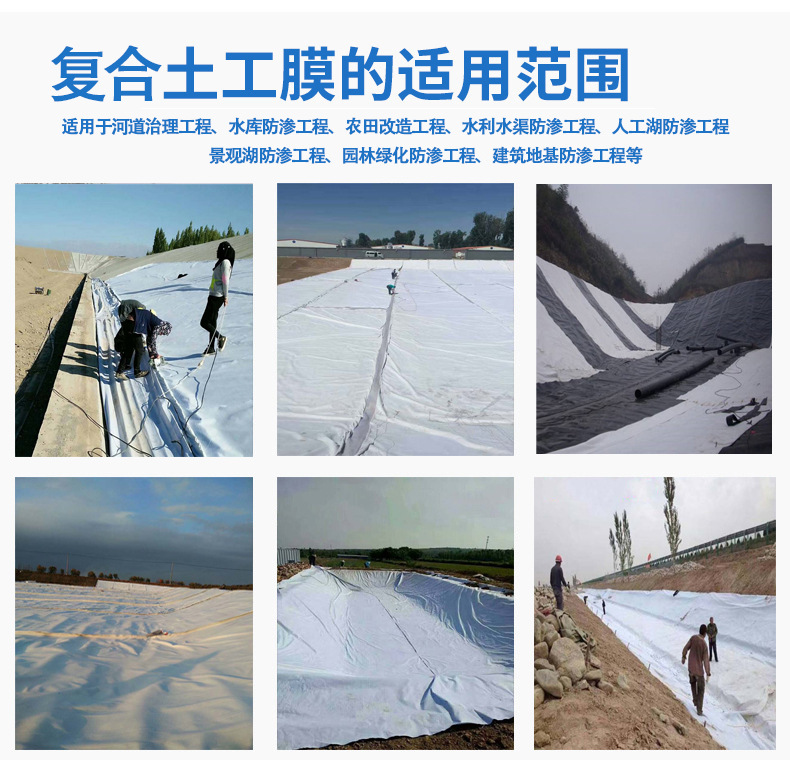 hdpe复合土工膜两布一膜鱼塘蓄水池人工湖水库沟渠河道防渗土工布