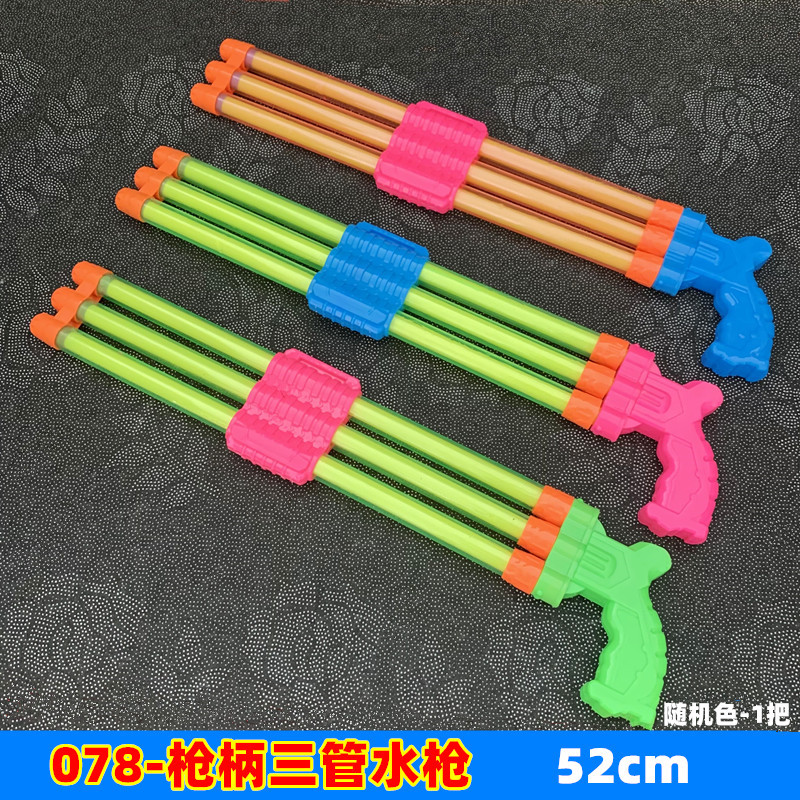 儿童戏水三管塑料漂流水枪弯把三管猎枪沙滩玩具抽拉式水炮滋水枪
