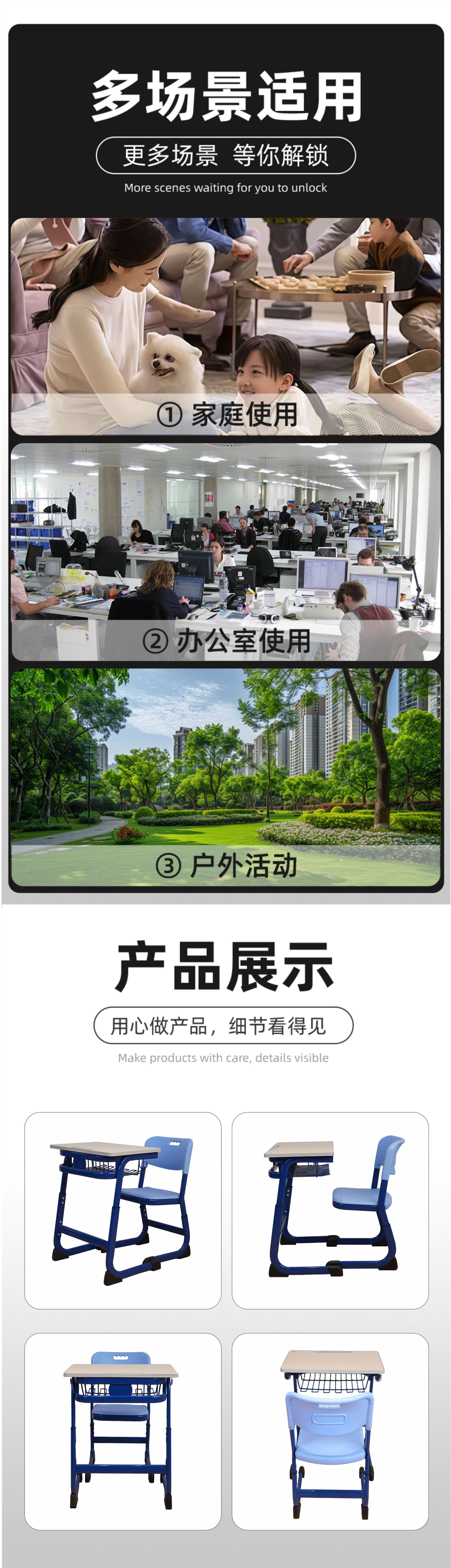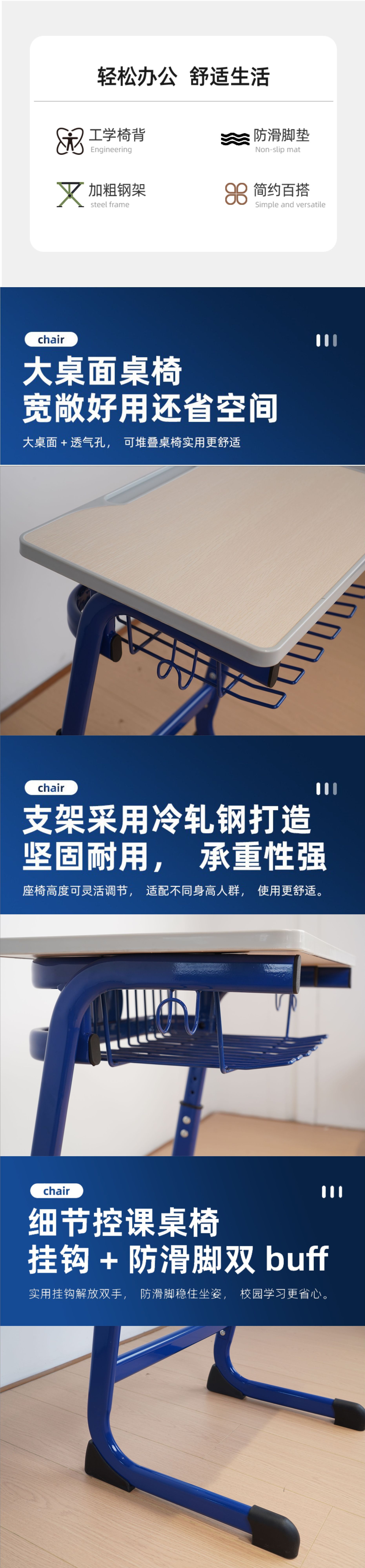 教室课桌椅可升降带笔槽抽屉学生铁木学习座椅舒适可调节初高中生