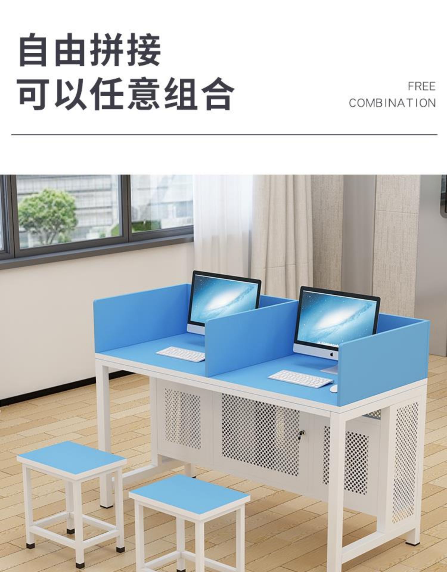 学校机房电脑桌学生计算机多媒体碳化桌椅双人教室微机室培训桌