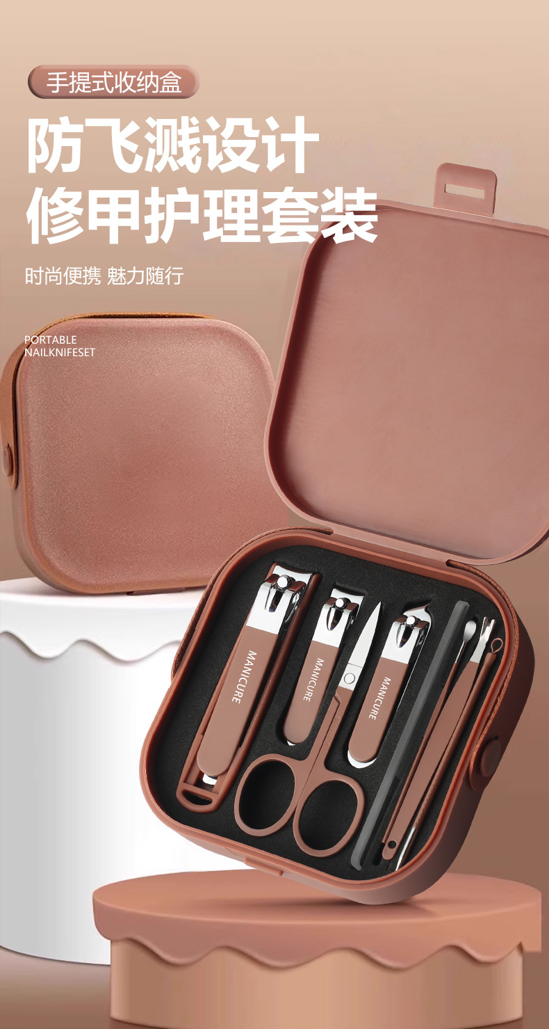 手提盒防飞溅8件套指甲刀套装跨境现货指甲剪套盒礼品印刷logo