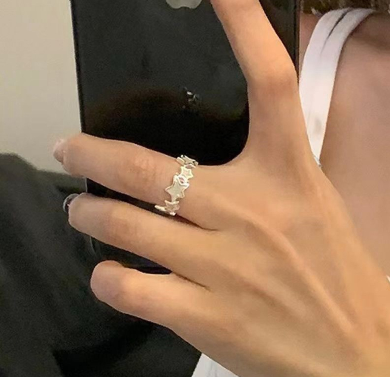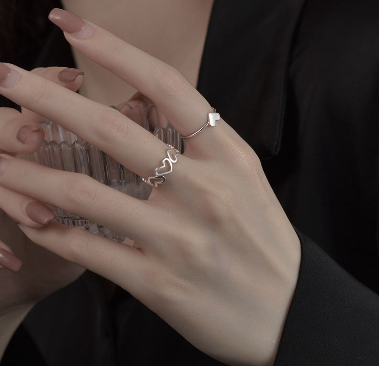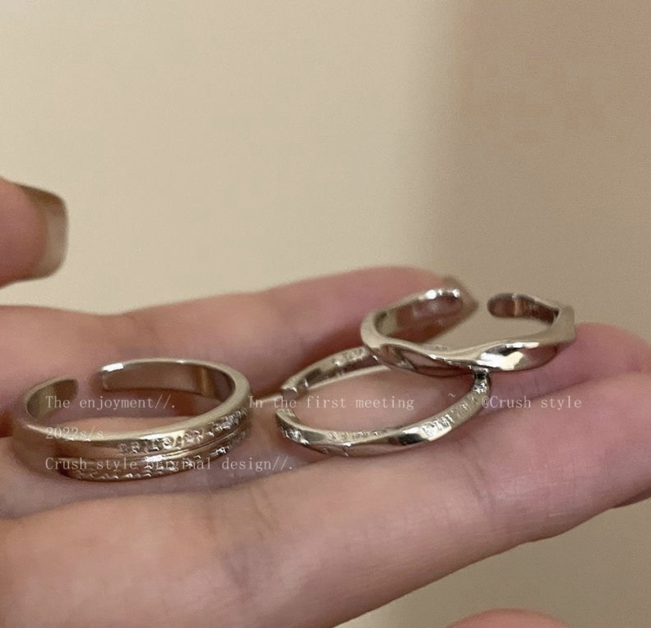 ins日韩简约波浪形戒指个性指环小众设计感气质网红尾戒指套装女