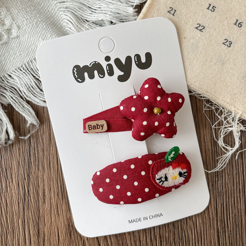 韩版甜美百搭儿童布艺掰掰夹女童红色碎发卡子少女蝴蝶结发夹发饰