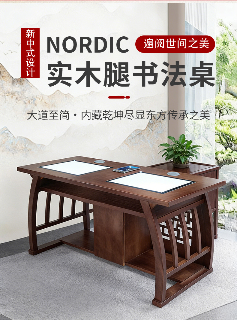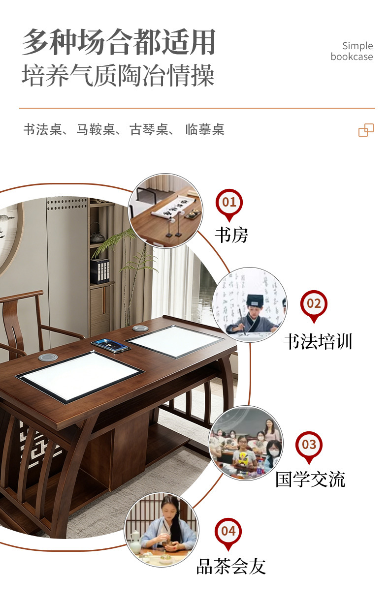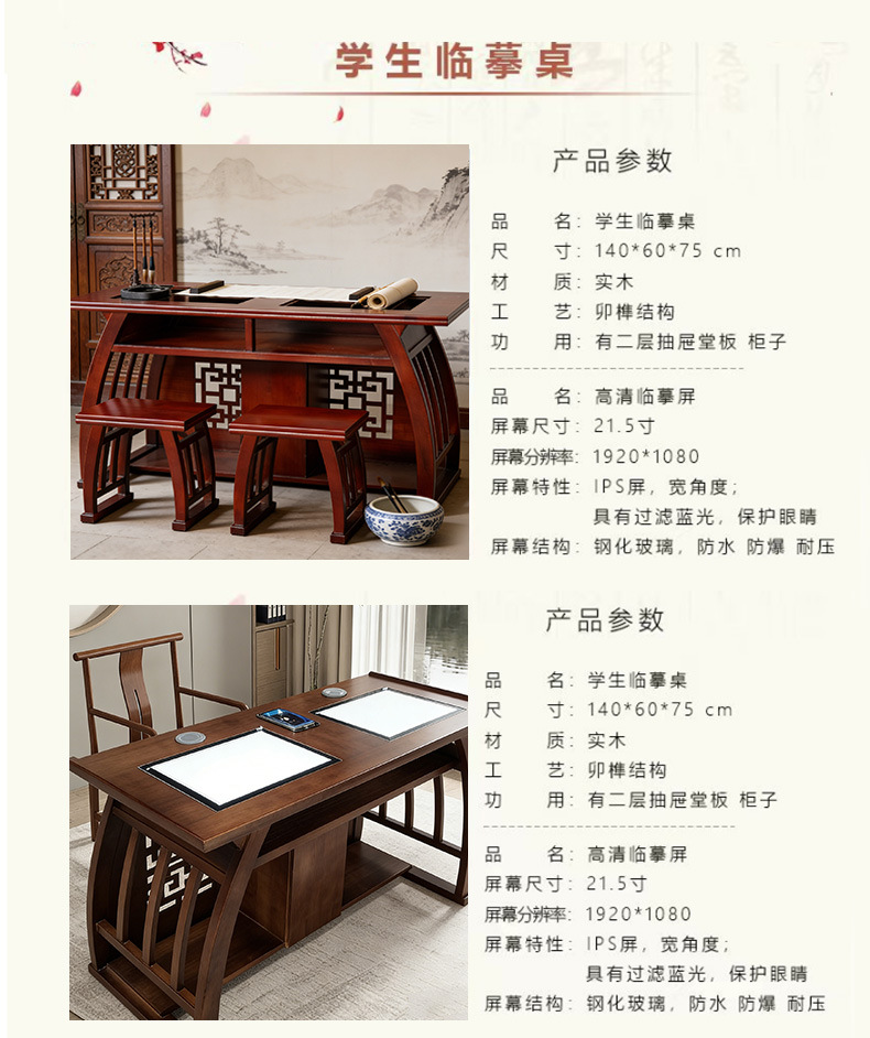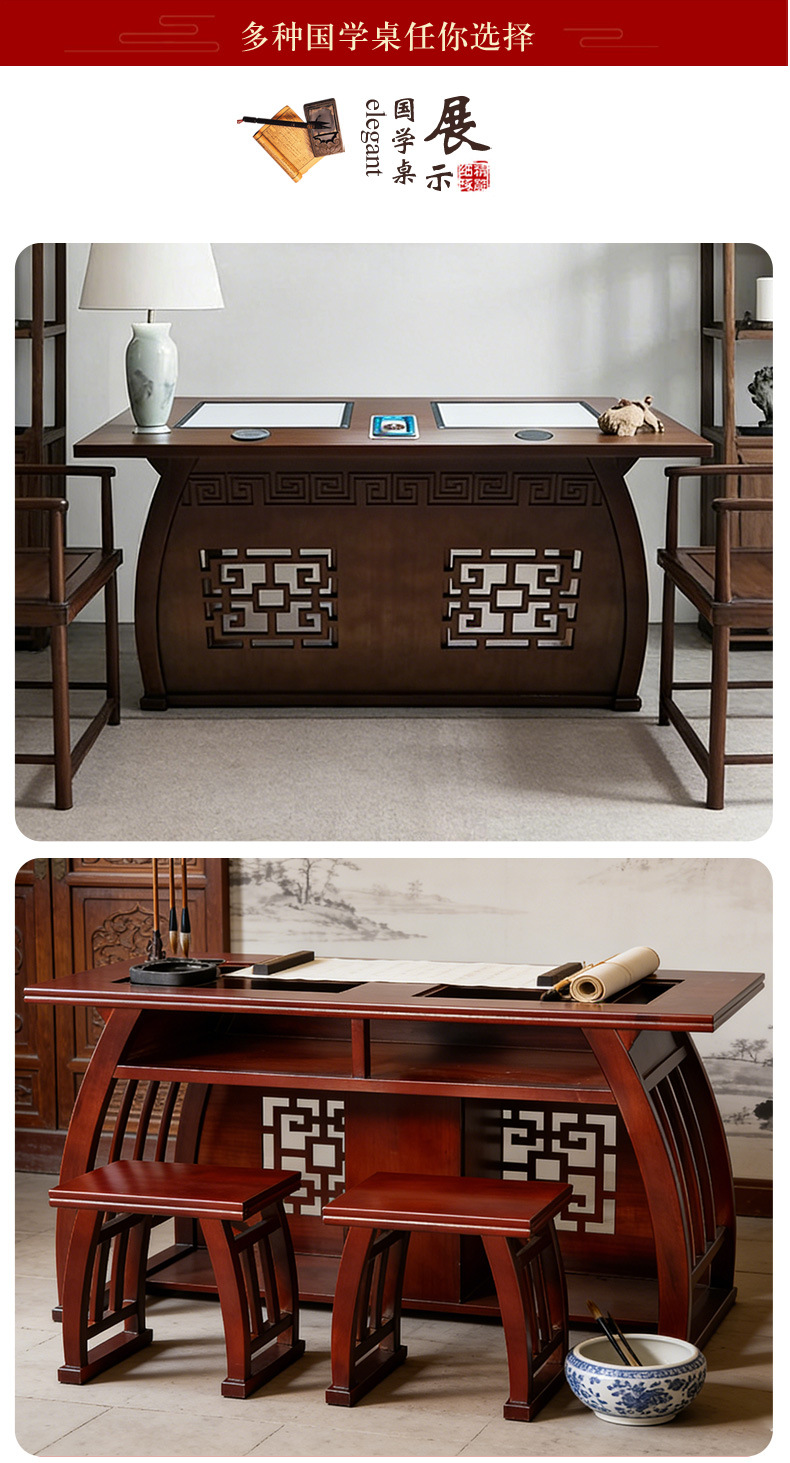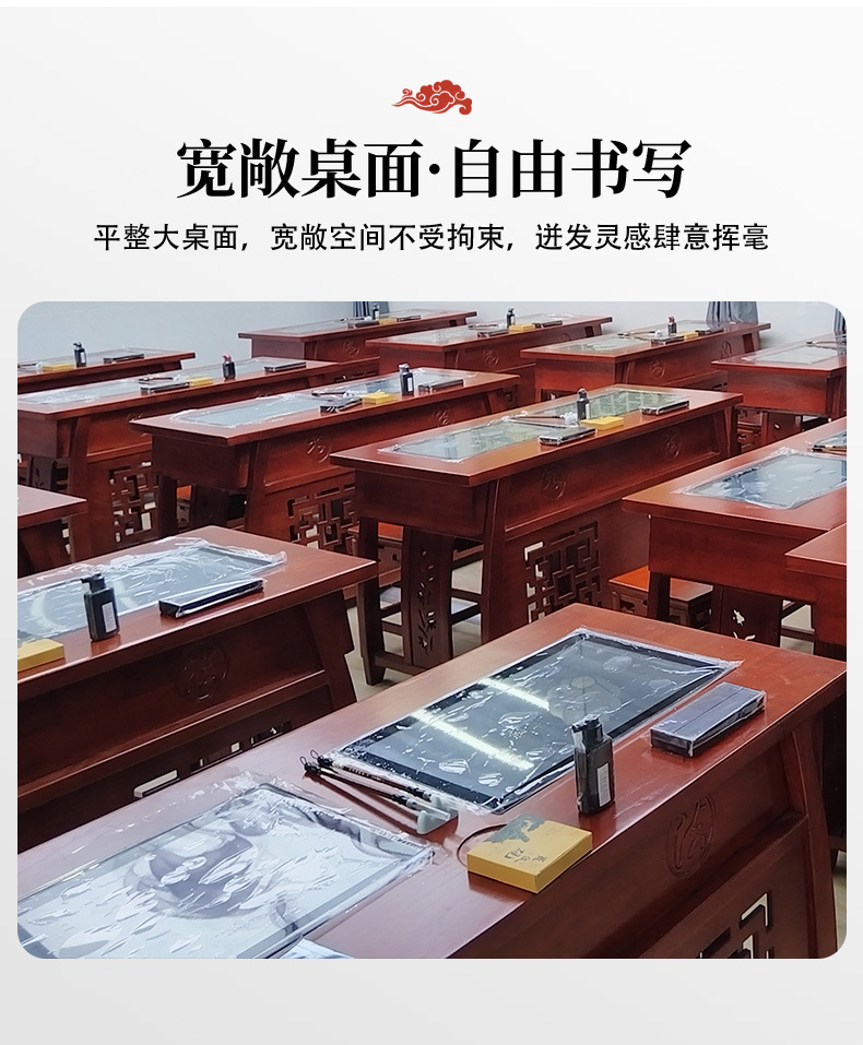 中式实木书法临摹桌 培训班课桌椅书画桌学生书法课堂桌椅批发