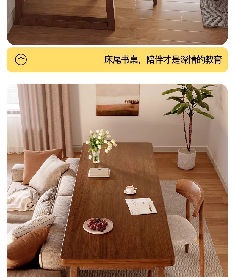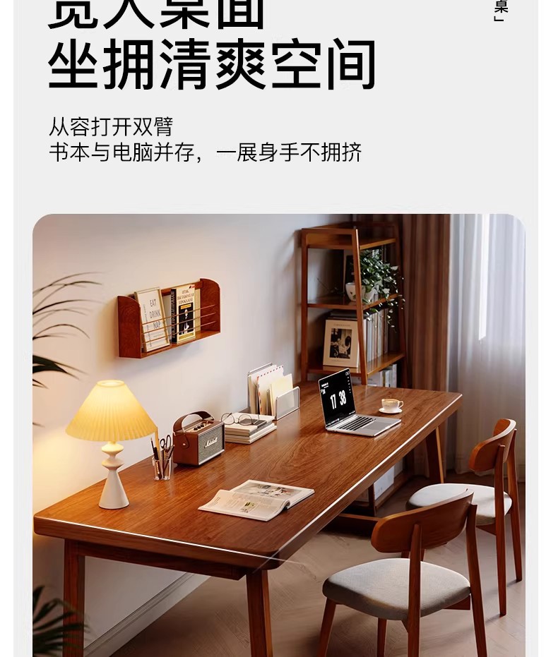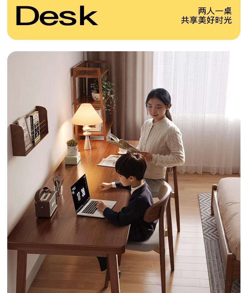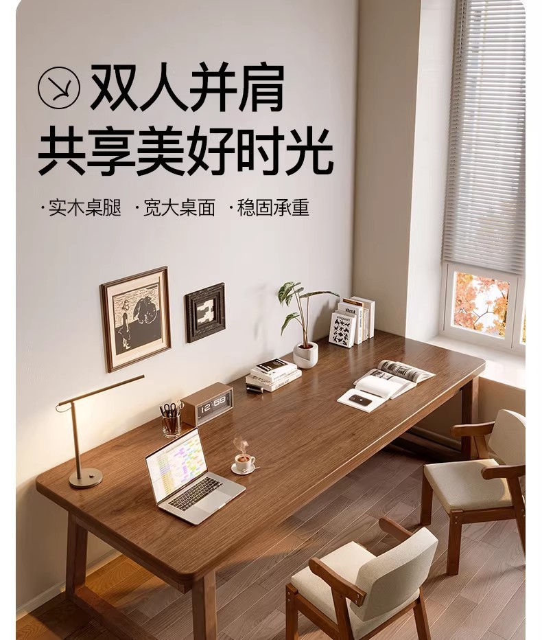 严选实木电脑桌书桌家用学习桌学生写字桌客厅大板桌双人长条桌子