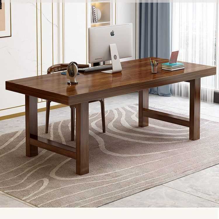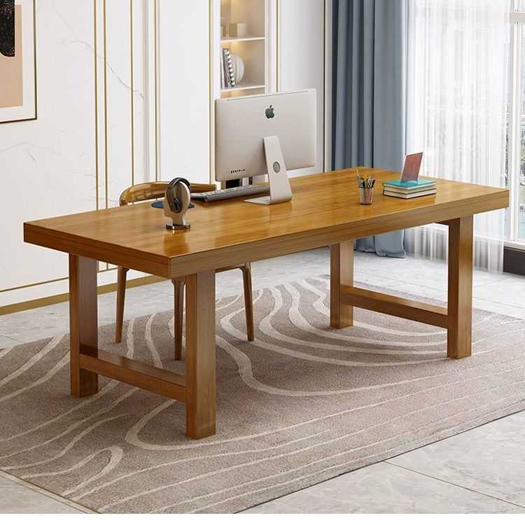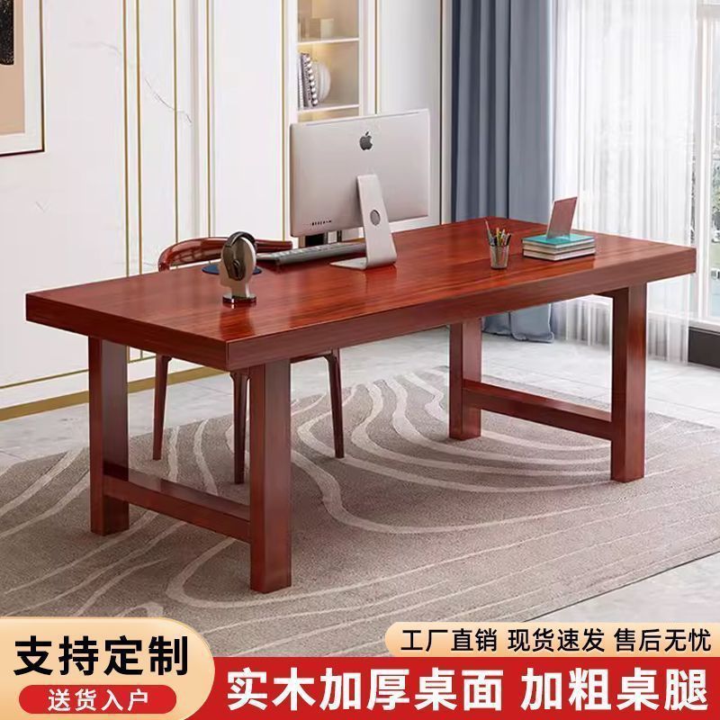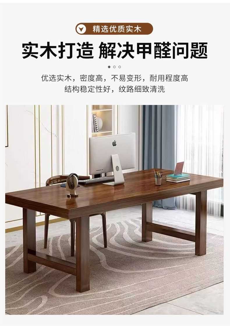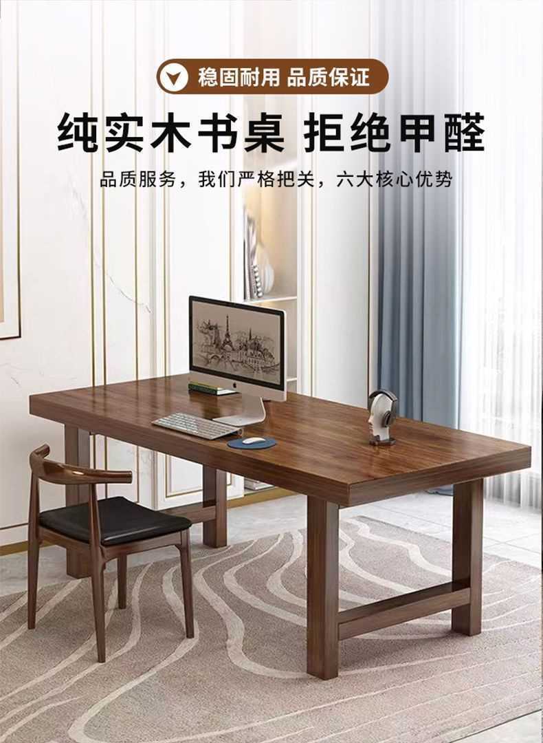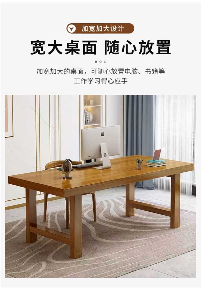 办公桌现代简约超厚实木电脑桌客厅家用台式办公学习长条圆角书桌