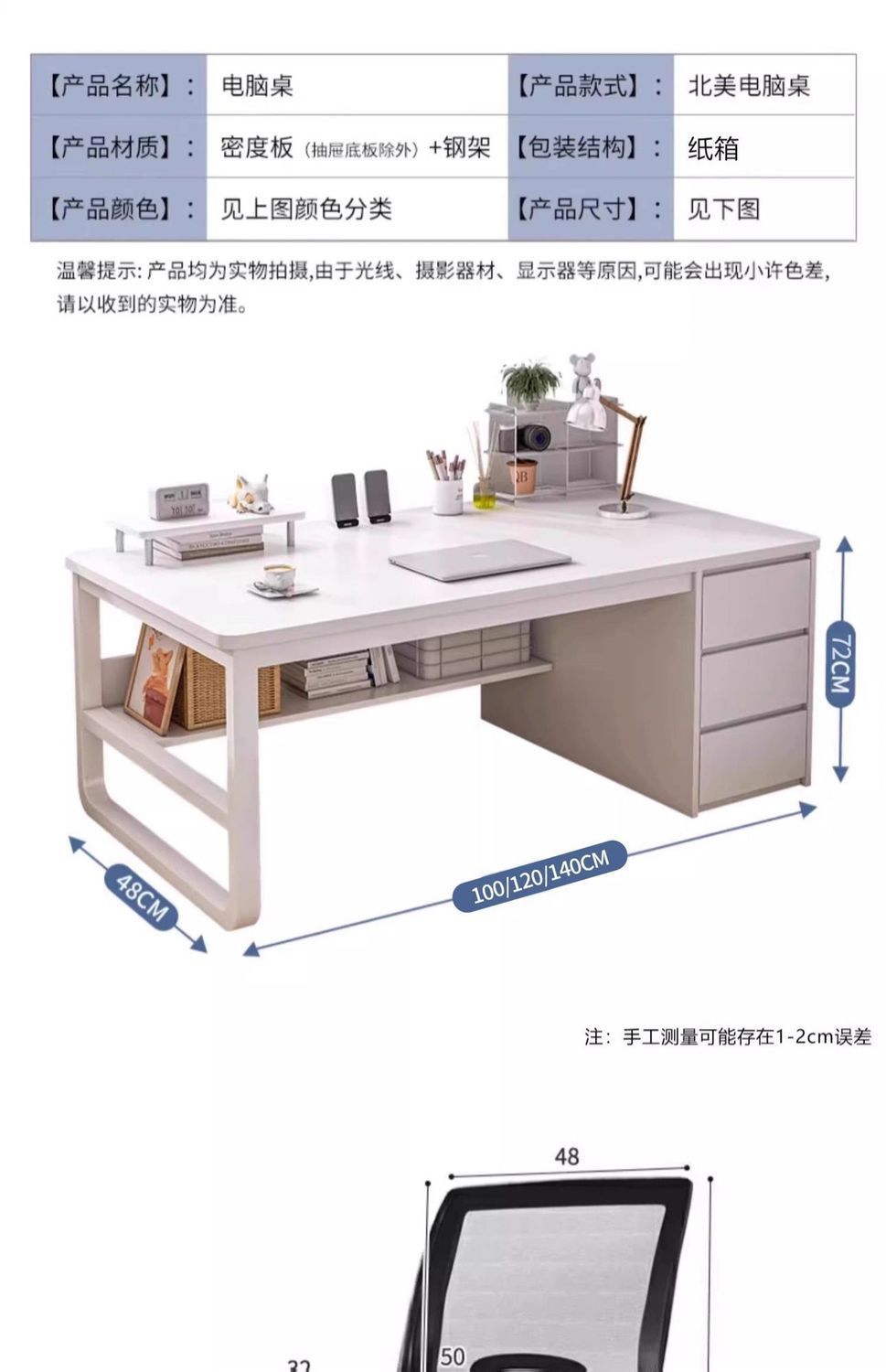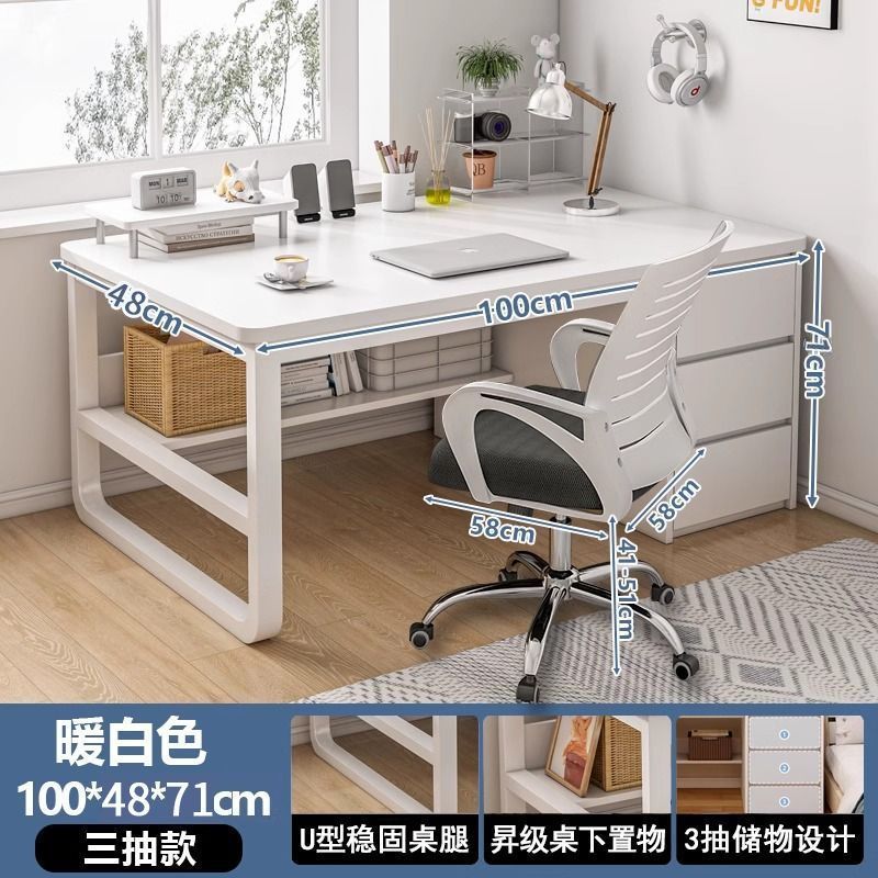 电脑桌抽屉台式书桌学生家用写字桌子办公桌简约现代卧室桌子