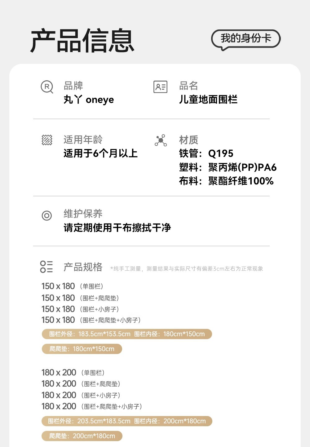 丸丫儿童游戏围栏婴儿客厅地上爬行学步宝宝室内家用爬爬垫防护栏