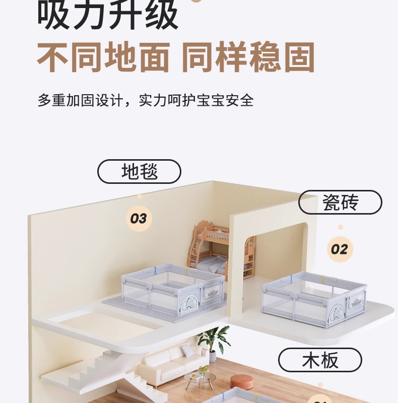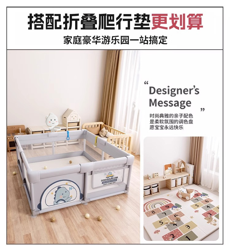 栅栏家用栏垫地上儿童室内游戏学步爬行宝宝围栏防护栏婴儿客厅爬