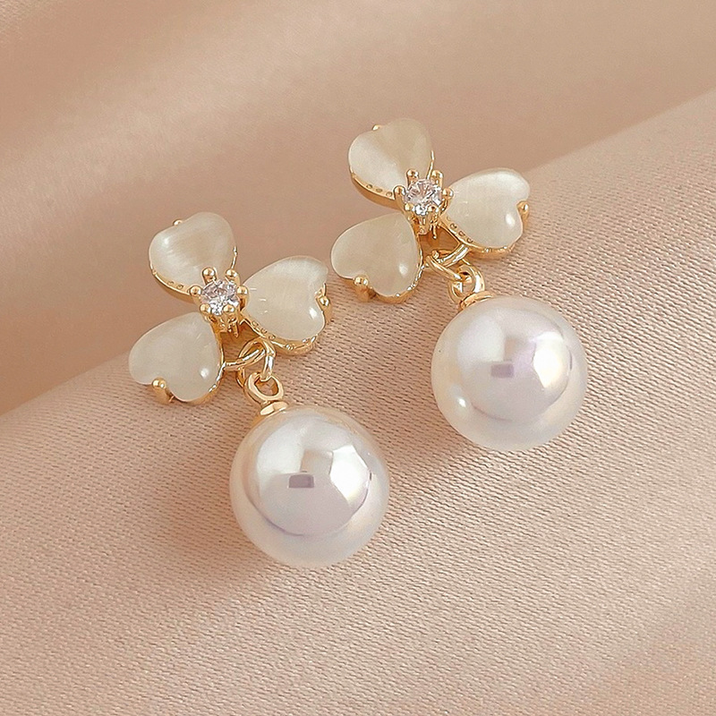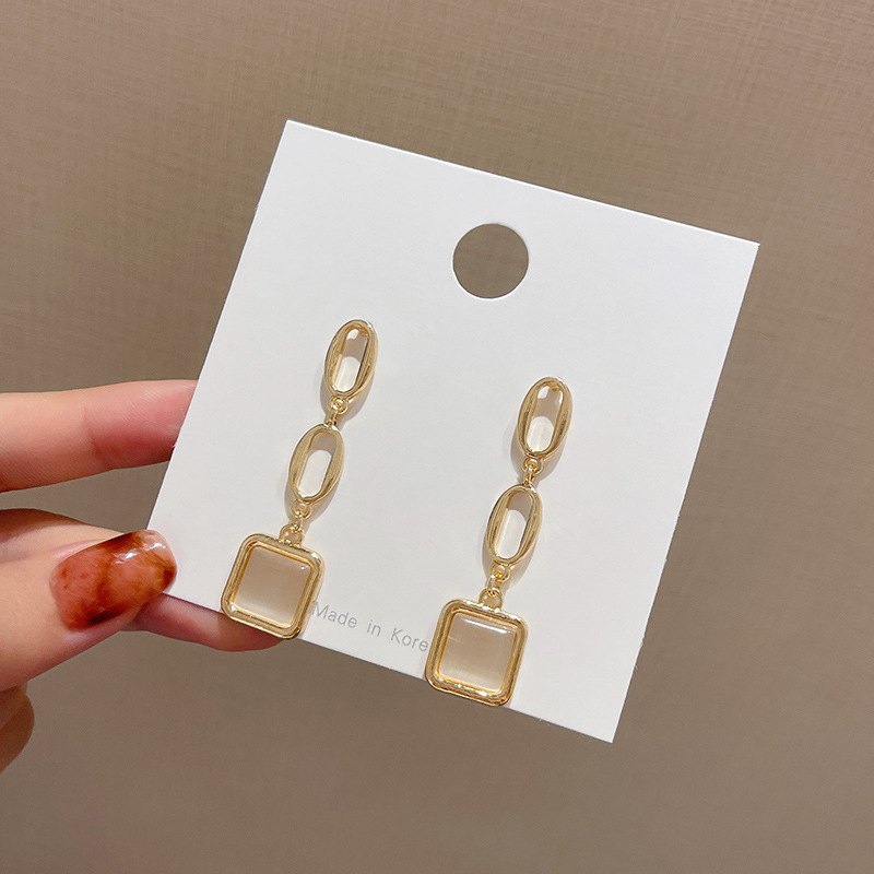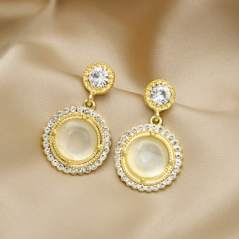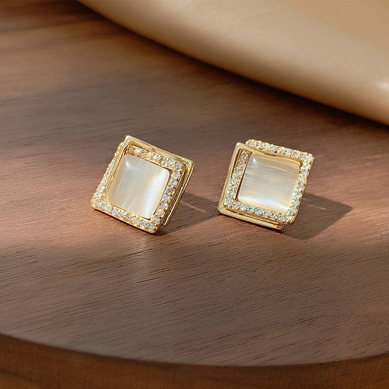 跨境热销猫眼石耳钉女气质几何爱心高级感耳环ins风韩国耳饰合集