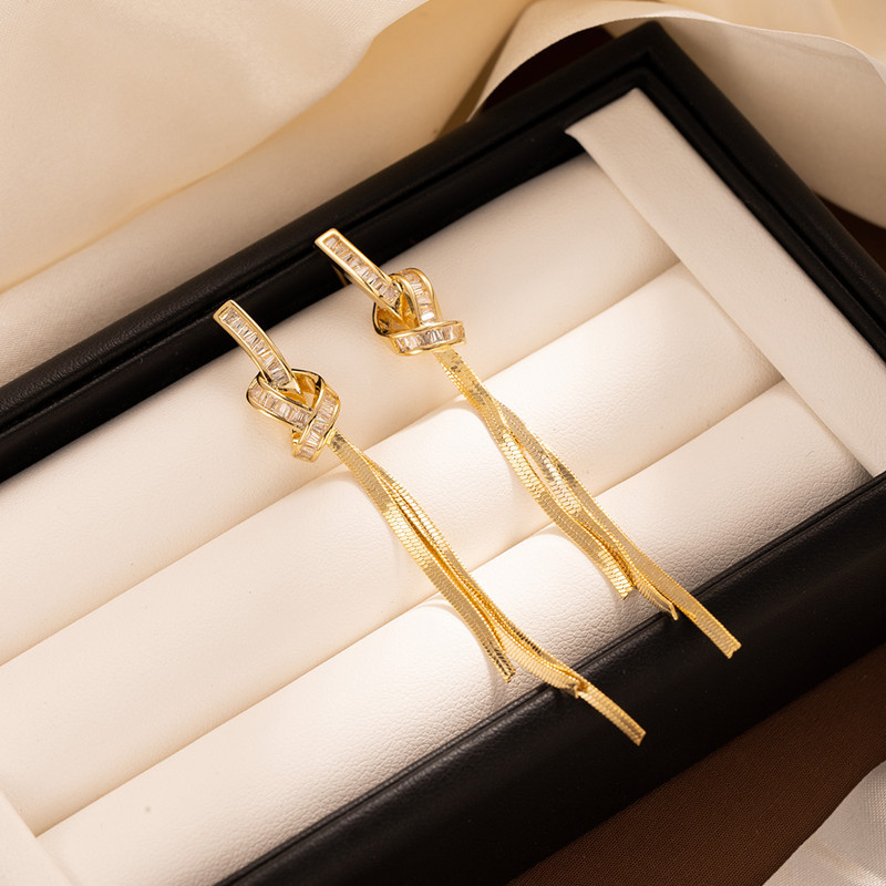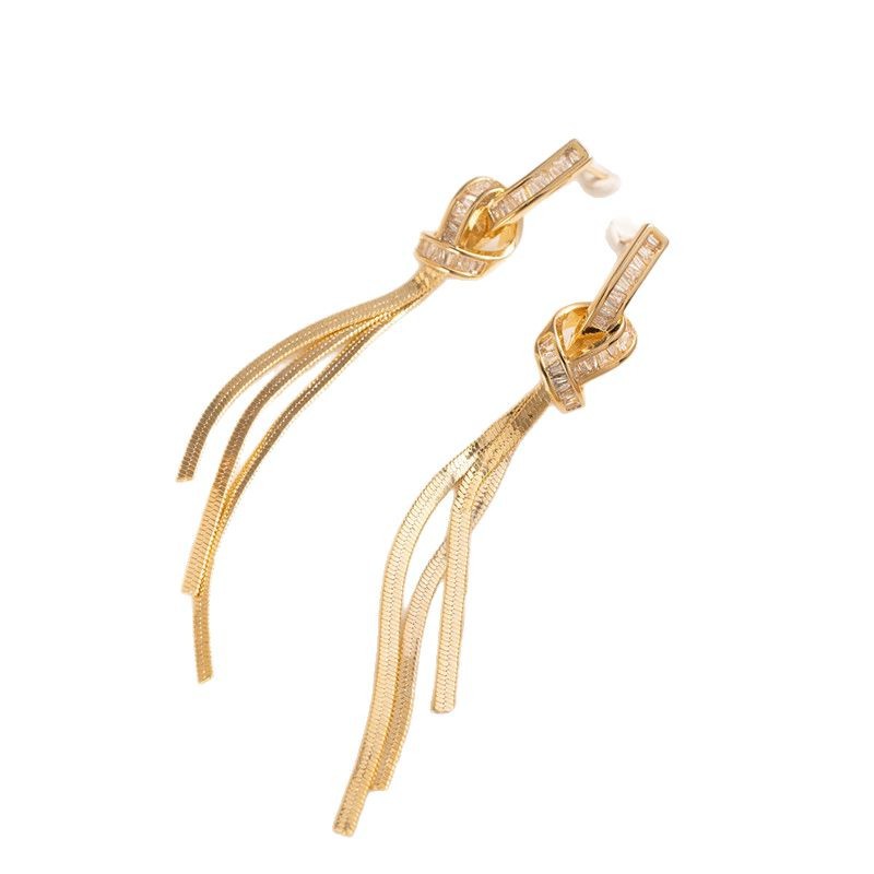 韩式气质简约锆石打结长款流苏耳环s925银针高级感小众耳坠夏日