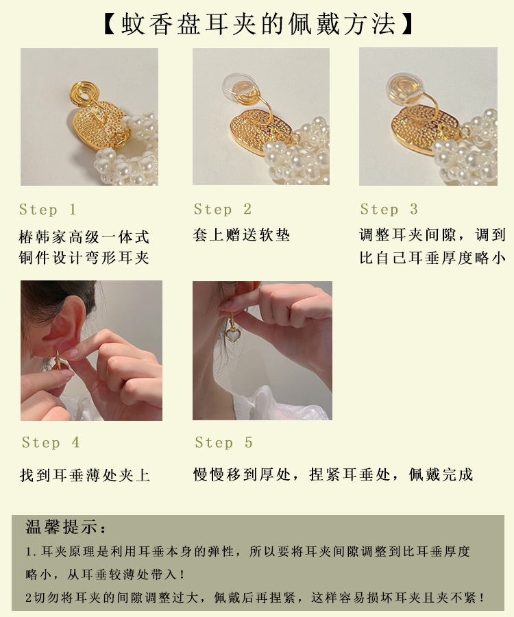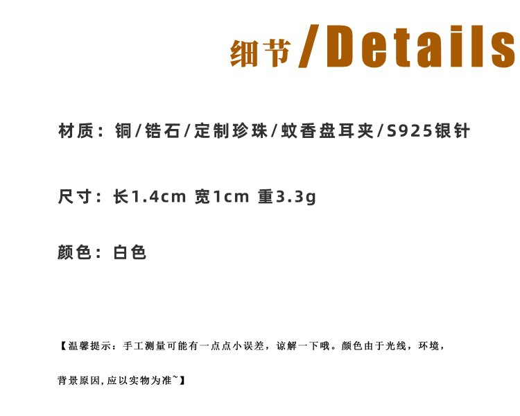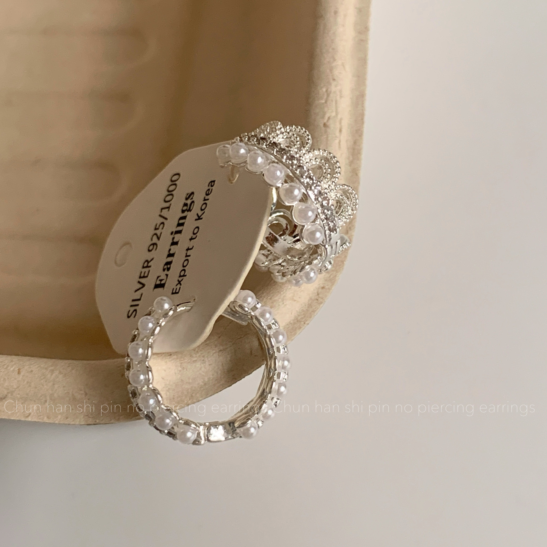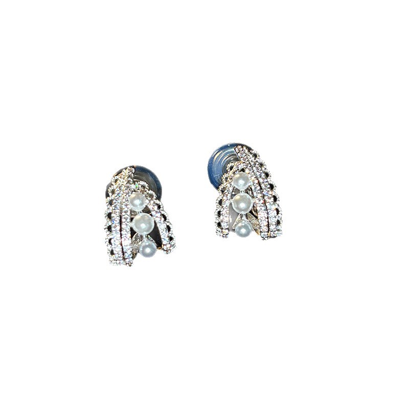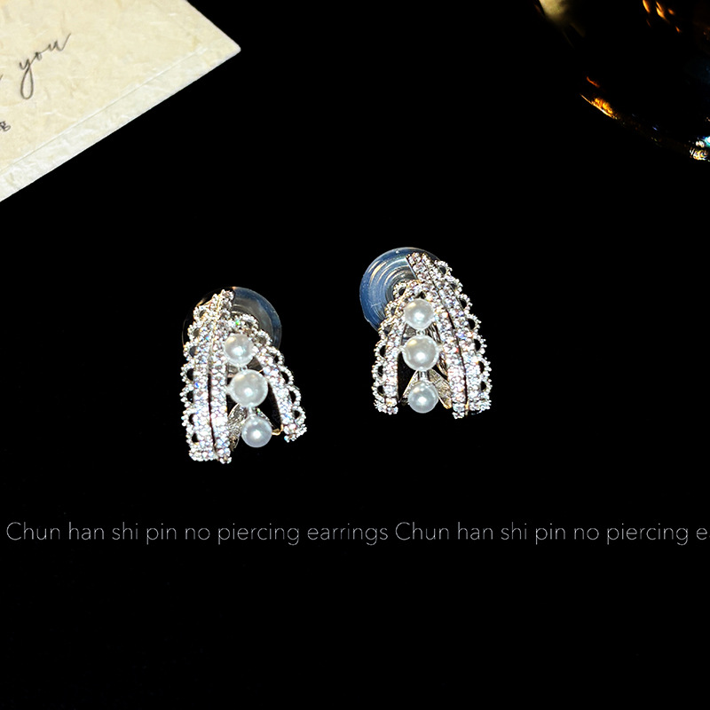 蕾丝花边珍珠耳环耳夹轻奢高级时尚百搭耳扣简约气质时尚银色耳饰