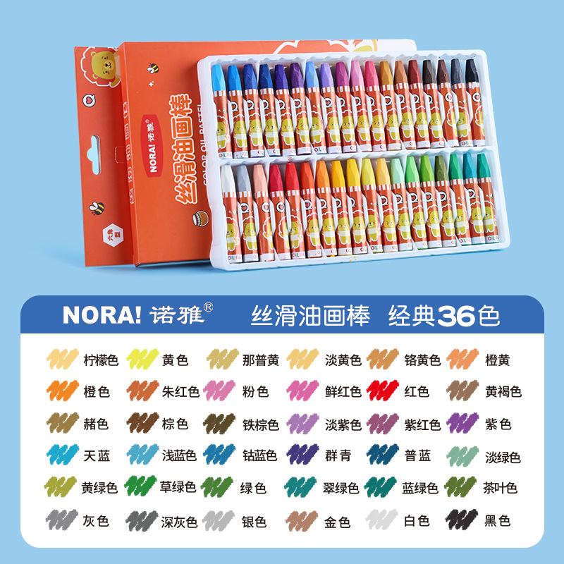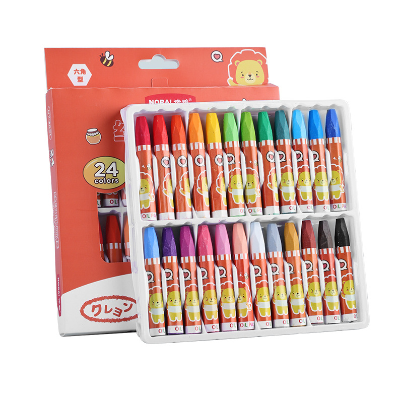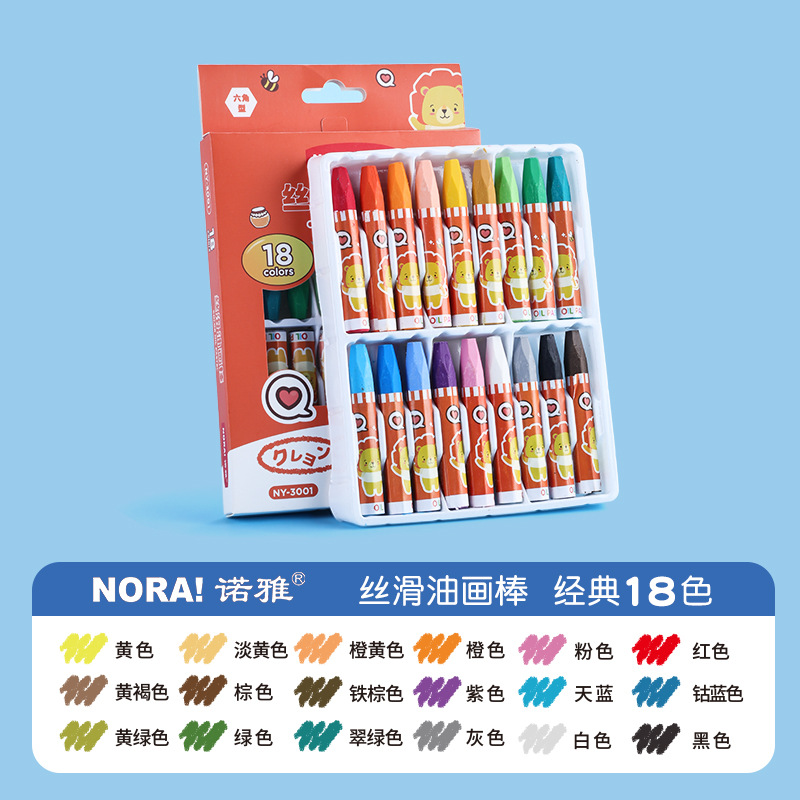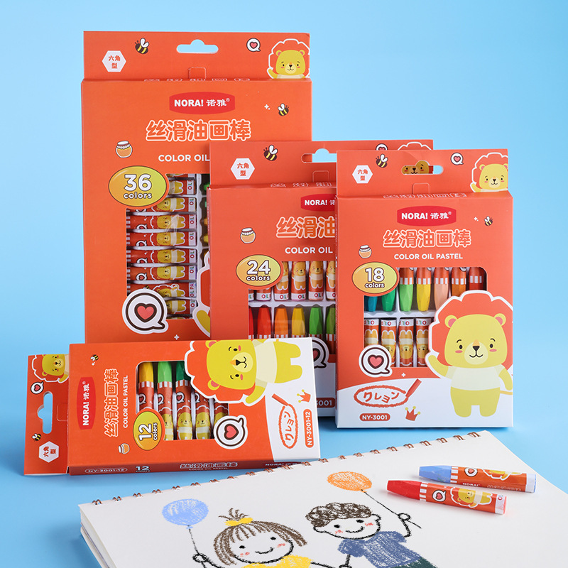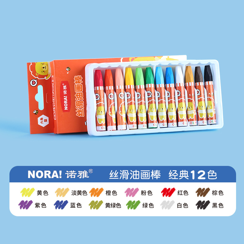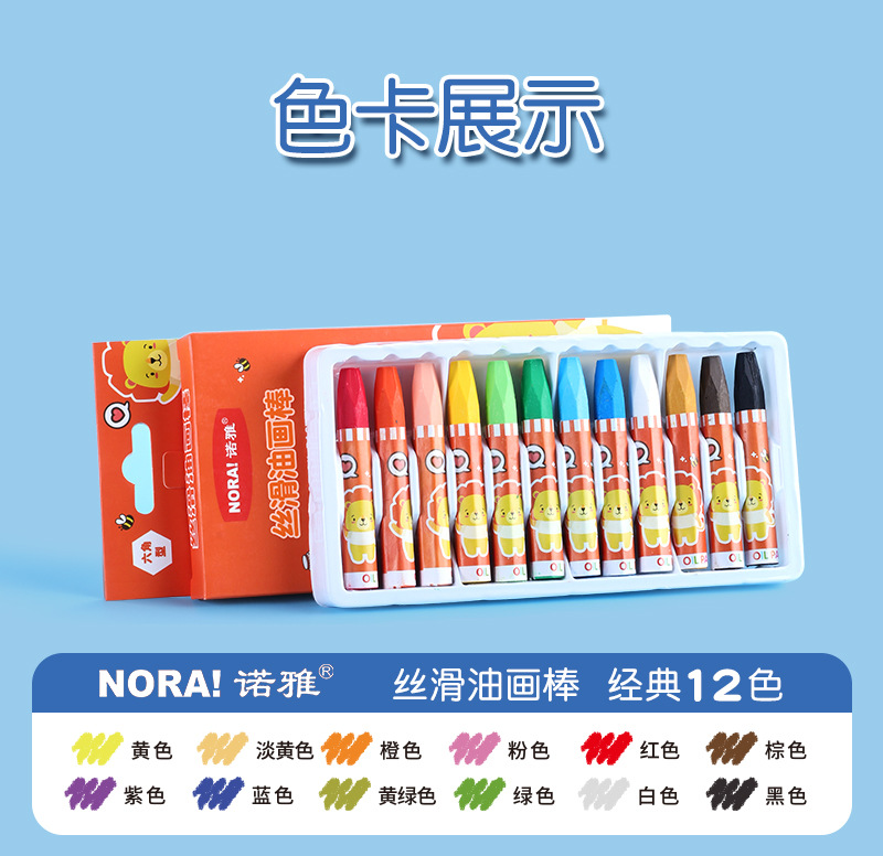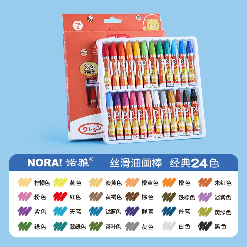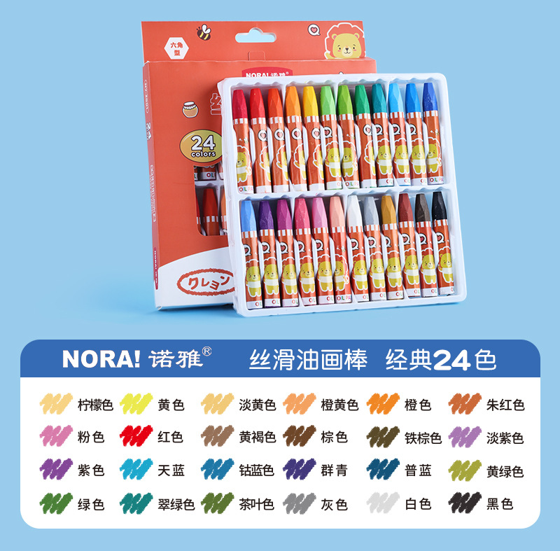 诺雅儿童卡通丝滑油画棒可叠色六角杆蜡笔幼儿园宝宝启蒙涂色画笔