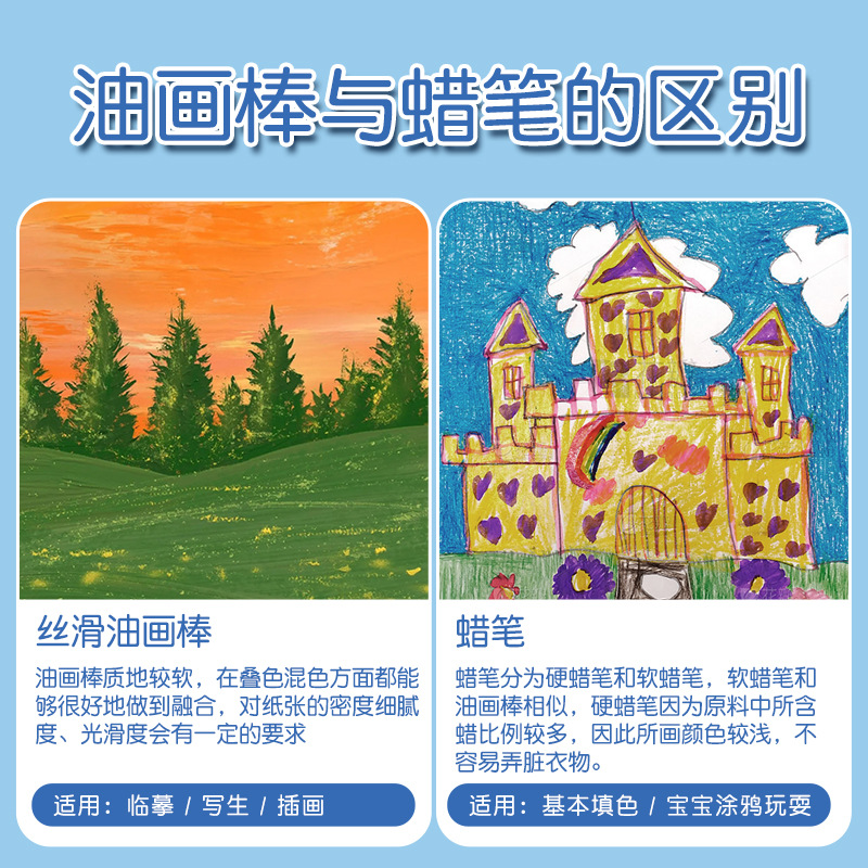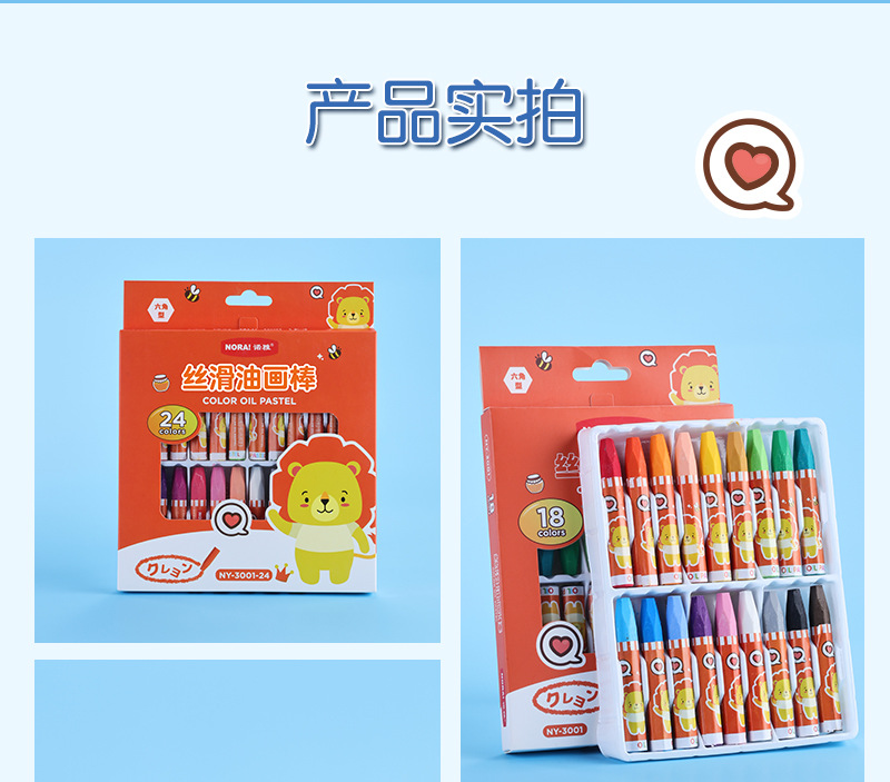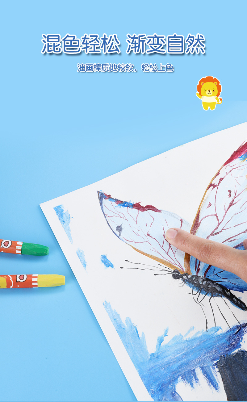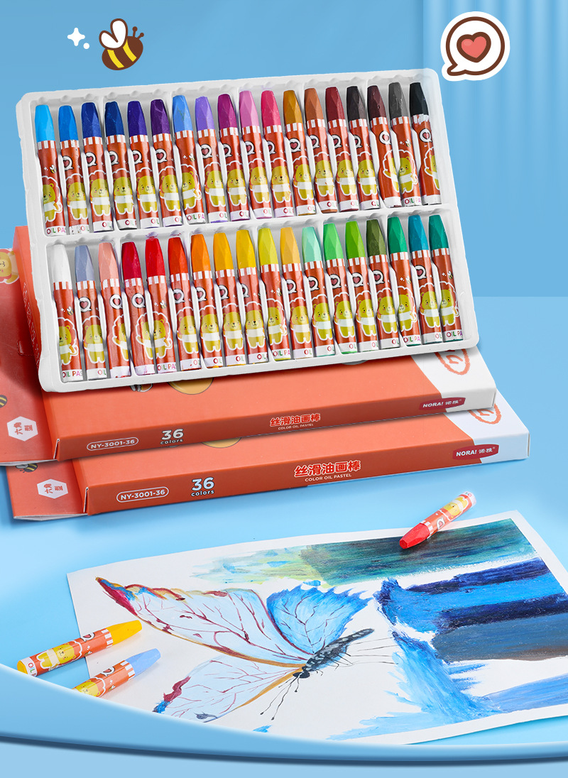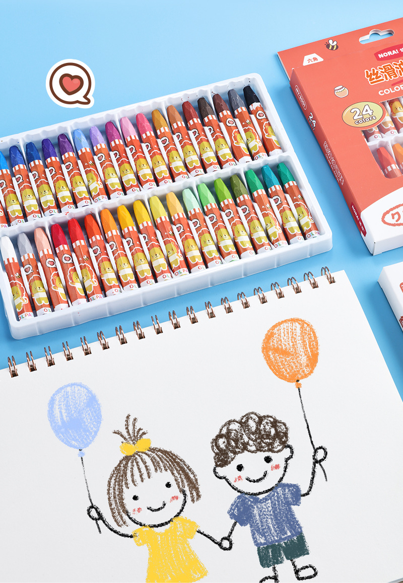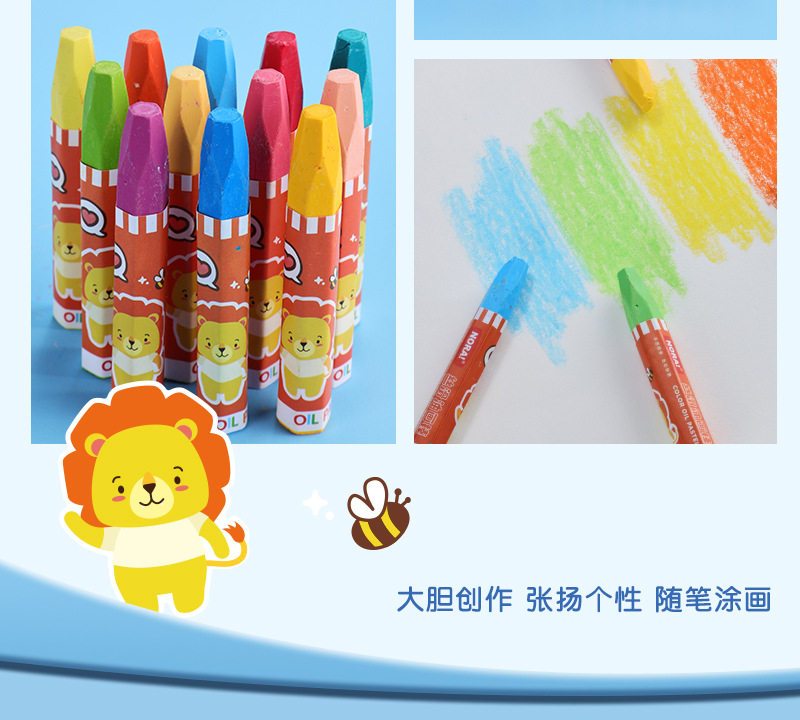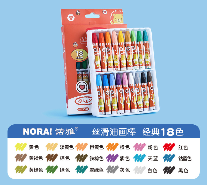 诺雅儿童卡通丝滑油画棒可叠色六角杆蜡笔幼儿园宝宝启蒙涂色画笔