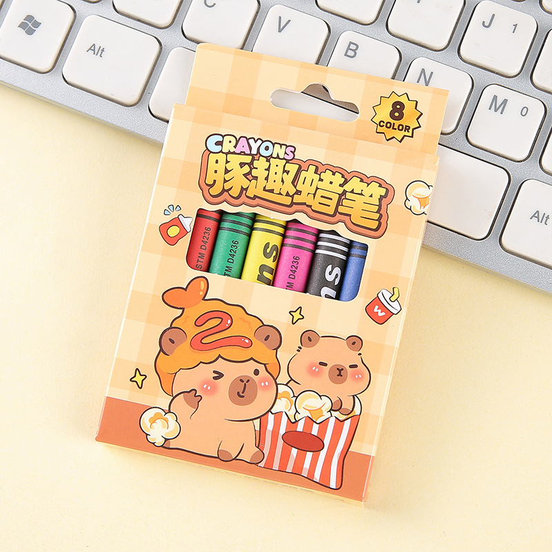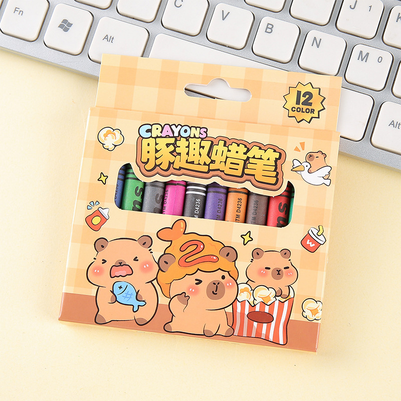 儿童可爱卡通文具12色迷你水豚小蜡笔 幼儿园学生涂鸦小学生礼品