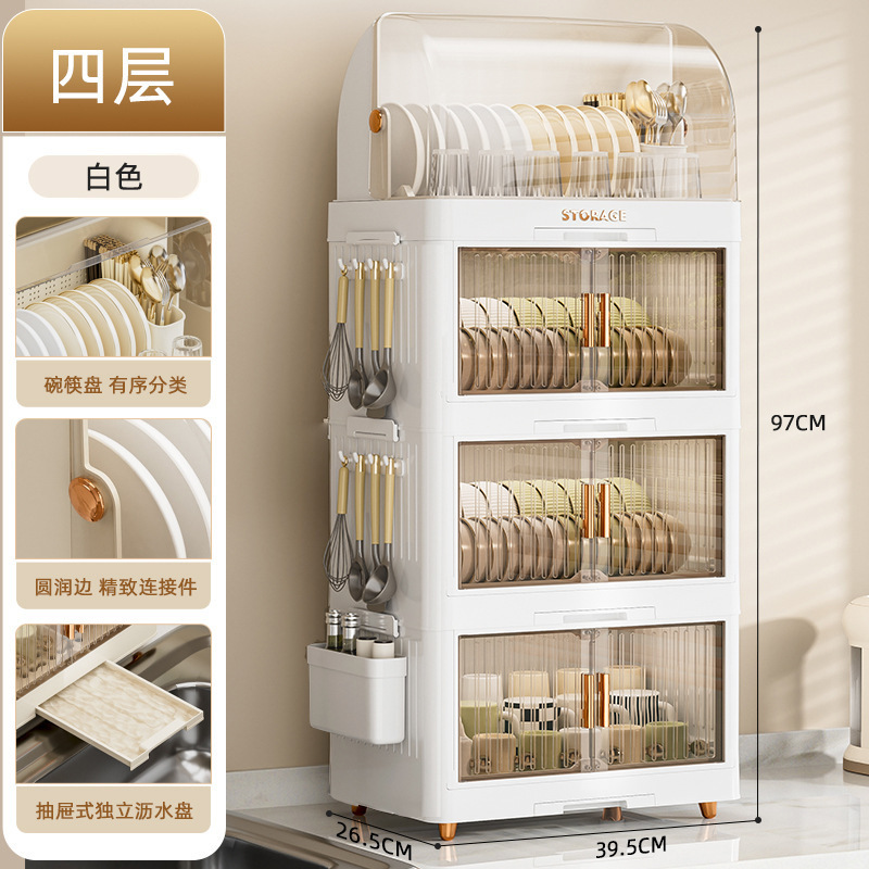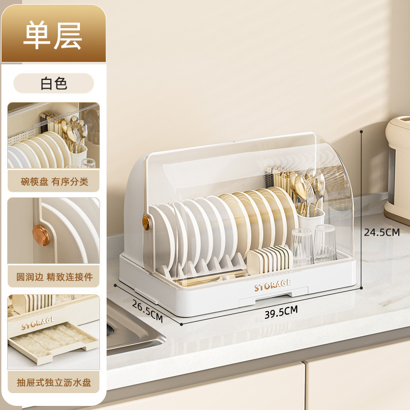 厨房碗架碗筷收纳盒家用带盖放餐具装碗箱碟盘沥水置物架塑料碗柜