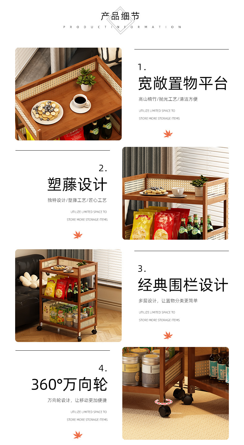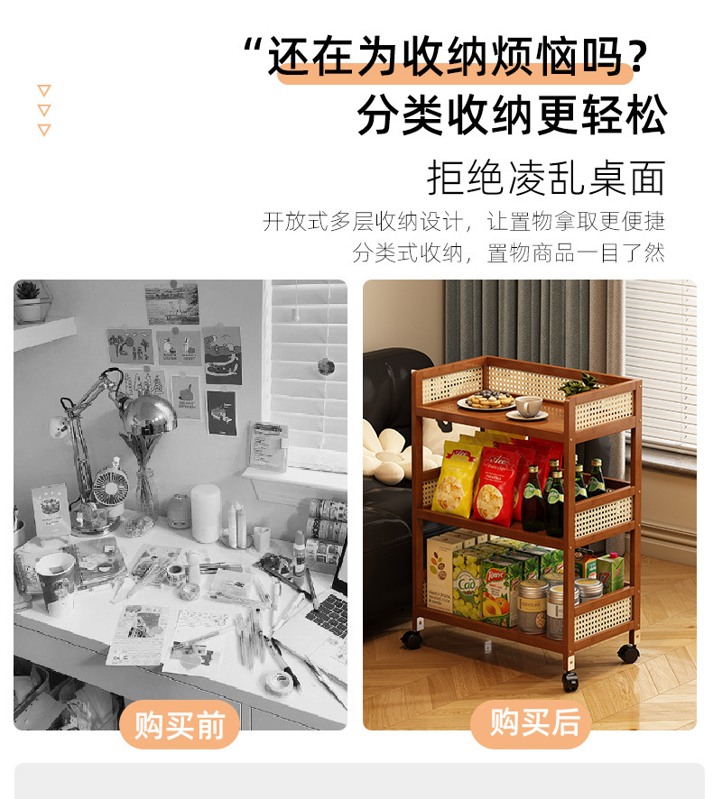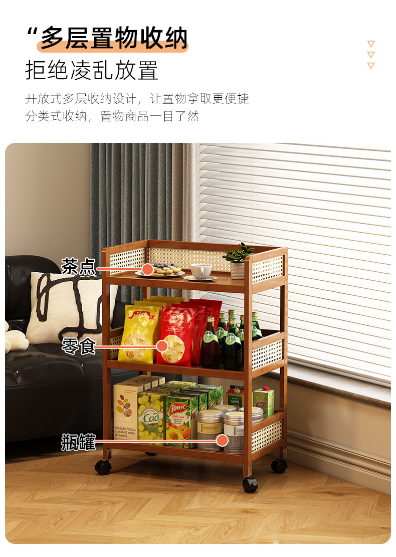 小推车置物架可移动落地多层零食小推车卧室收纳储物架多功能架子