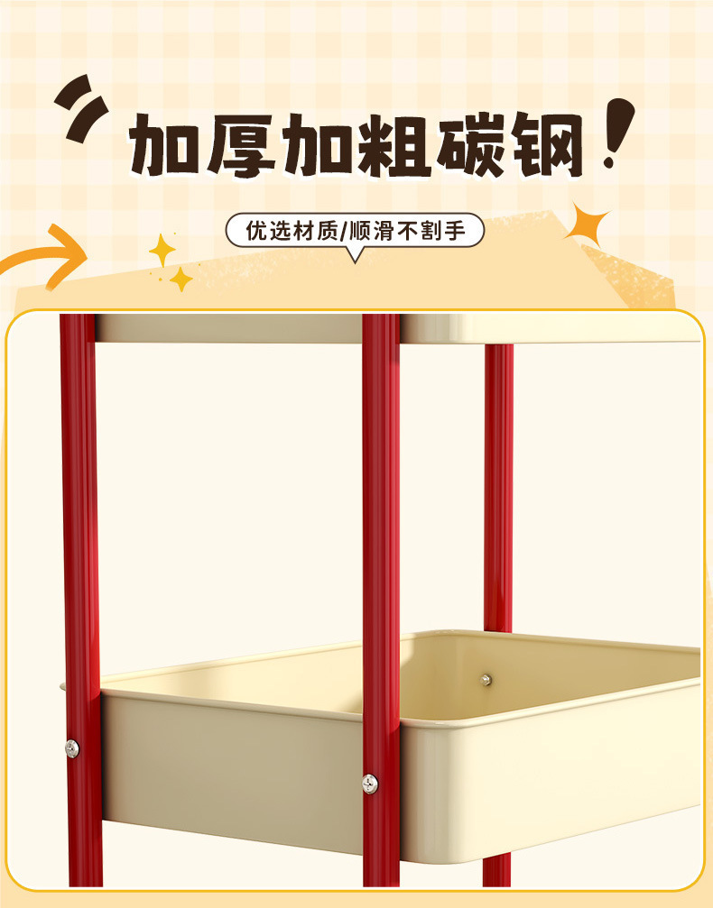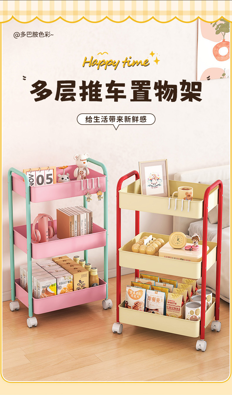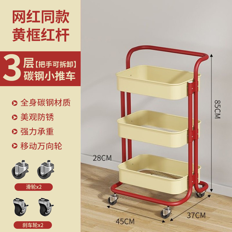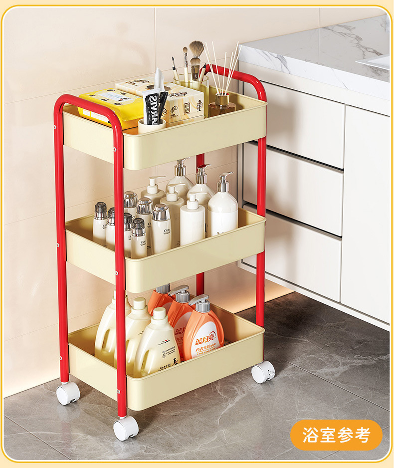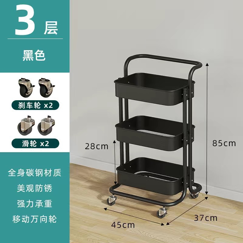 多功能碳钢厨房移动置物架卧室多层可移动零食收纳小推车厕所宿舍