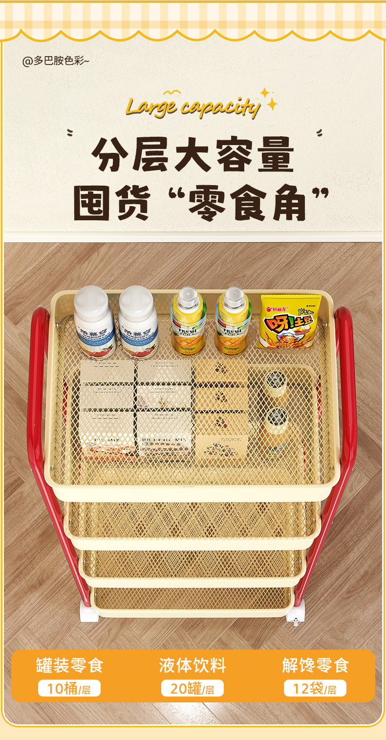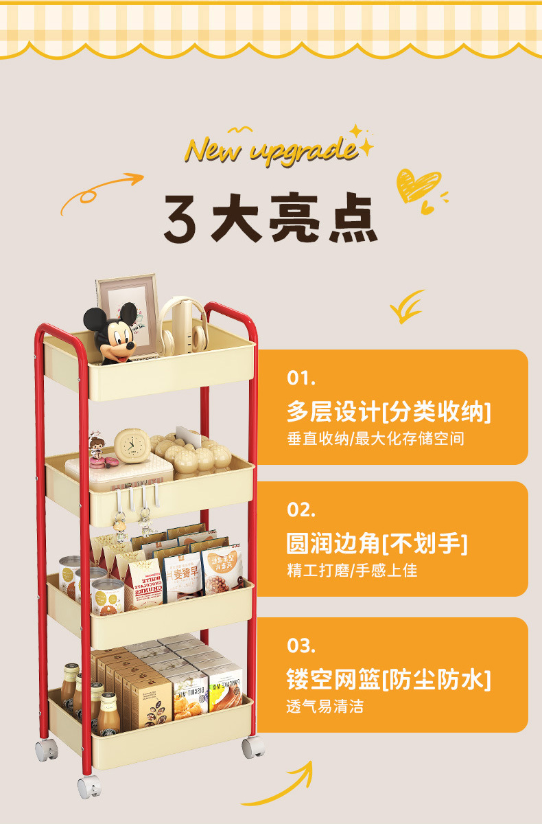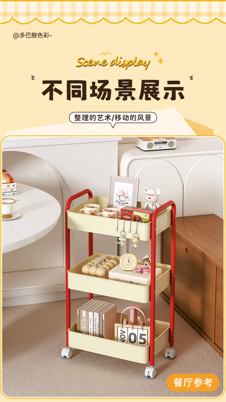 多功能碳钢厨房移动置物架卧室多层可移动零食收纳小推车厕所宿舍