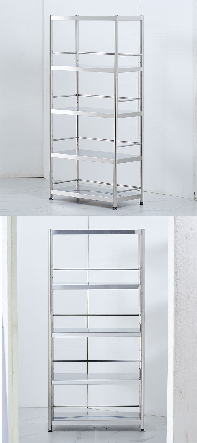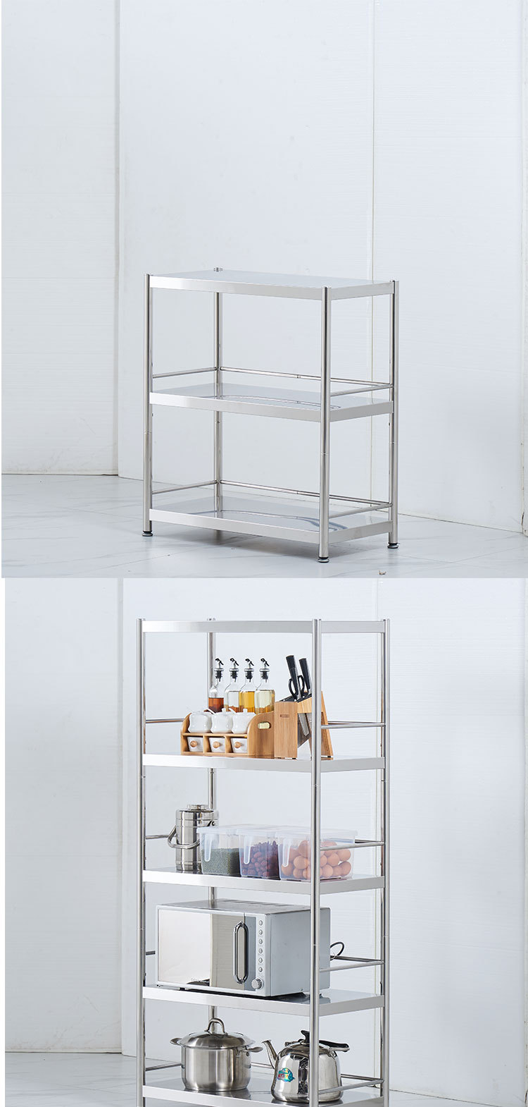 035-系外贸跨境家用不锈钢移动置物架多层落地收纳架储物万向滑轮