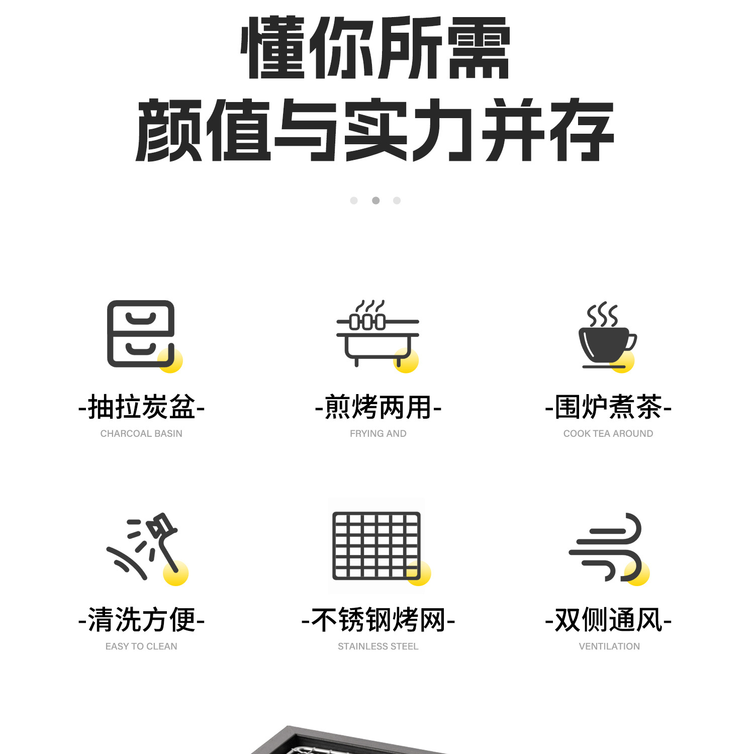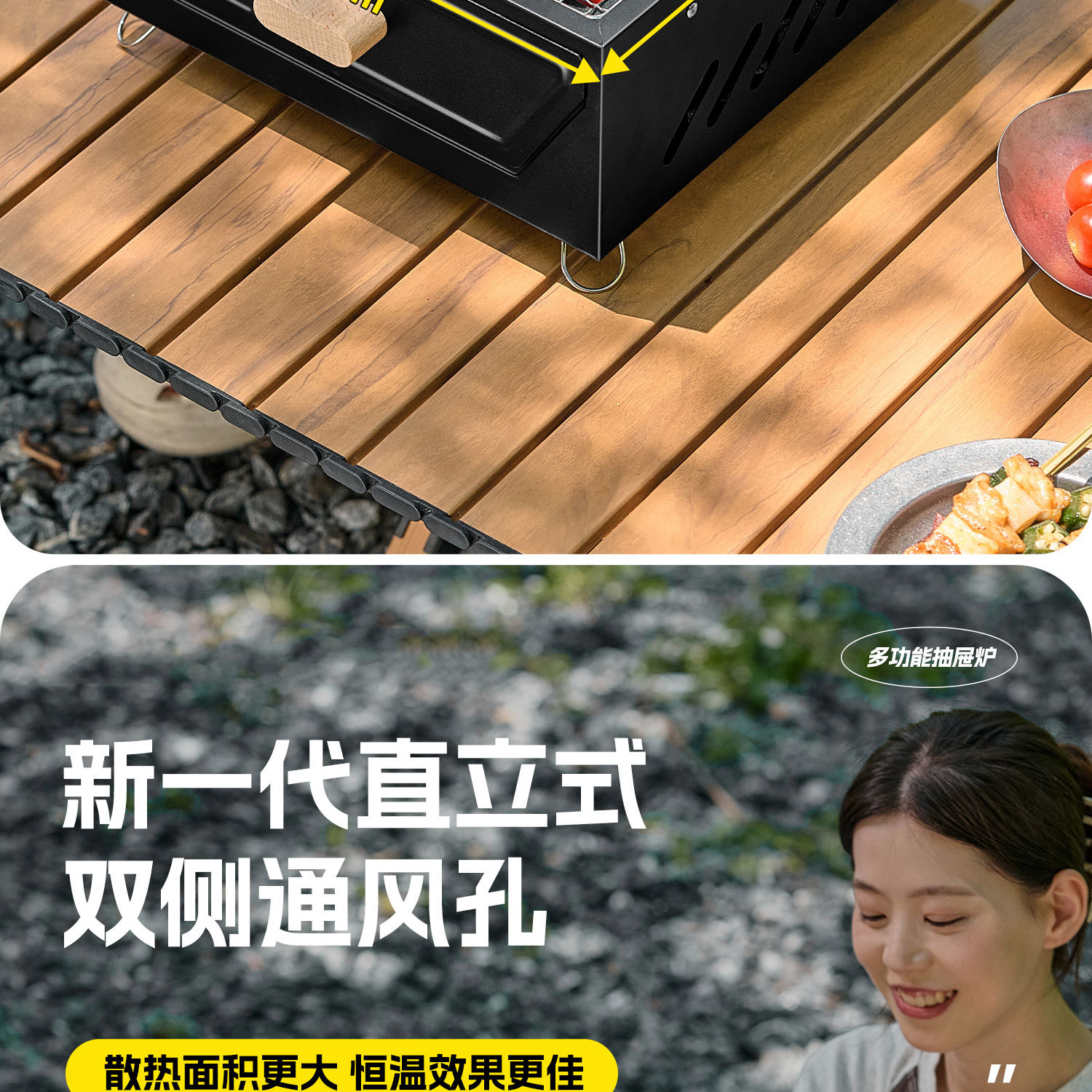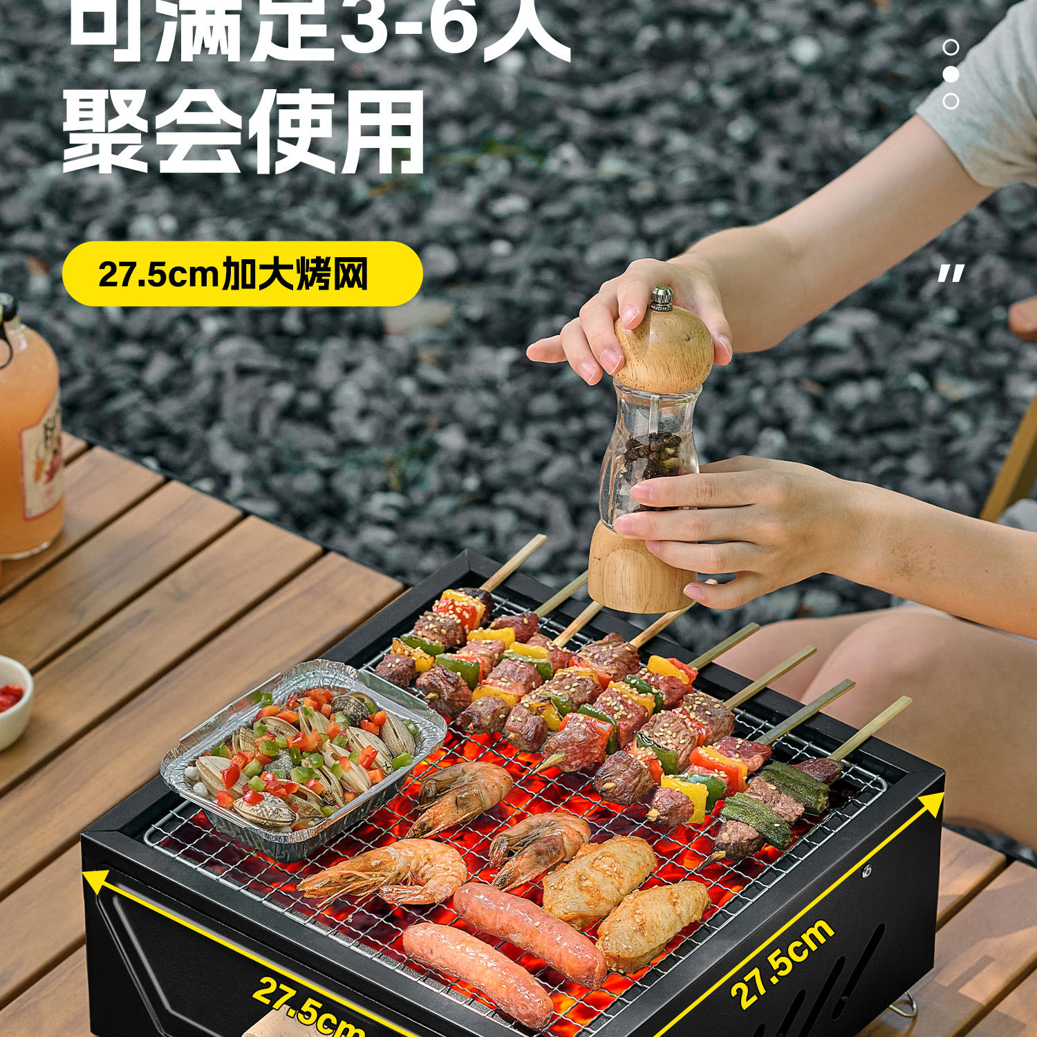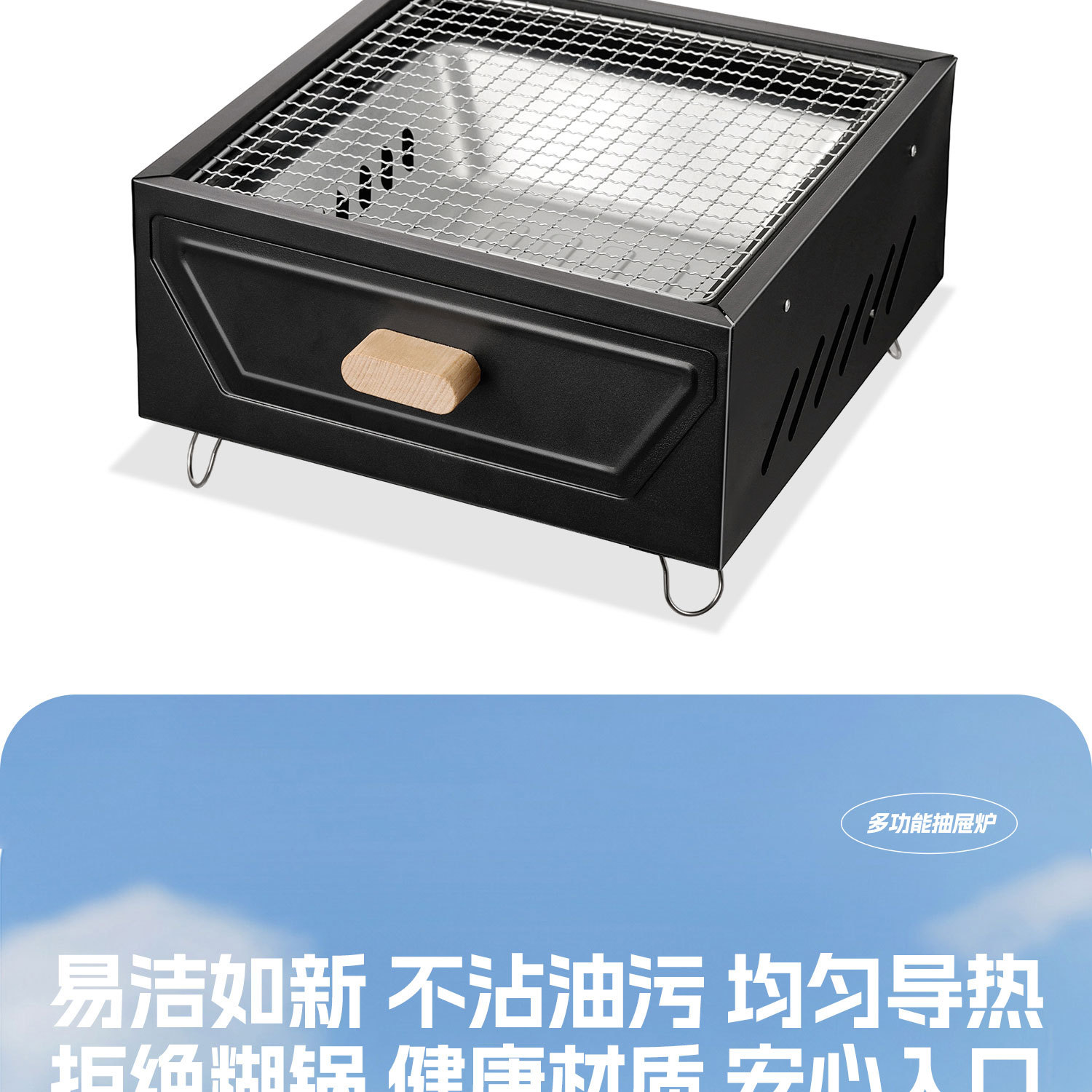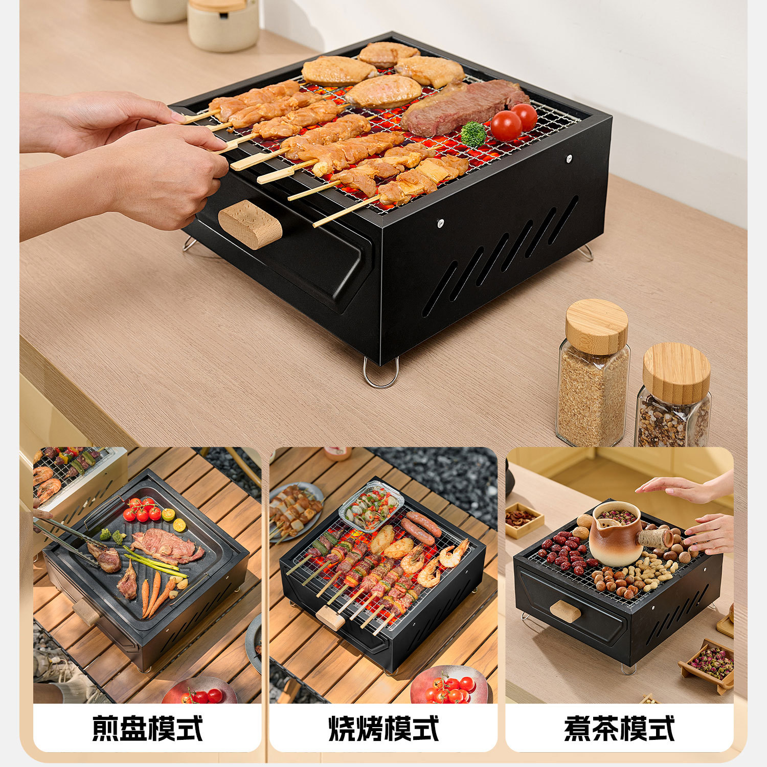围炉煮茶炉子家用便携式木炭烧烤炉户外露营烤火炉烧烤架方形围炉