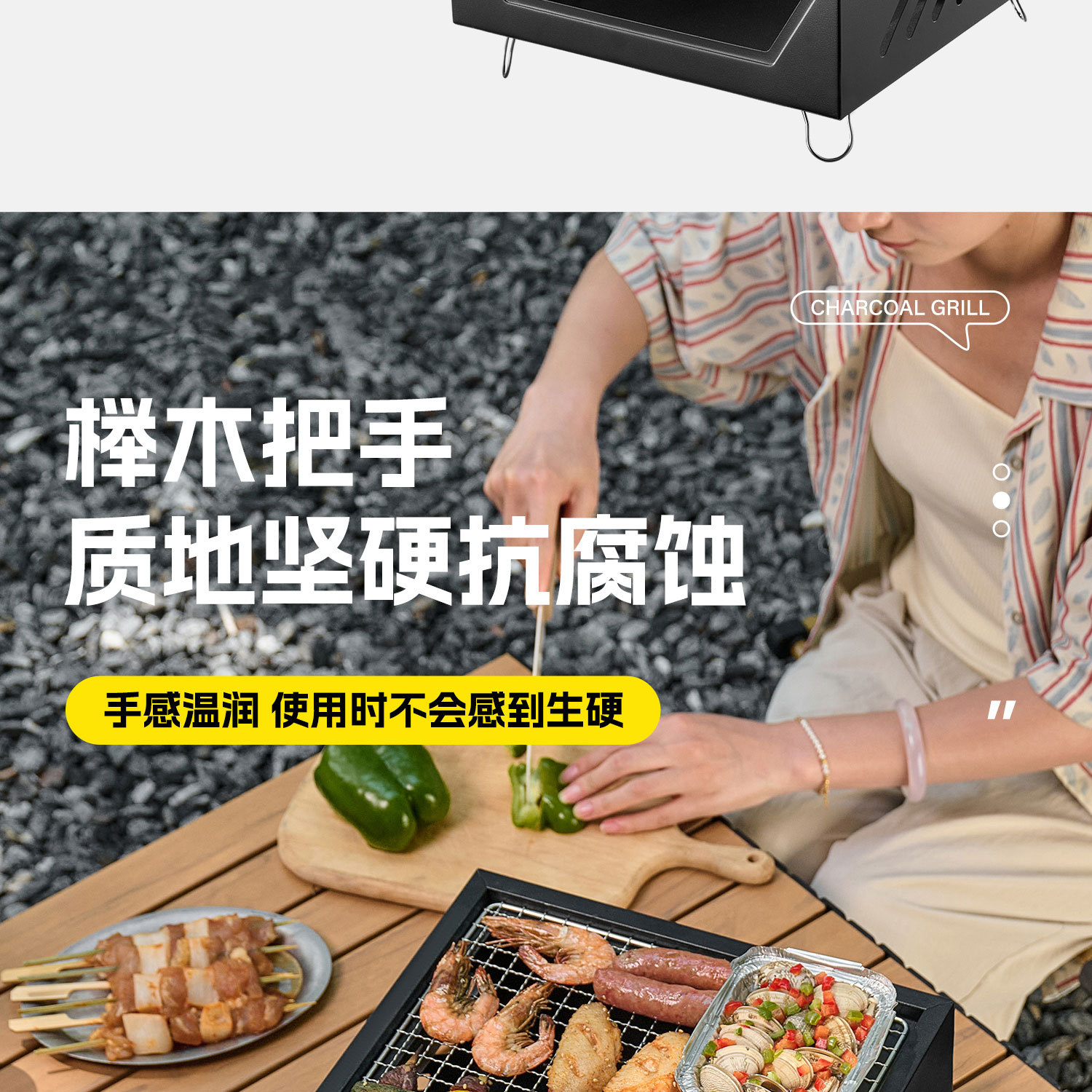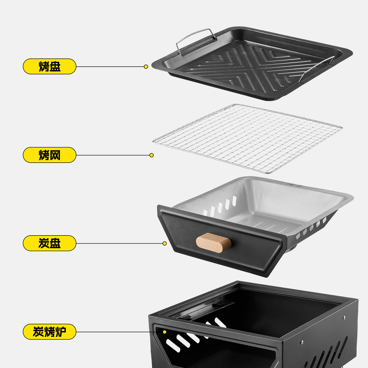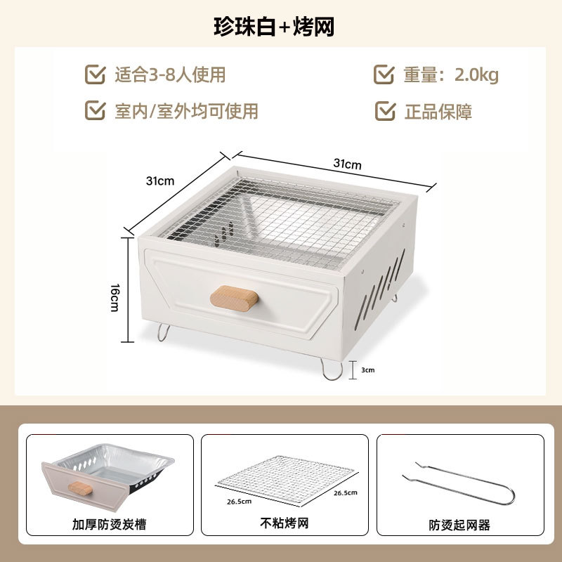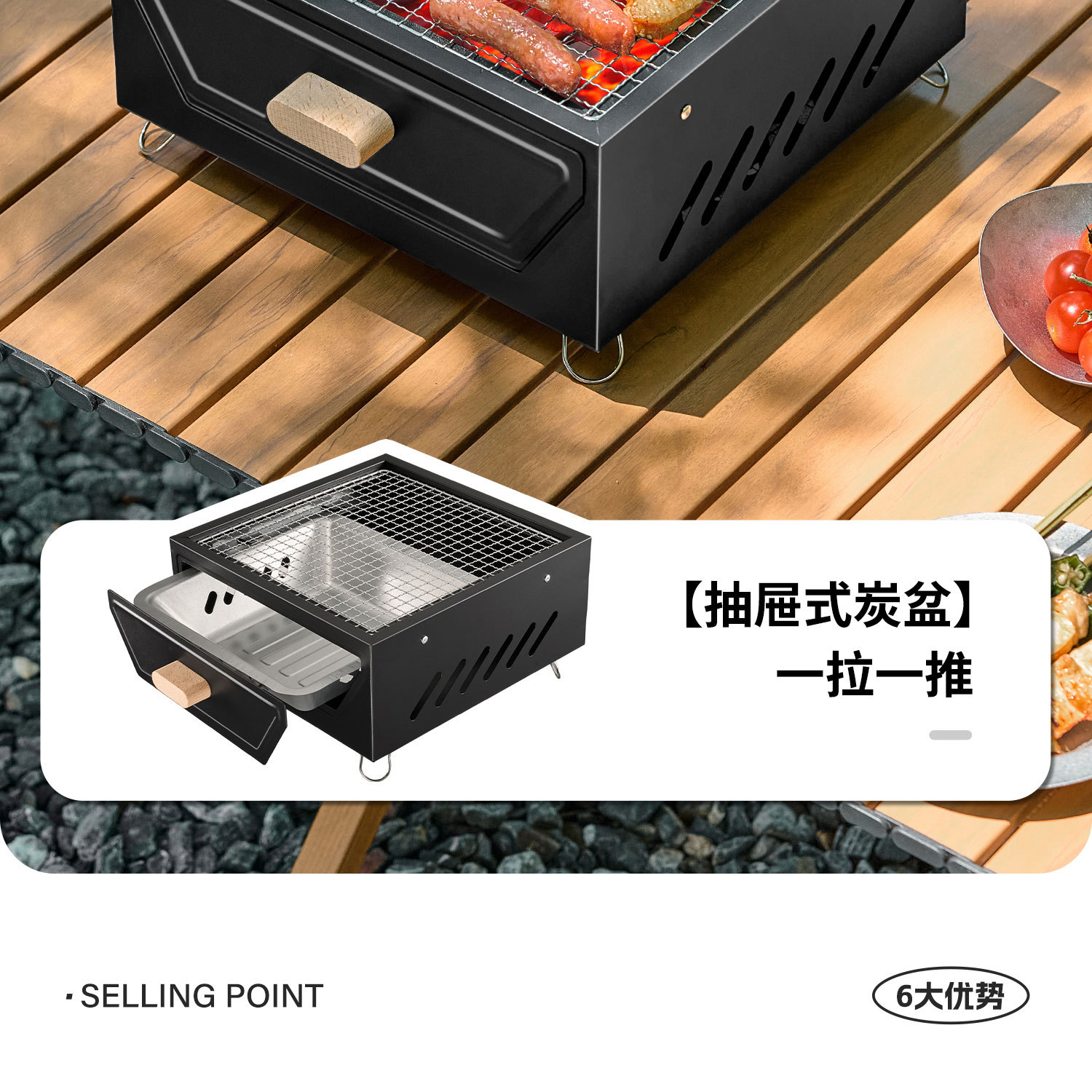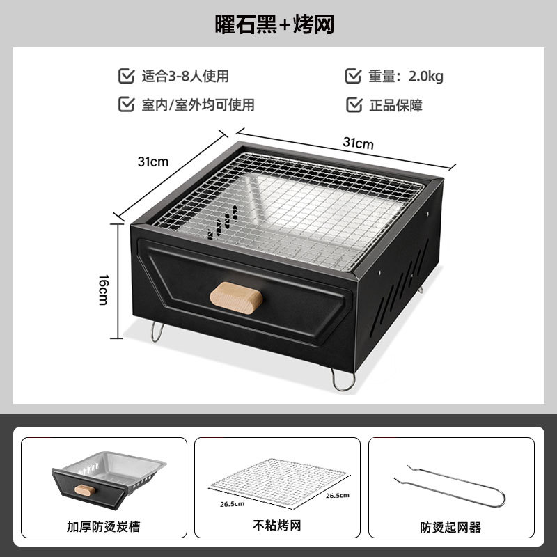 围炉煮茶炉子家用便携式木炭烧烤炉户外露营烤火炉烧烤架方形围炉