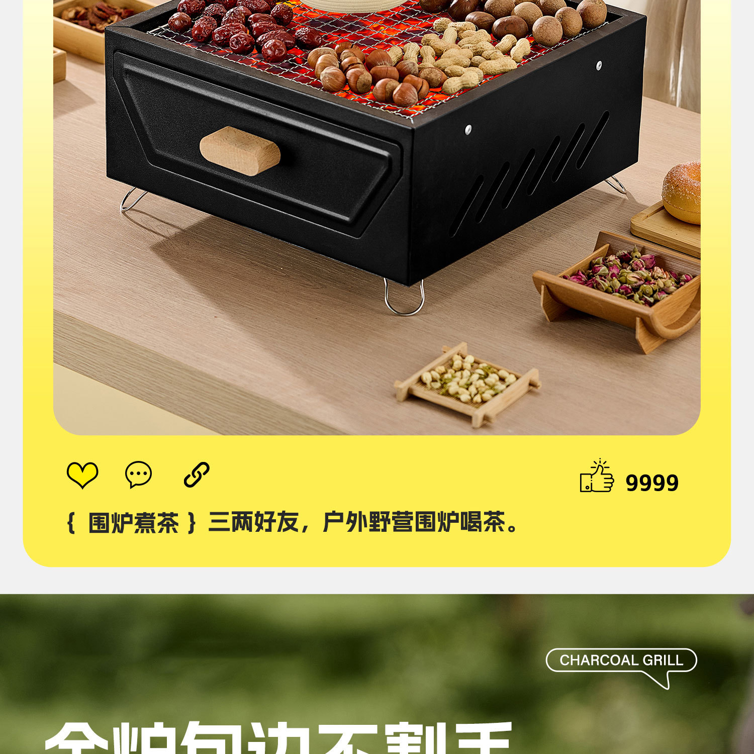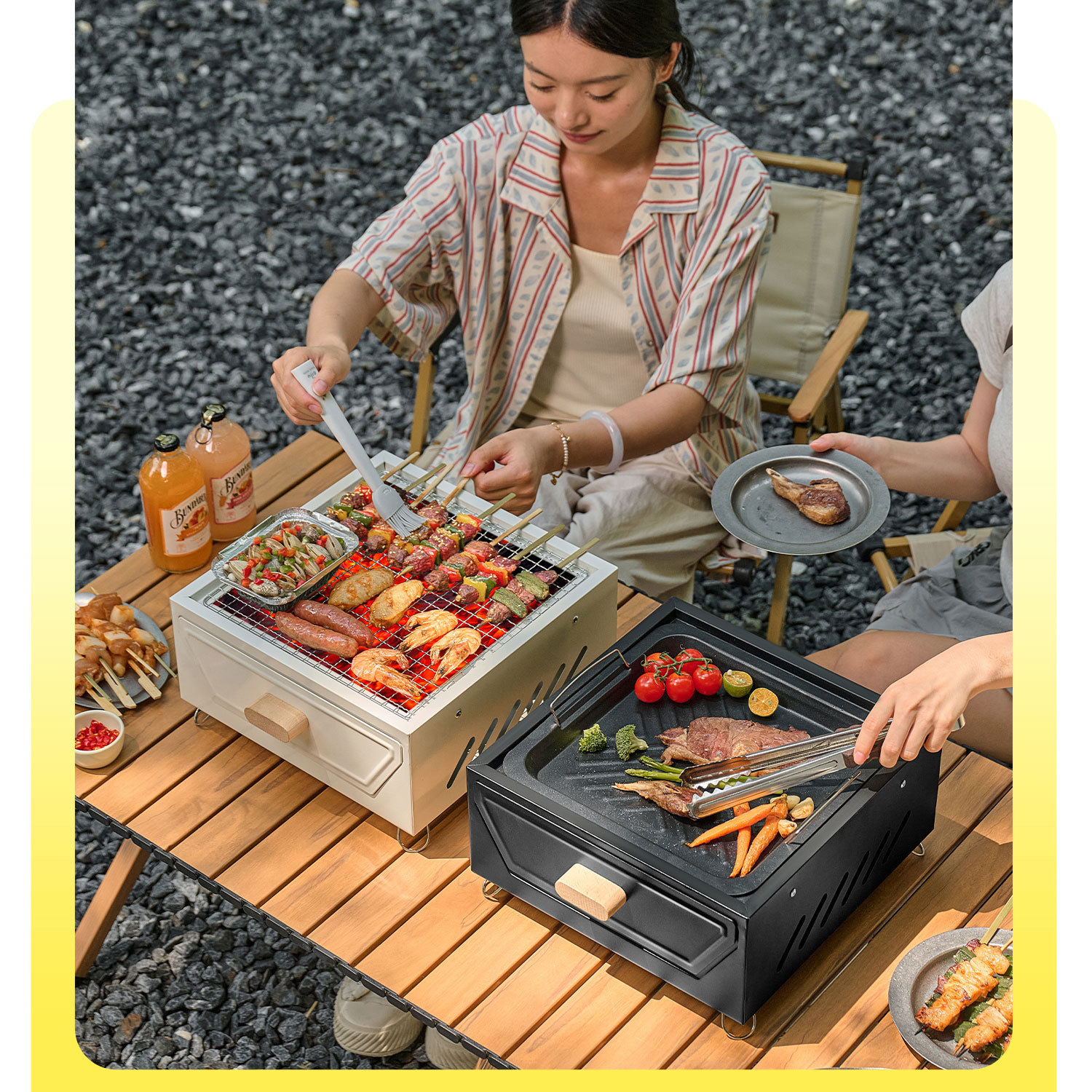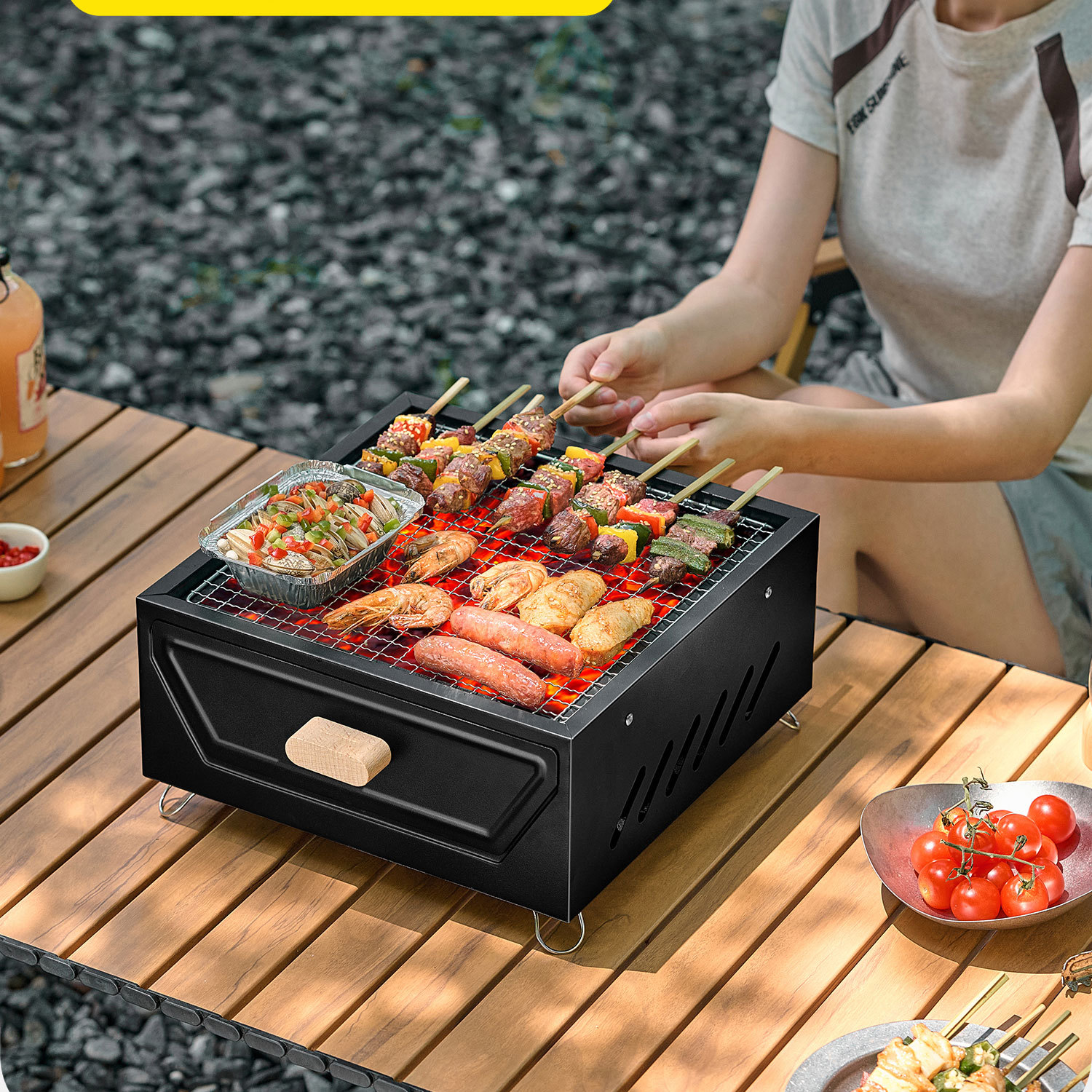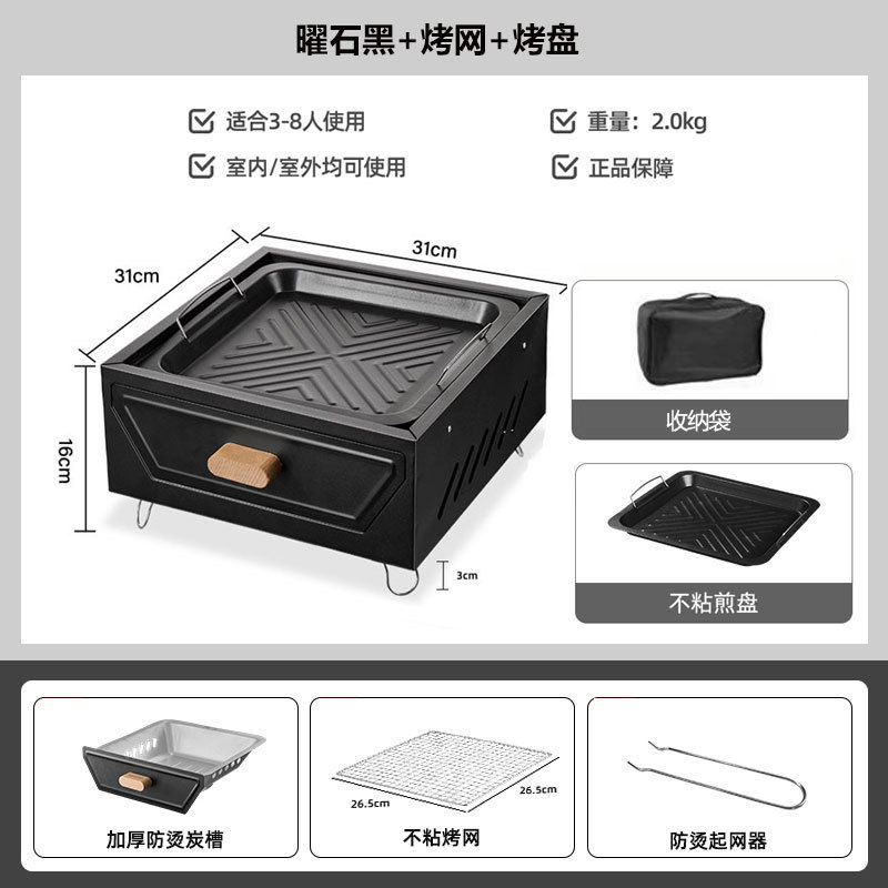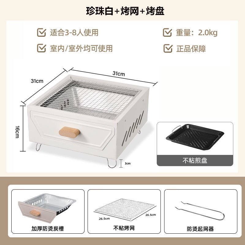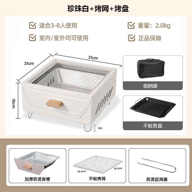 围炉煮茶炉子家用便携式木炭烧烤炉户外露营烤火炉烧烤架方形围炉
