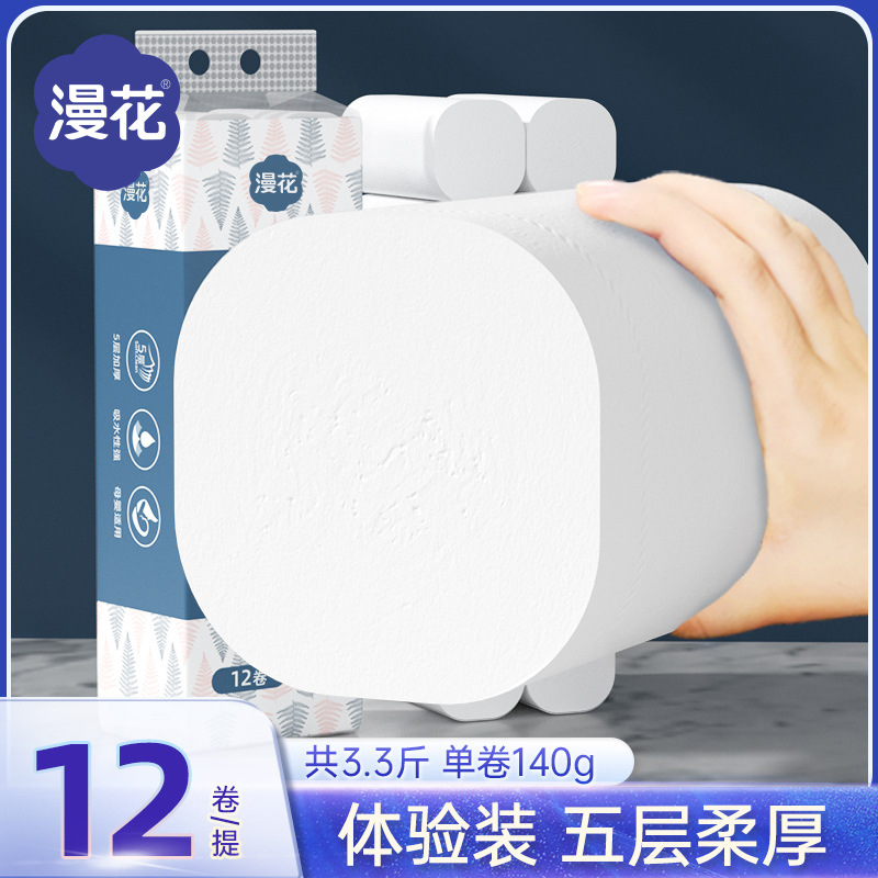 漫花纸巾卷纸大量批12大卷整提实惠装5层加厚卷筒纸厕所卫生手纸