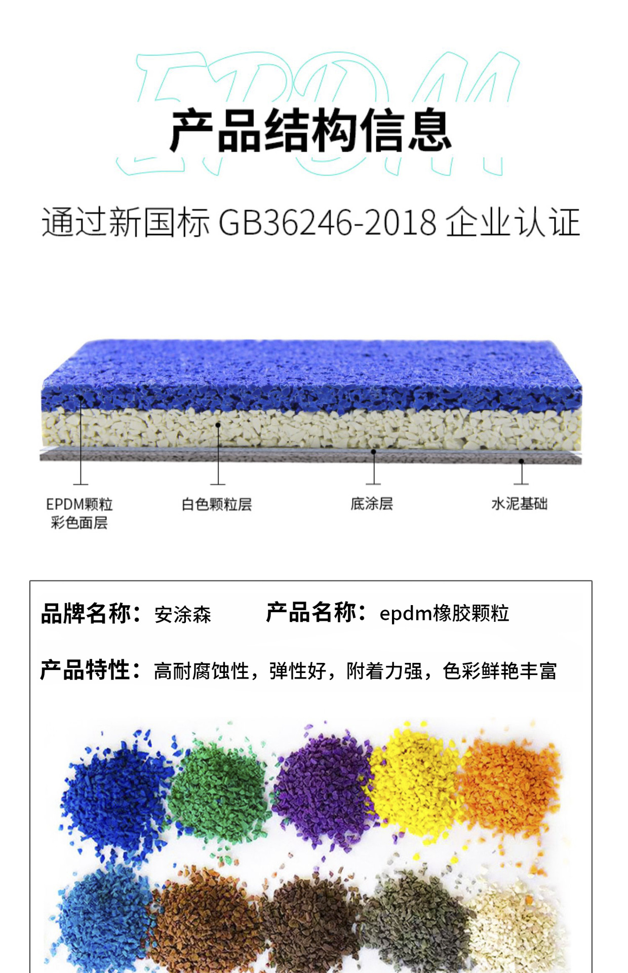 安涂森epdm颗粒幼儿园橡胶地垫学校塑胶地胶弹性彩色橡胶跑道施工