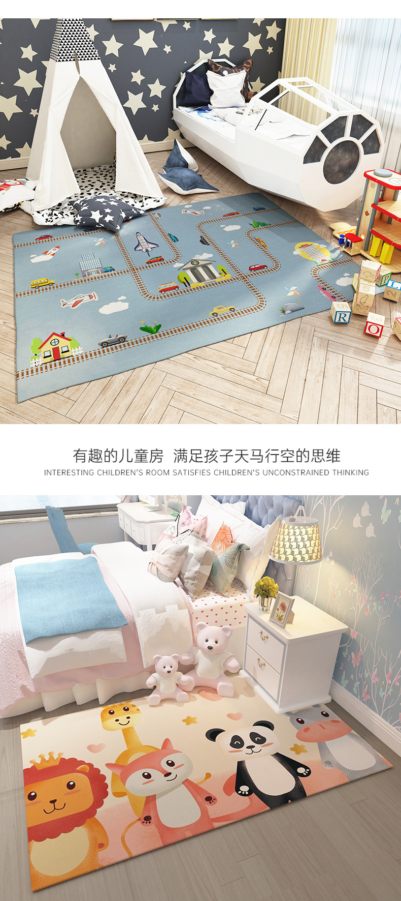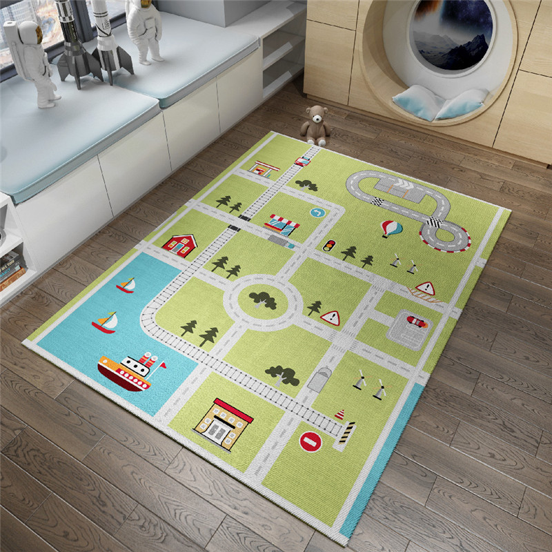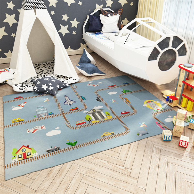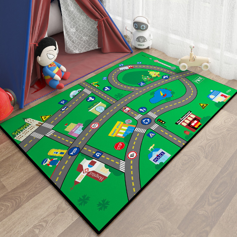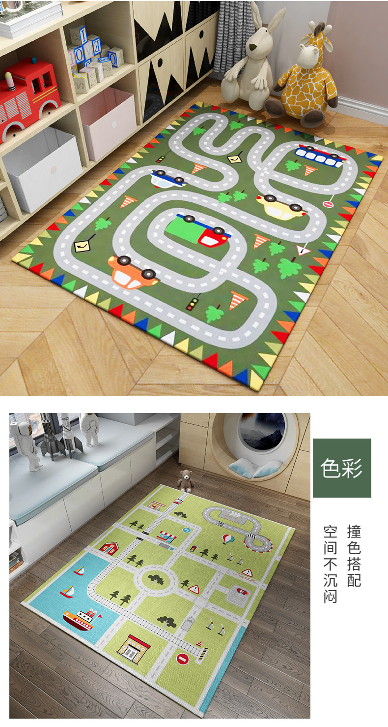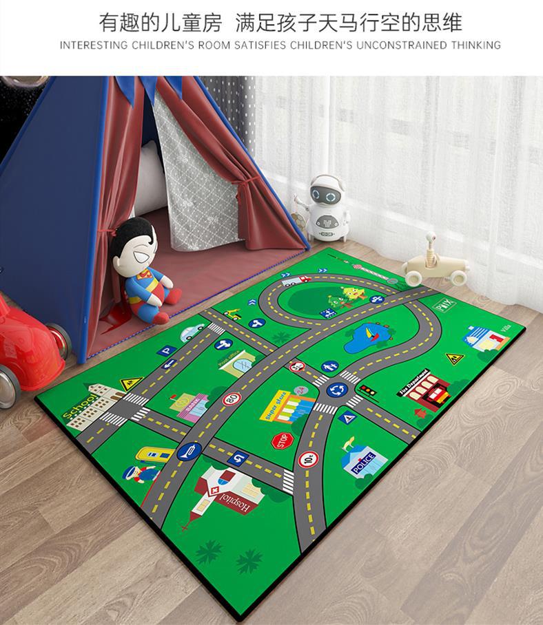 儿童卡通地毯男孩女孩卧室房间床边幼儿园早教儿童房交通车道野外