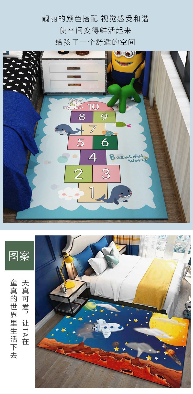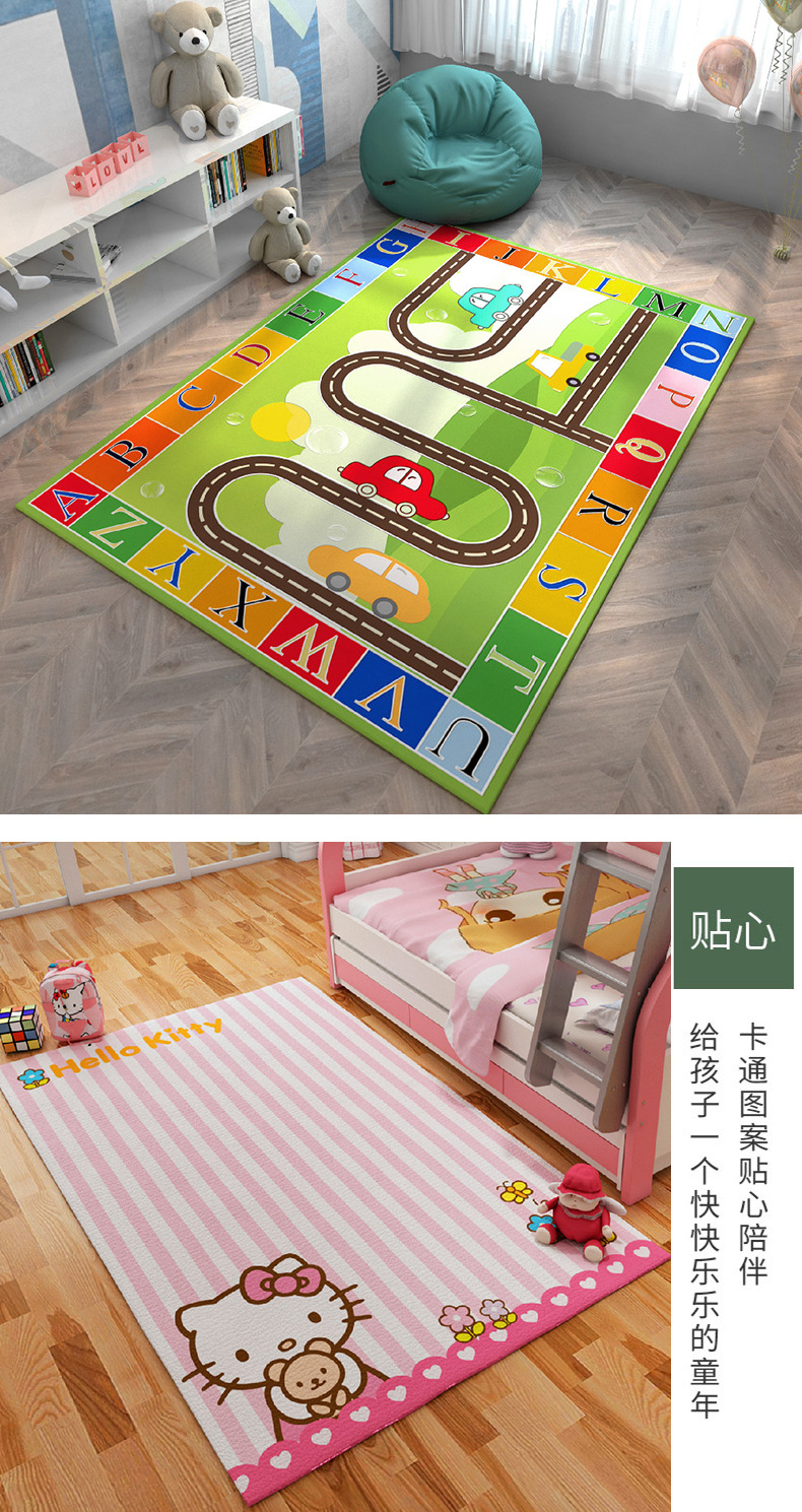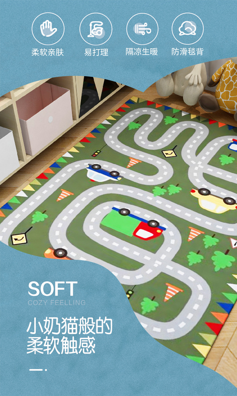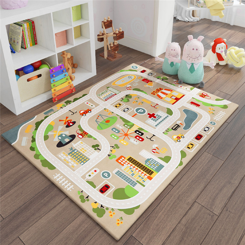 儿童卡通地毯男孩女孩卧室房间床边幼儿园早教儿童房交通车道野外