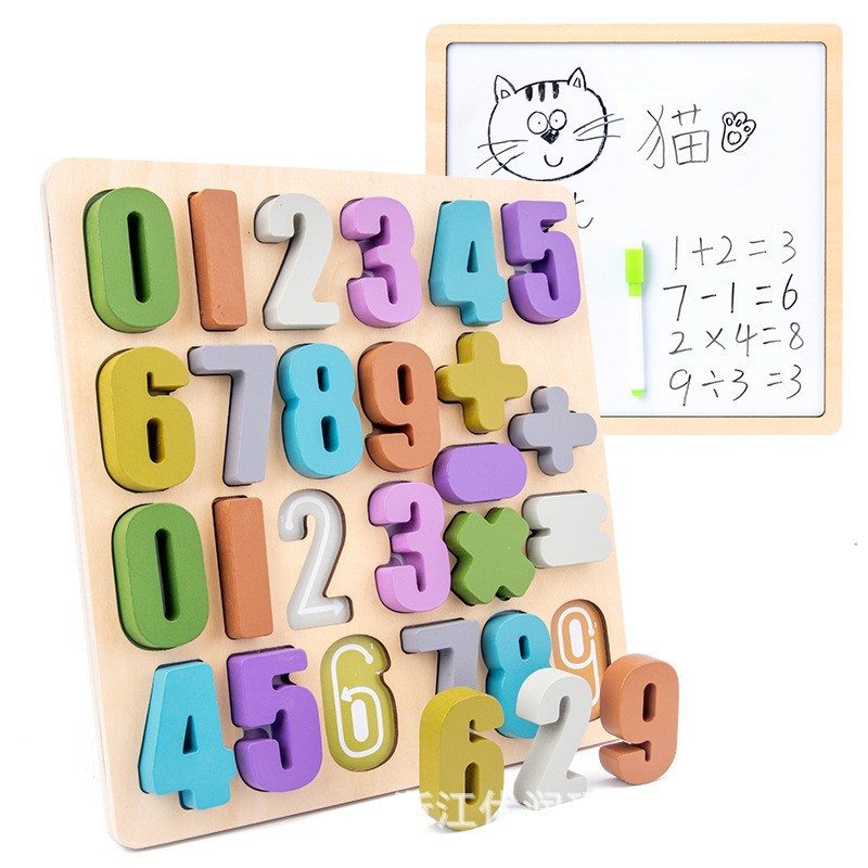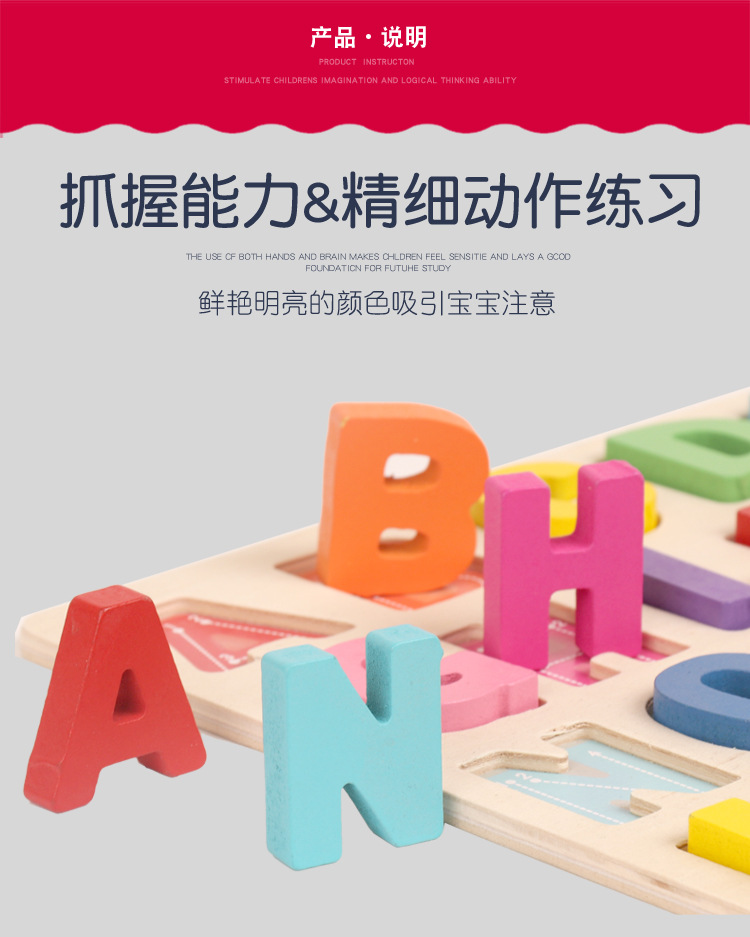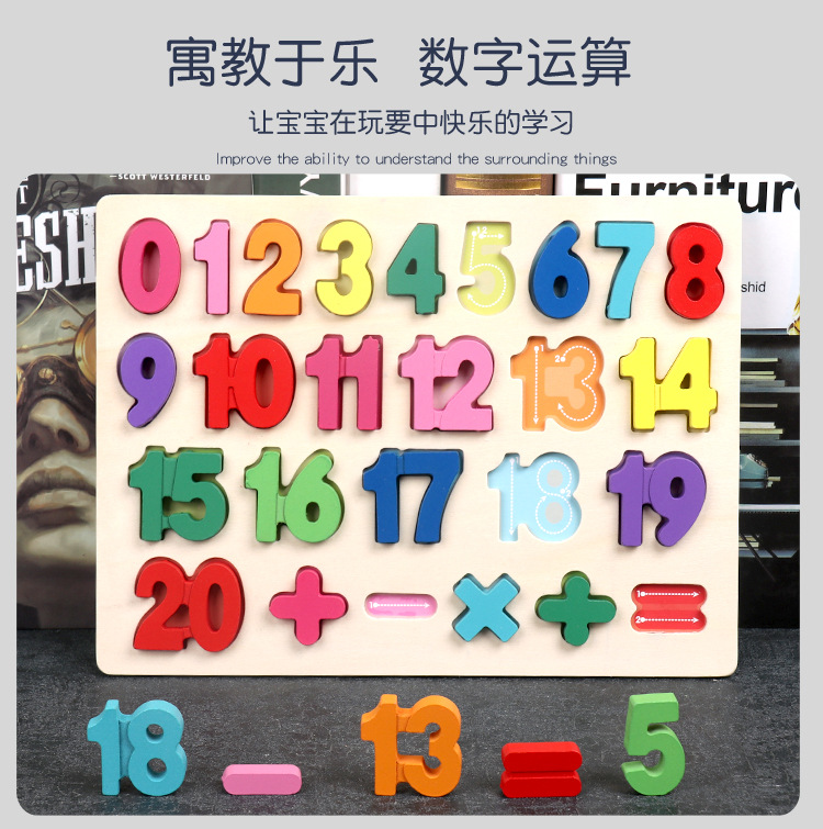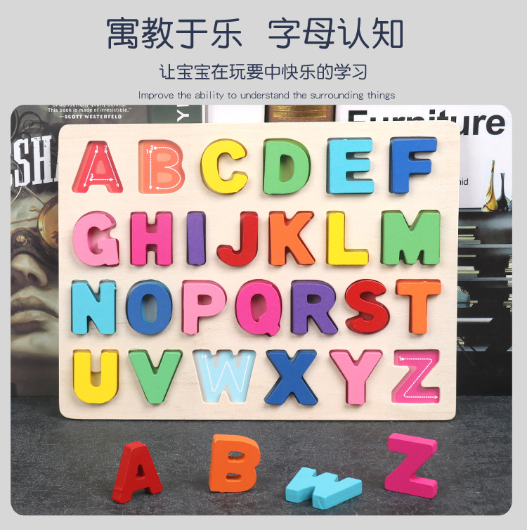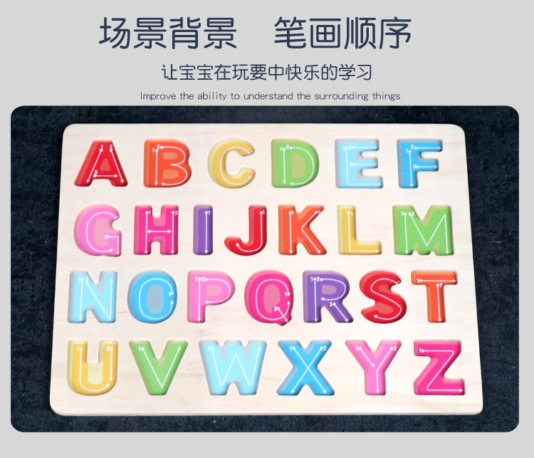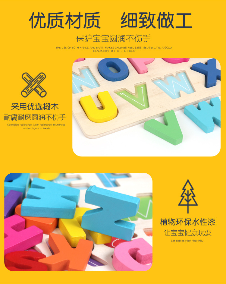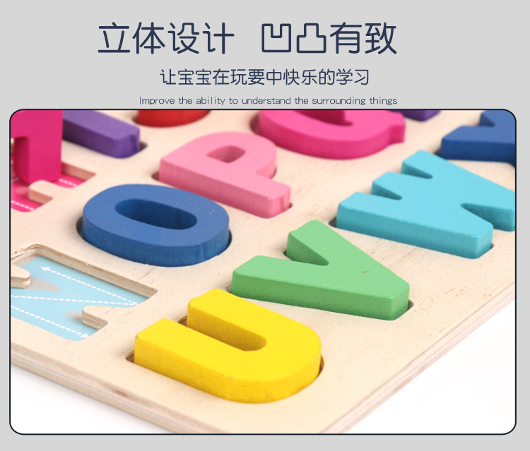 优润跨境数字字母立体拼版认知儿童益智玩具宝宝识字木质拼图批发