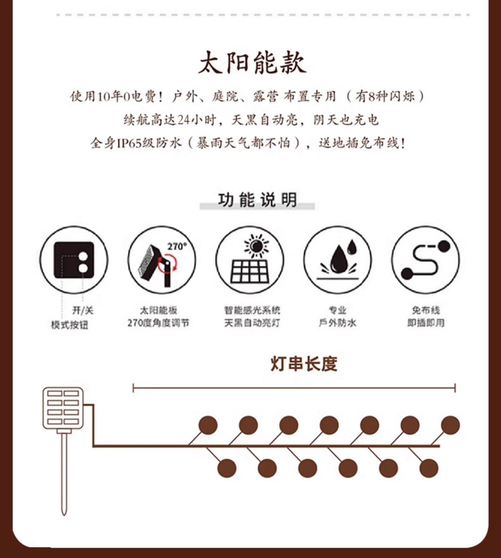 | 太阳能款 10m100灯 八公能调节 | USD $15.78 | 11192 set available |