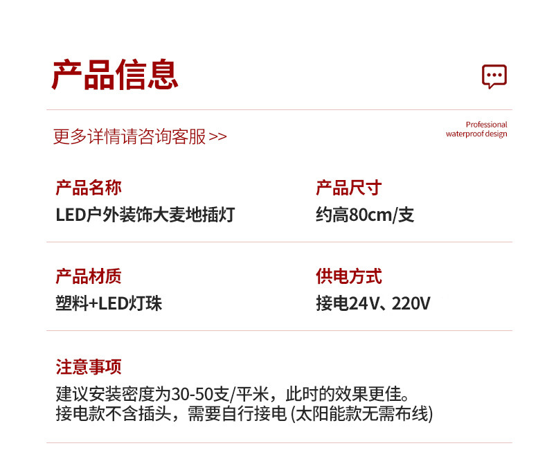 户外装饰灯防水太阳能彩灯带发光麦穗灯场景布置新年景观灯氛围灯
