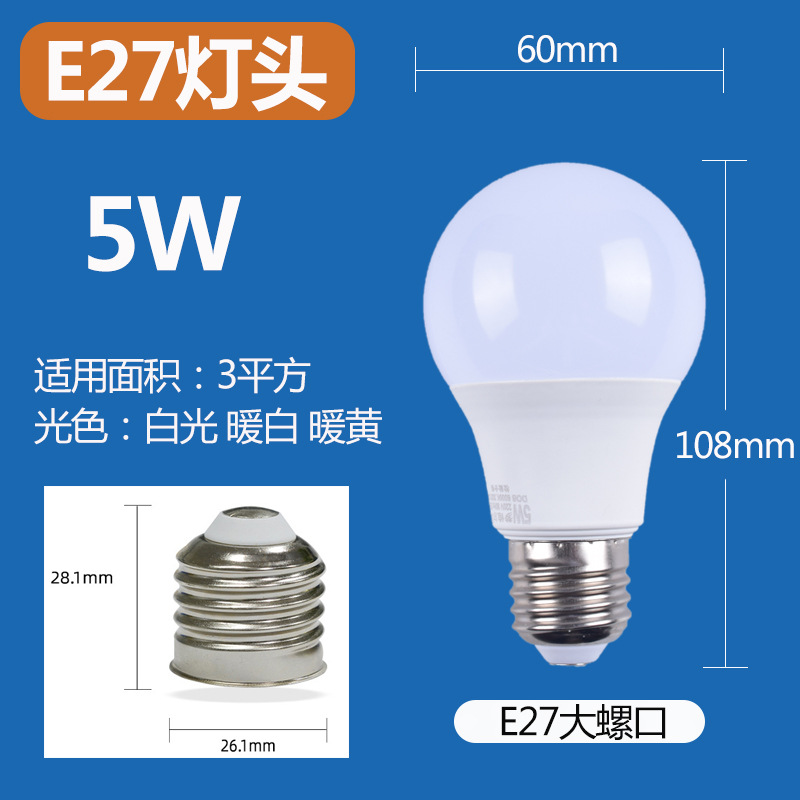 批发大功率LED灯泡家用客厅高亮E27E14螺口灯白光暖白光照明灯泡