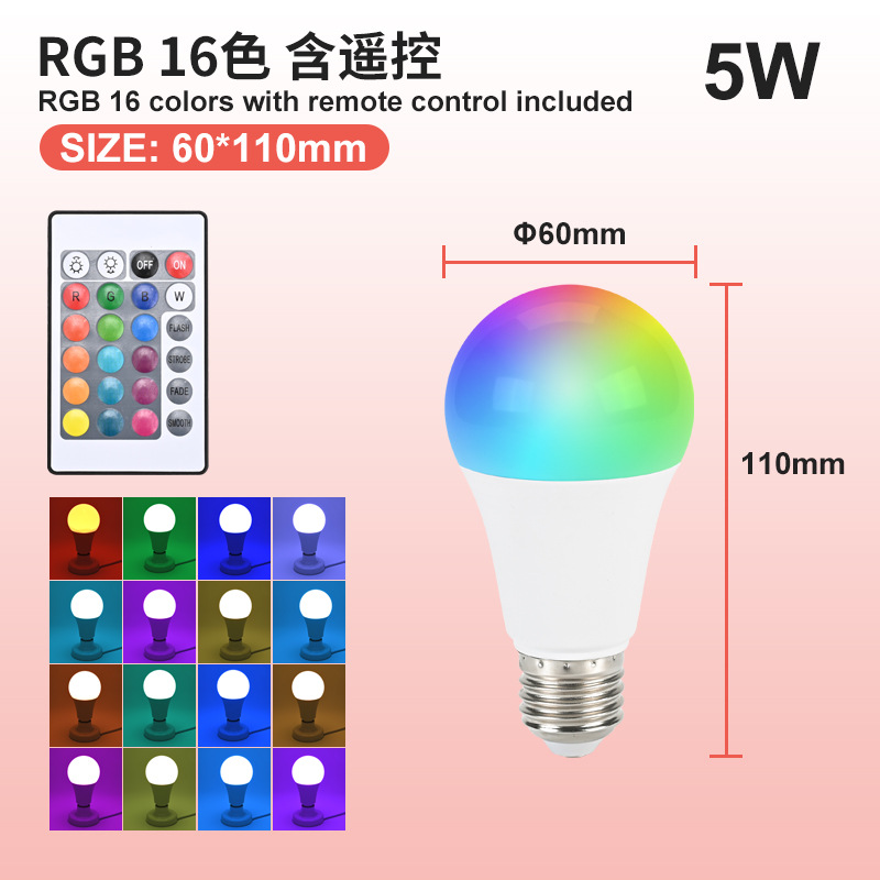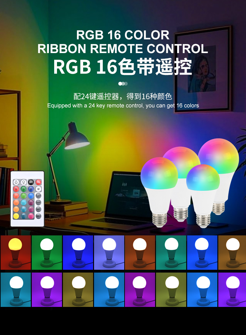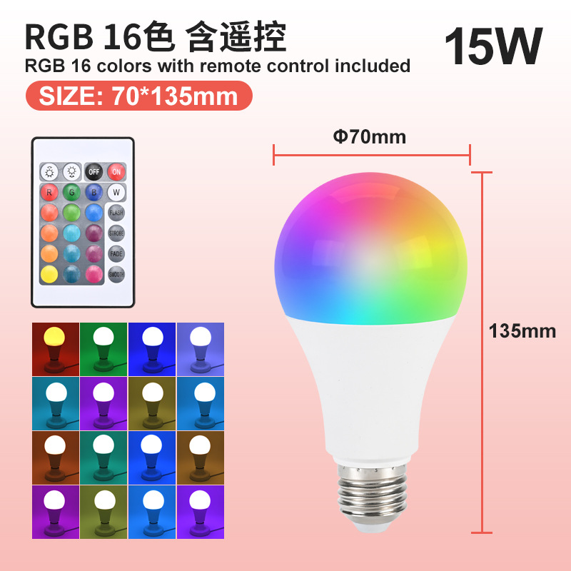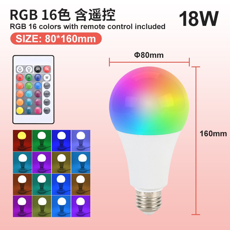 跨境led遥控智能灯七彩变色灯泡RGB16色球泡灯蓝牙WIFI直播氛围灯