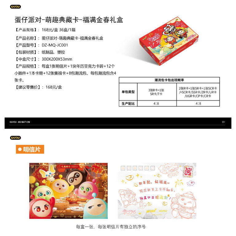 新款卡游蛋仔派对萌趣典藏卡福满金春礼盒2026新品动漫周边收藏卡