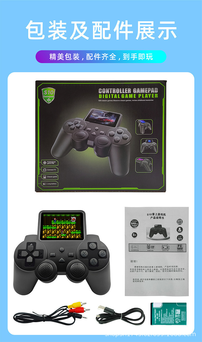 跨境S10摇杆游戏机复古迷你街机520款游戏单双人对战手柄游戏机
