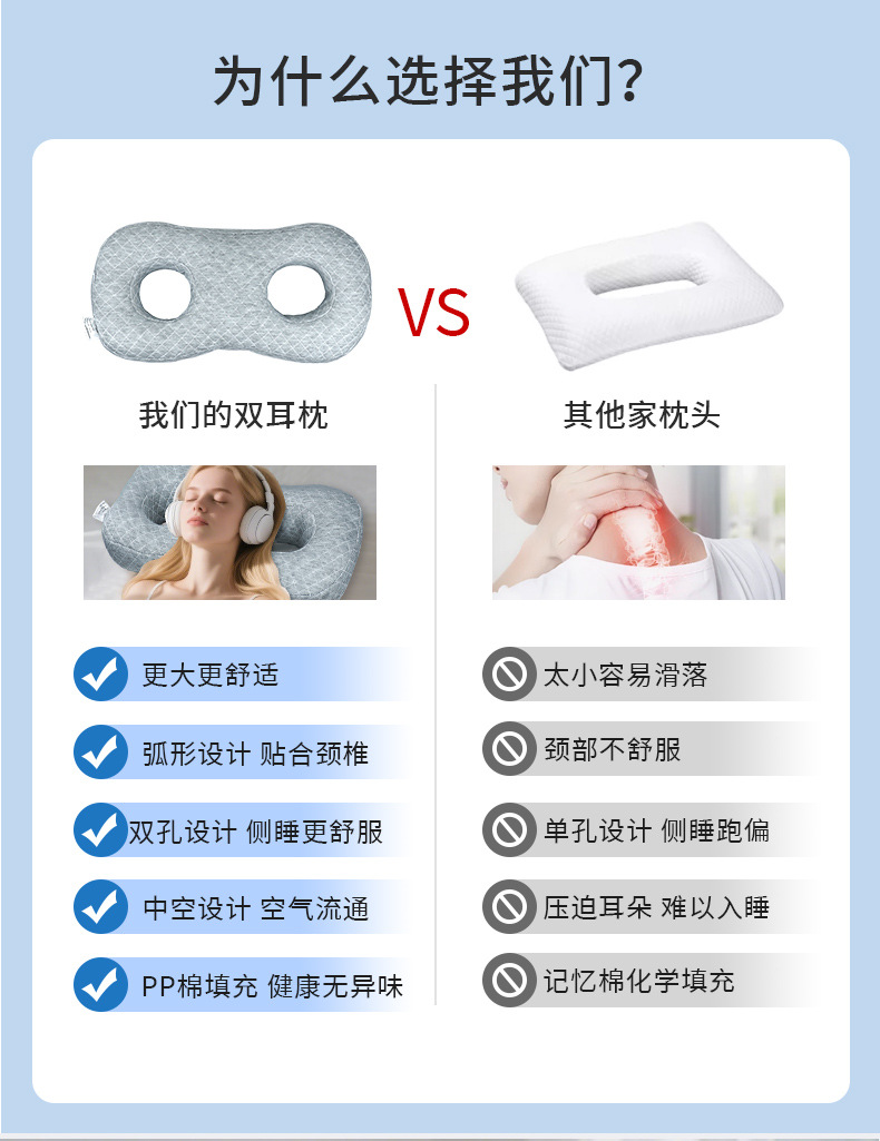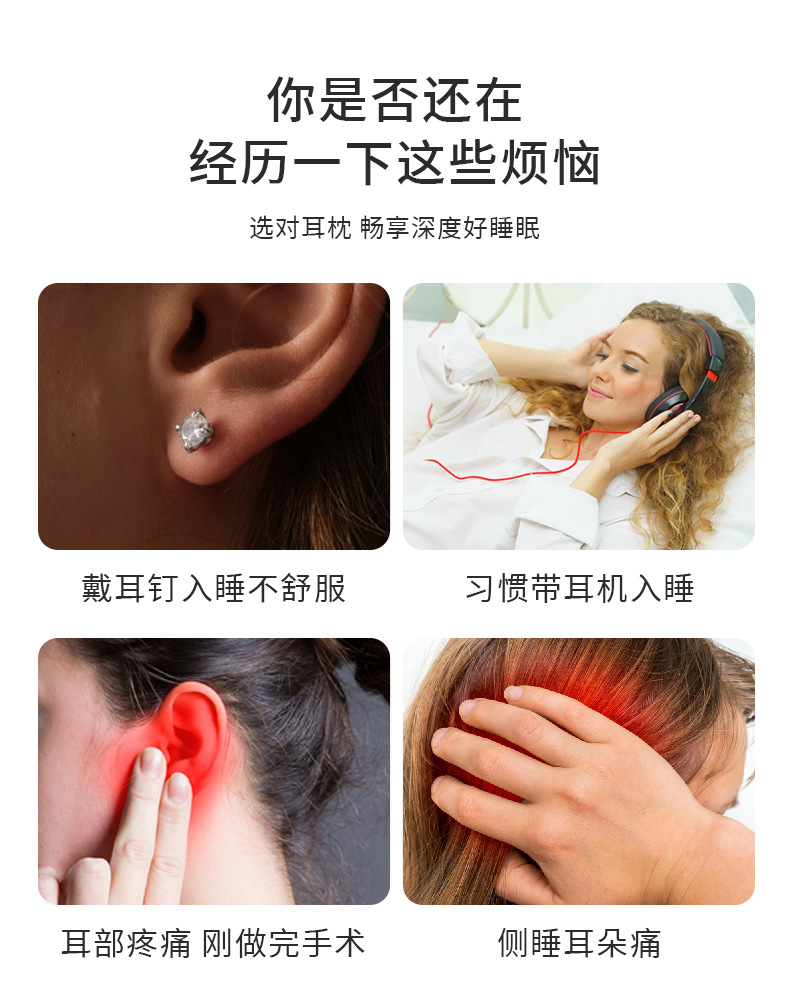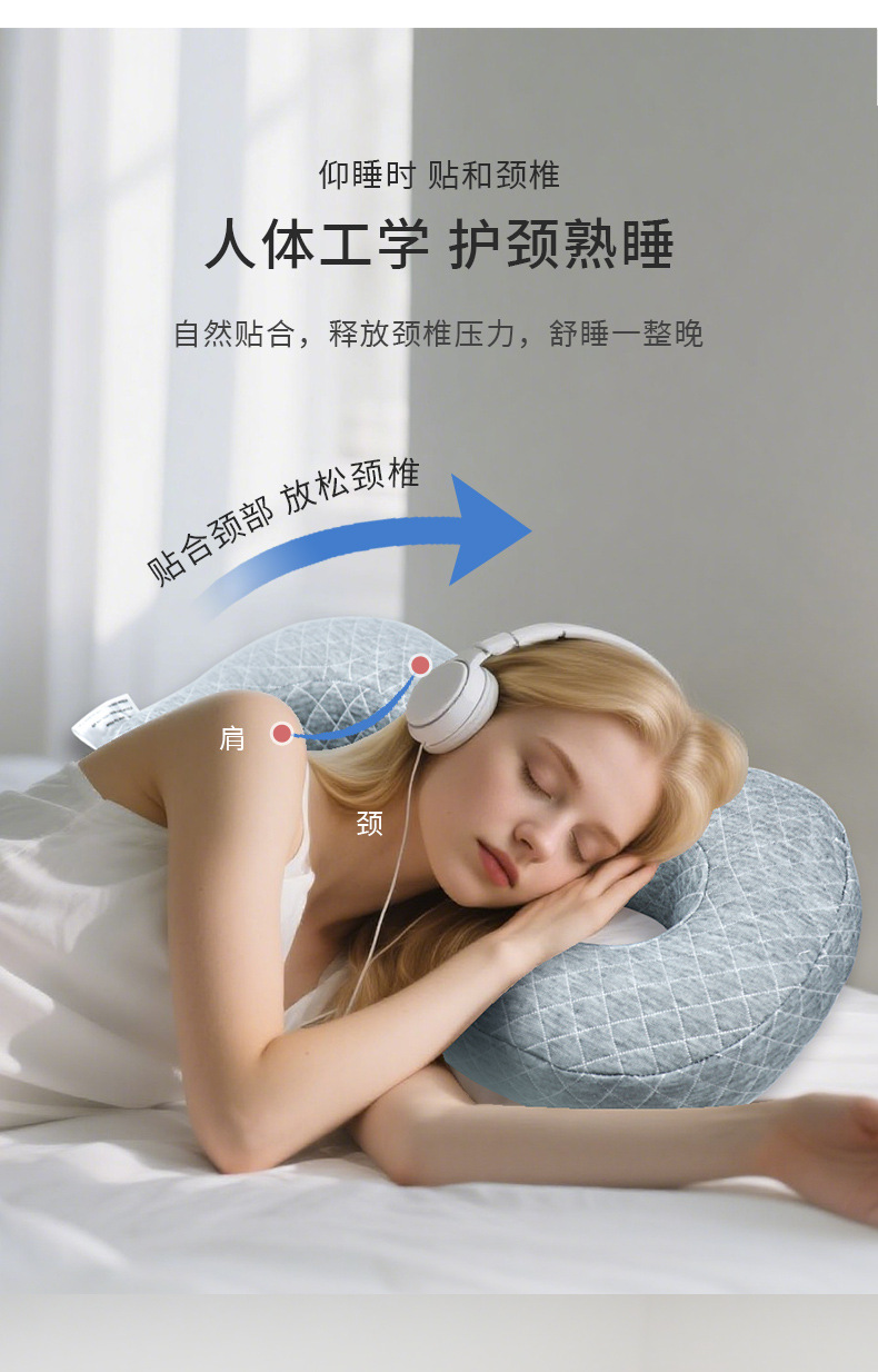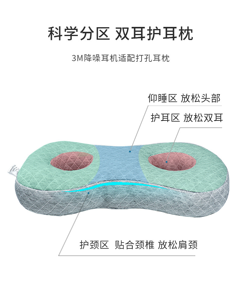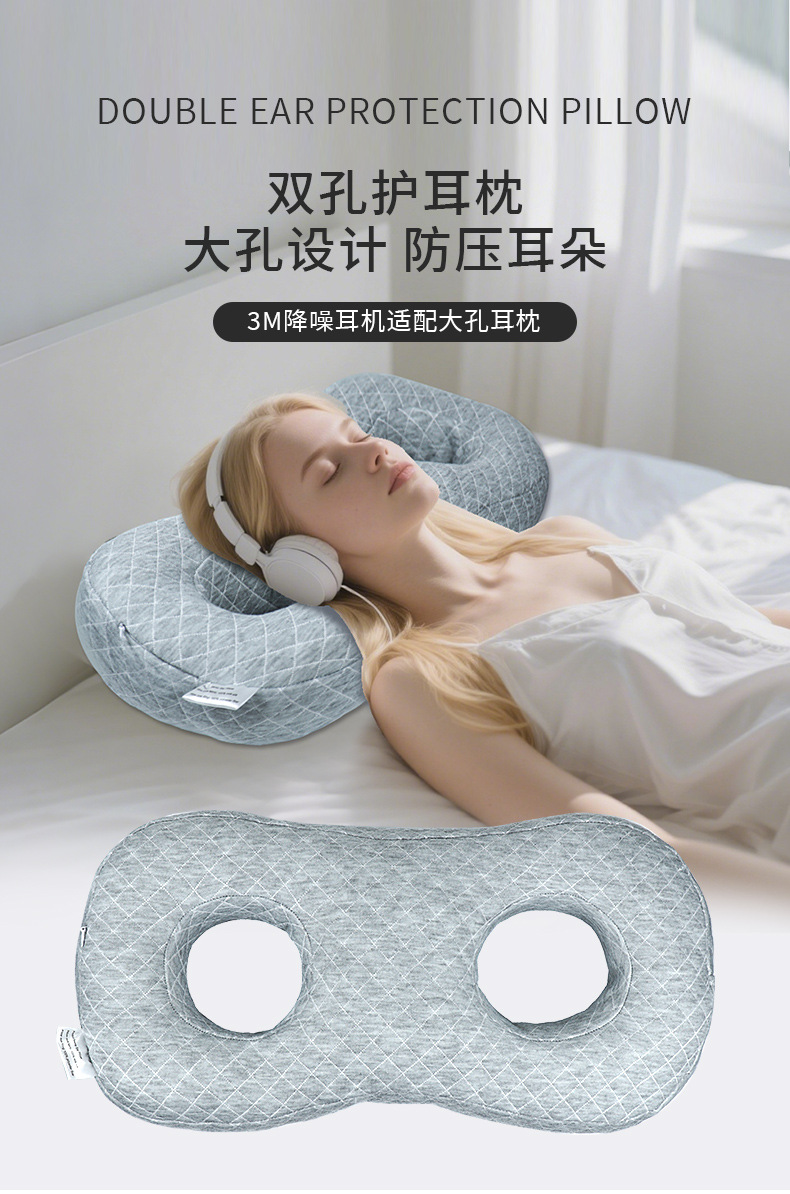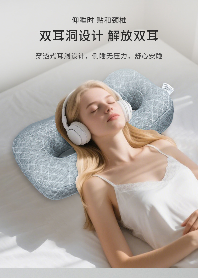 跨境 耳洞护耳防压耳枕头不压耳朵侧睡空心护颈椎8字型枕芯美容院