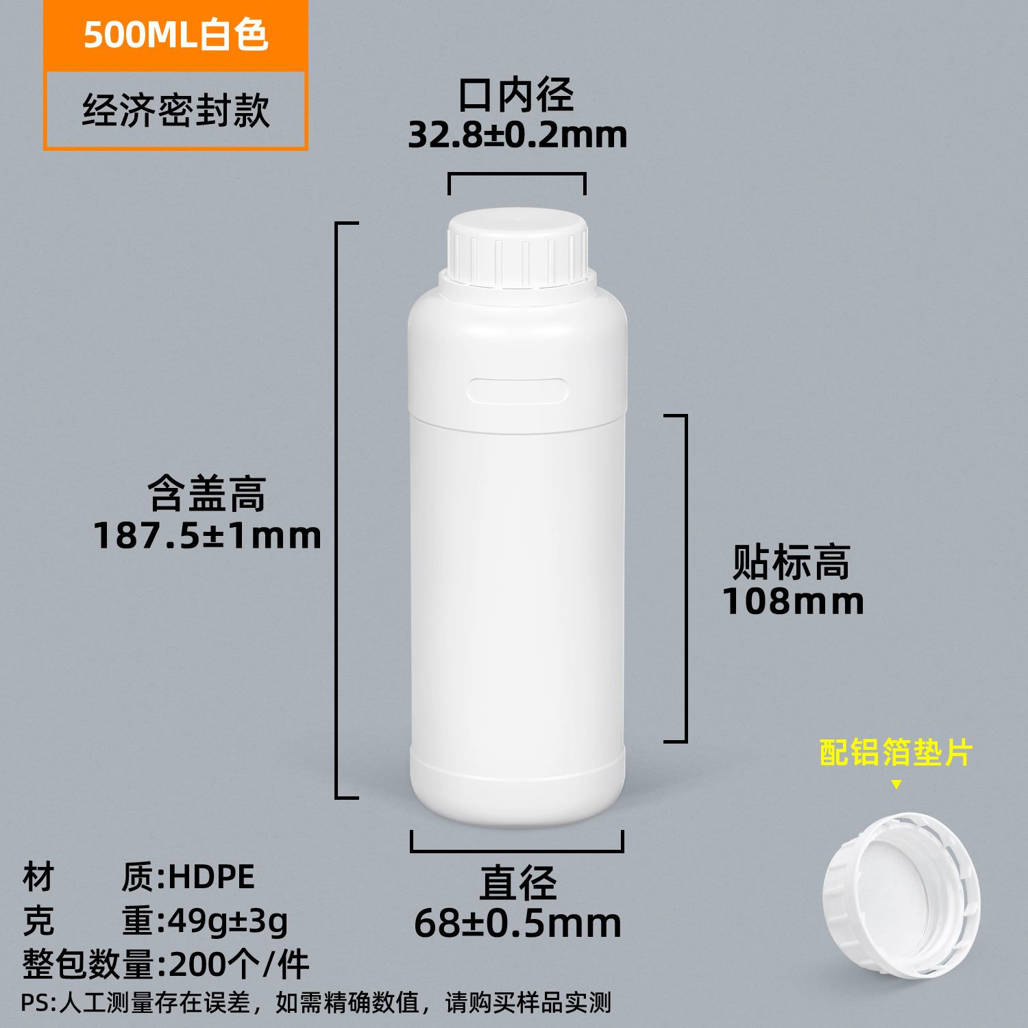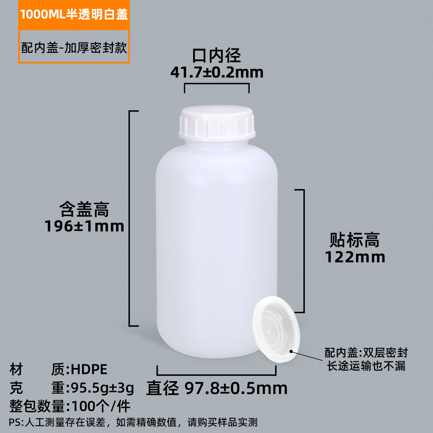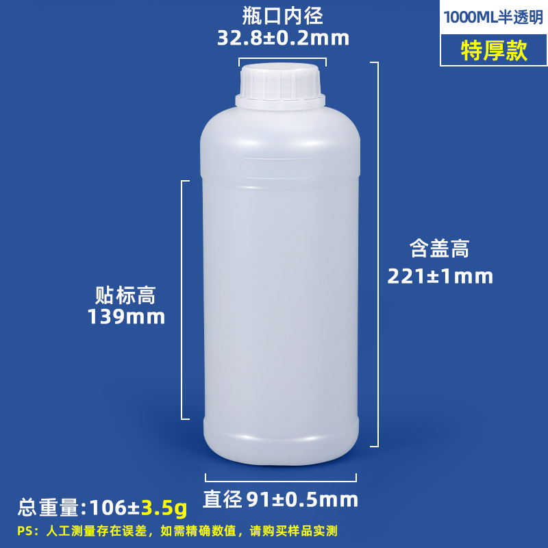 圆形食品级化工瓶500ml1L瓶子耐腐蚀密封农药瓶消毒液树脂塑料瓶