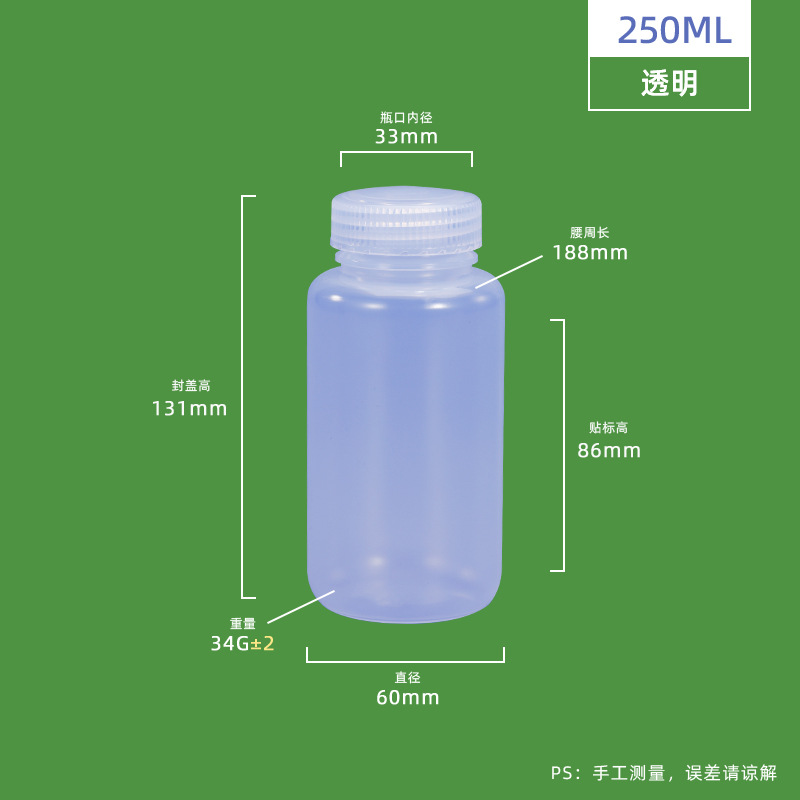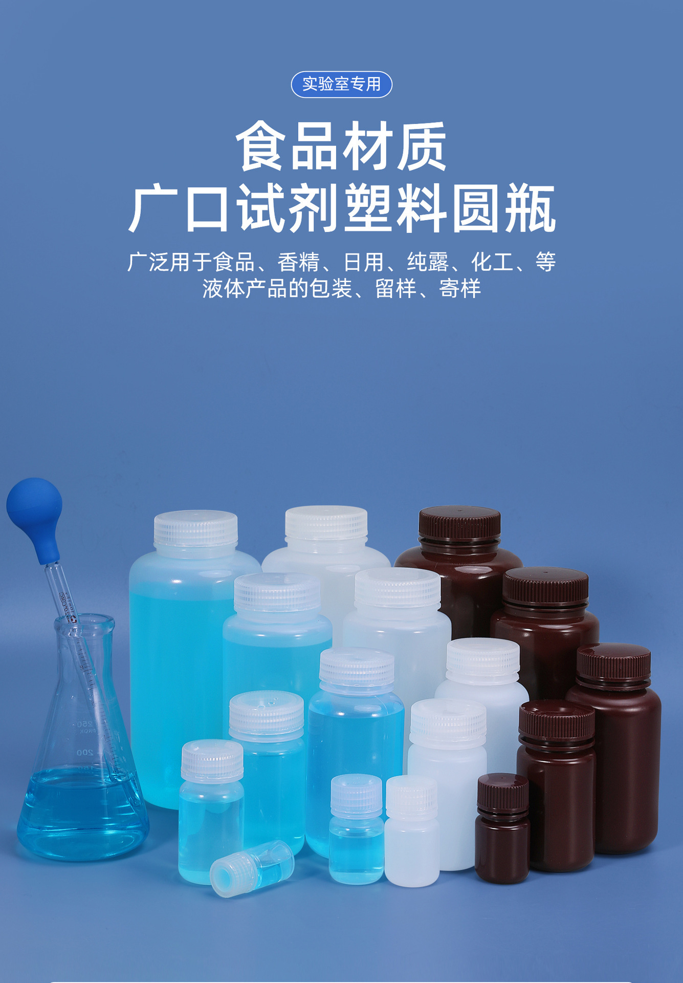 食品广口塑料瓶耐高温透明实验室大口250ML1L刻度辐照杀菌试剂瓶
