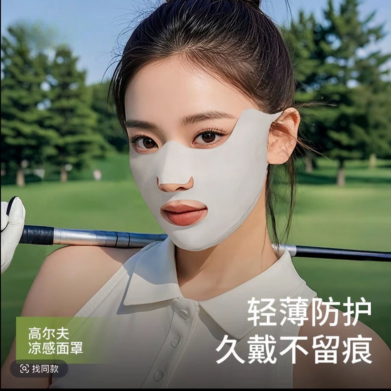 户外运动防晒口罩跑步高尔夫专用冰丝挂耳面罩露嘴鼻透气防紫外线