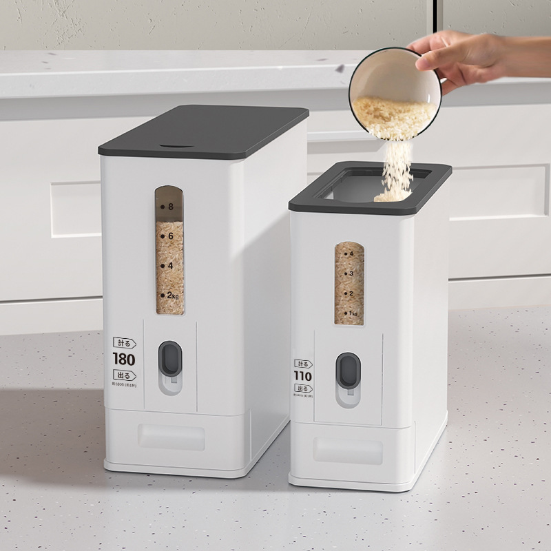 日式按压计量米桶2025新款家用厨房防虫防潮密封米箱大米缸储米桶
