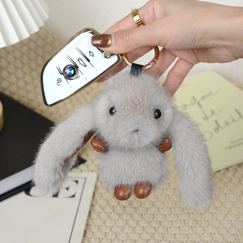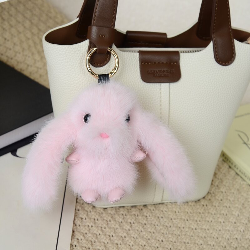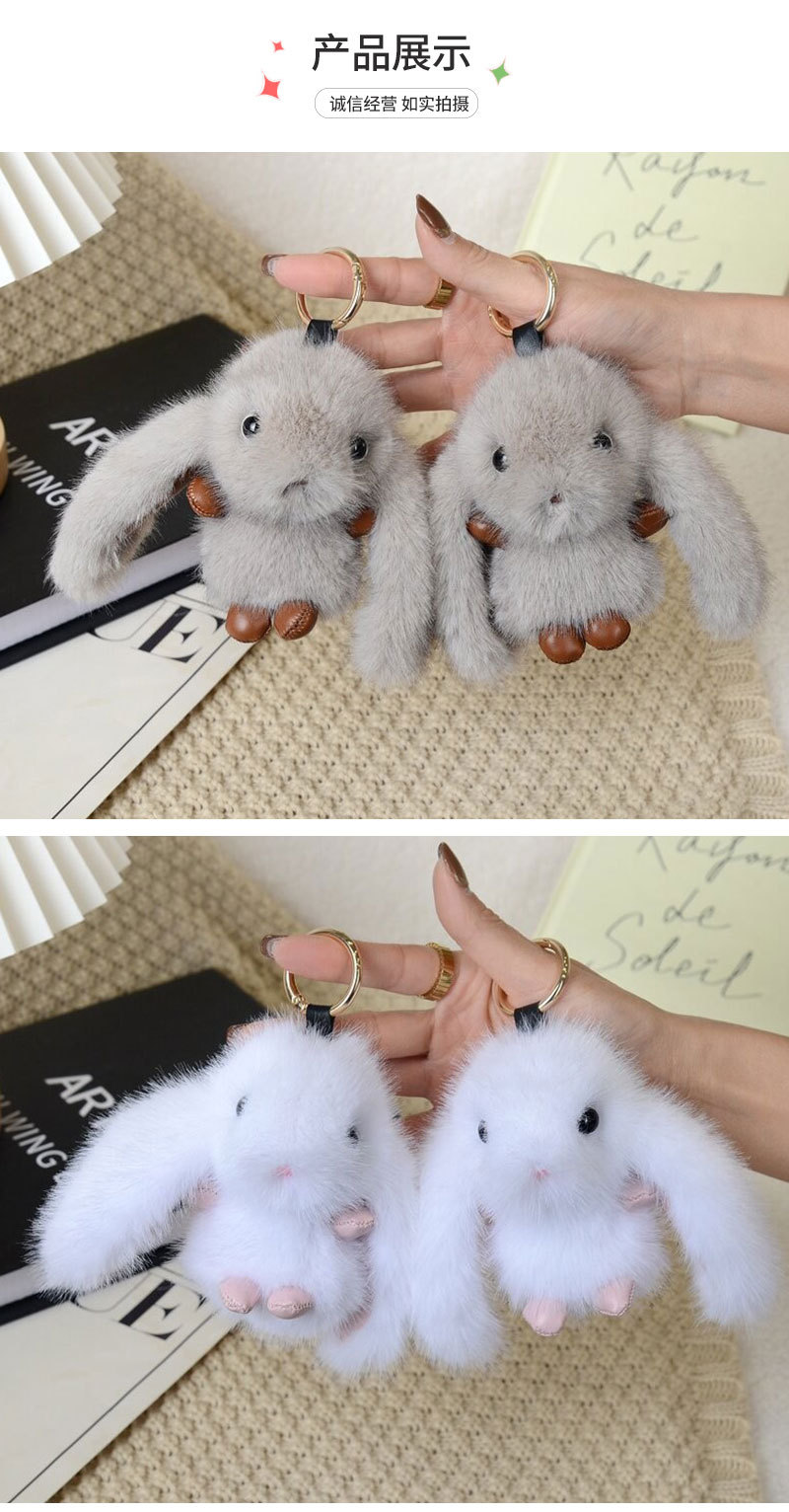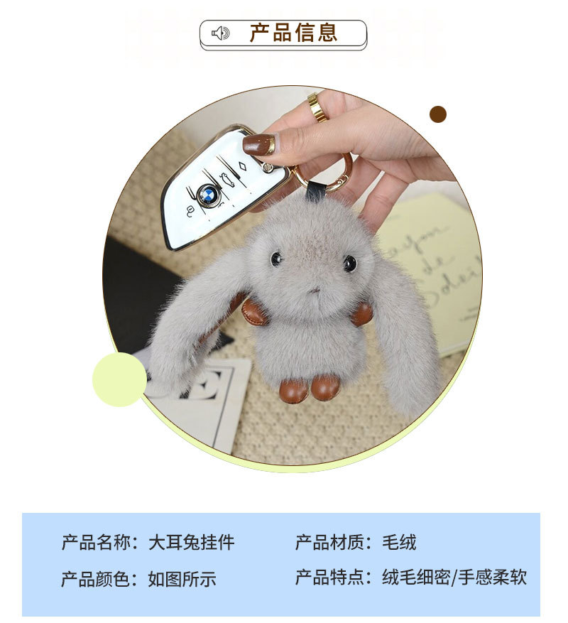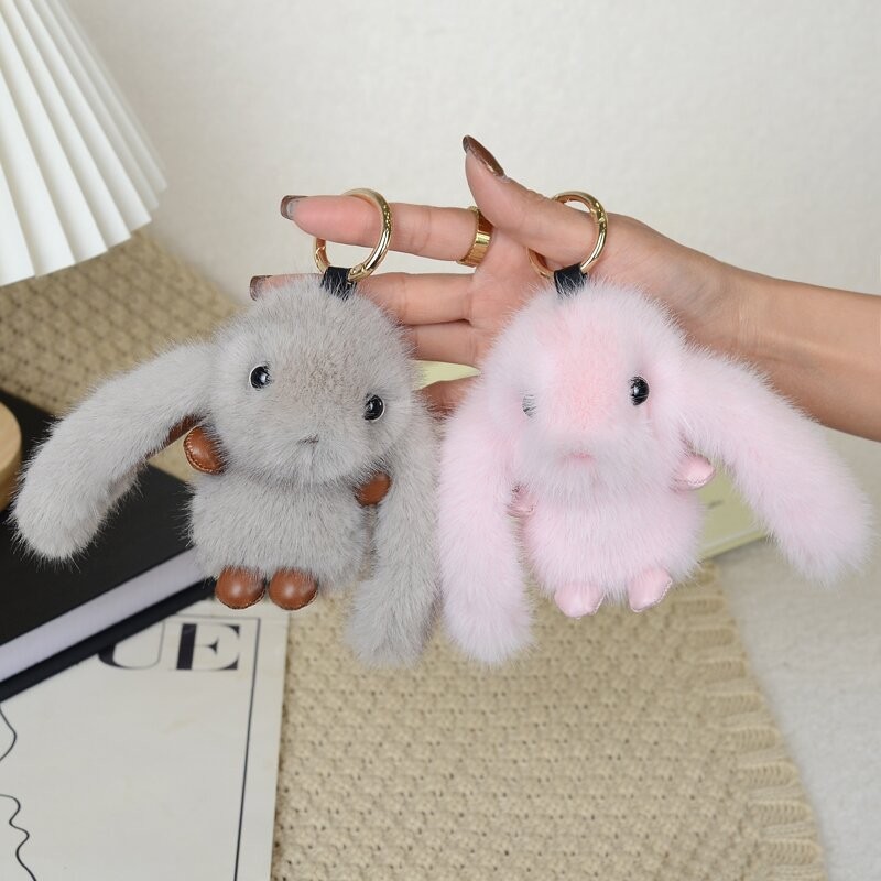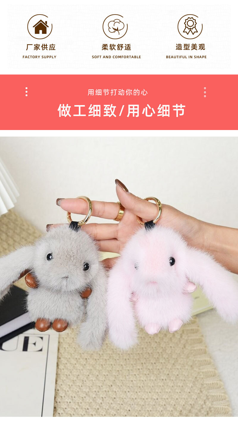 定制大耳朵兔子挂件仿水貂毛绒手工双灰色娃娃机公仔兔子厂家批发